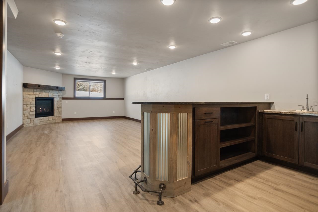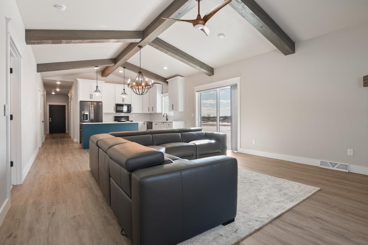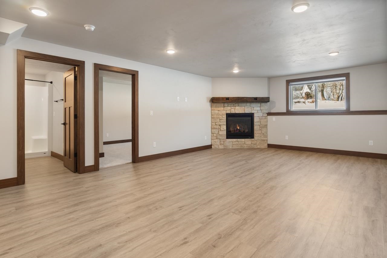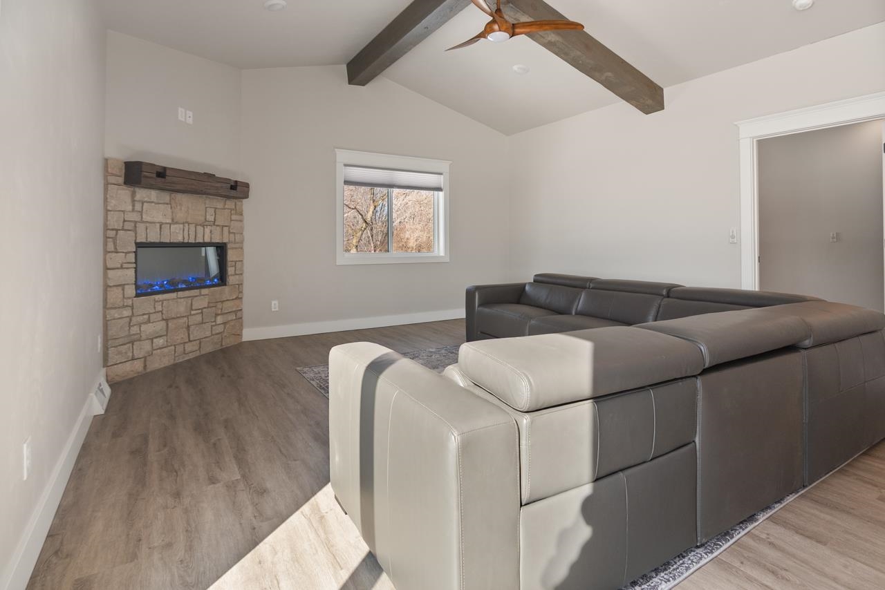 Enjoy low-maintenance condo living with this quality built new construction with 4 bedrooms and 3 full baths! Quality amenities throughout. Conveniently located just 20 minutes from Green Bay and only 10 minutes from Suamico’s popular restaurants and shopping. this beautiful condo offers easy highway access and zero-entry into both the home and heated garage. LVP, quality cabinetry, and two fireplaces with stone surround with wood beamed vaulted ceilings in the living room and wood beamed tray ceiling in primary bedroom. The primary suite includes a walk-in closet, dual sinks, and a tiled shower First-floor laundry. Finished lower level offers extra living space and a built-in bar, gas fireplace, 2 bedrooms with egress windows and a full bathroom