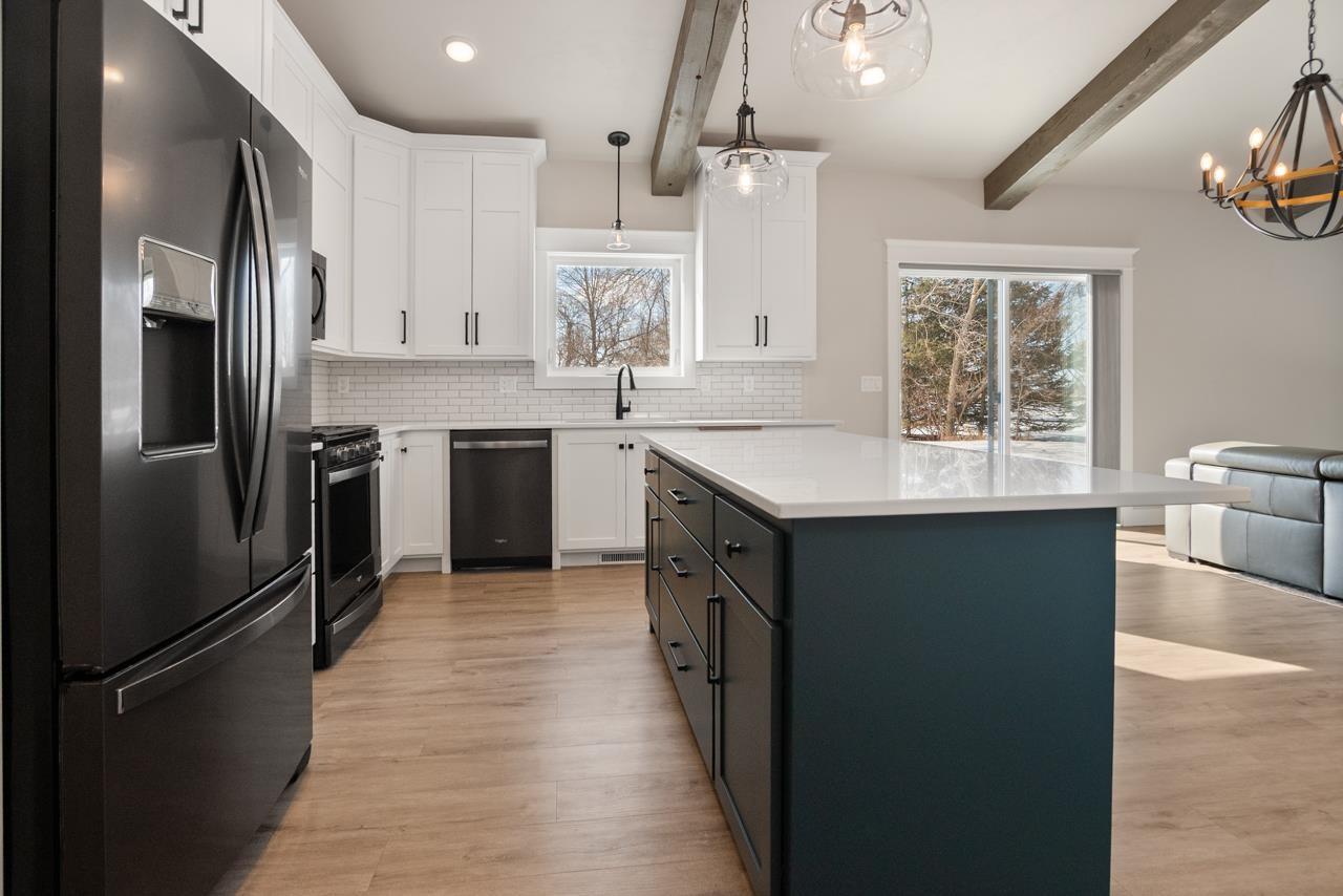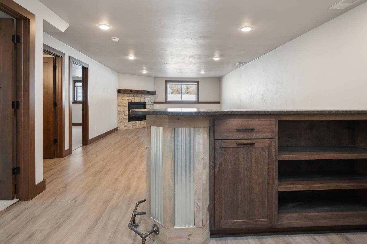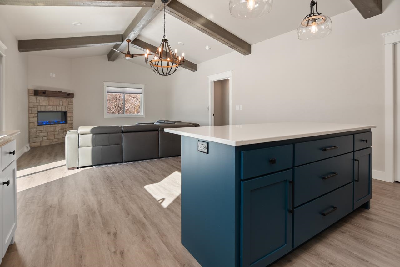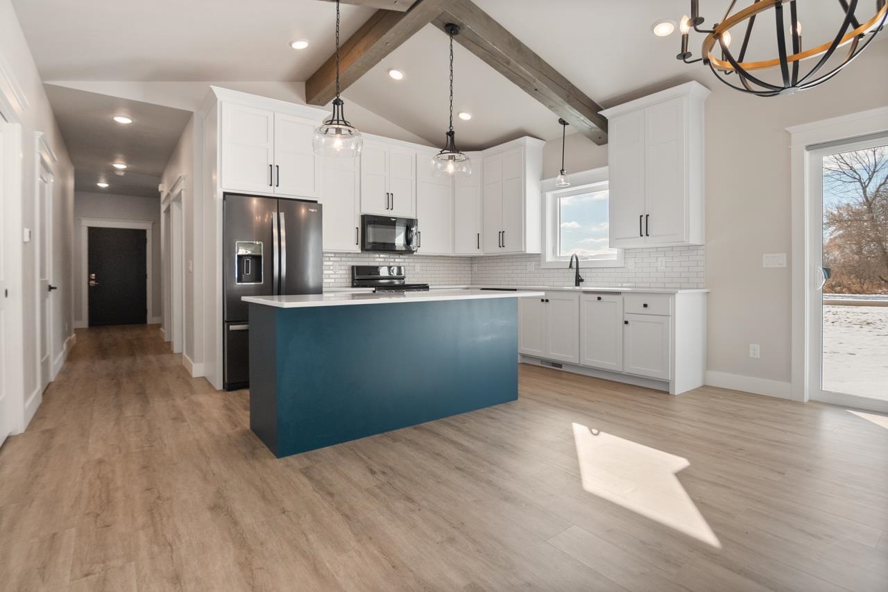 This is condo MLS 50321049. Quality built 4 bedroom, 3 full bath new construction condo. Spacious kitchen features bright white floor-to-ceiling custom cabinetry, large island with quartz countertops, and stainless steel appliances. Living room has vaulted wood beamed ceiling, fireplace with stone surround wood beam mantle and access to 14x16 patio. Primary suite with tray ceiling and wood beams, private bath with walk-in shower. Finished lower-level with a rec room with a built-in bar, gas FP and 2 bedrooms with egress windows and a full bath. First-floor laundry, 16x14 patio, and heated garage.