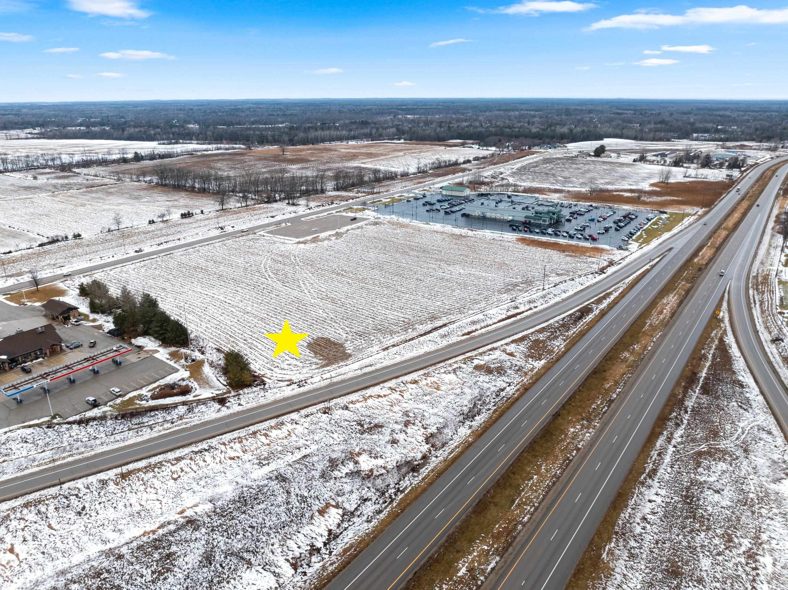 Prime opportunity for a visionary developer along one of Northeast Wisconsin’s most traveled gateway corridors. Currently zoned G4 Agricultural with potential for future rezoning to higher-intensity commercial uses (subject to approvals). Strategic location between Northeast Wisconsin, the Northwoods, and Michigan’s Upper Peninsula offers excellent visibility and consistent traffic exposure. Area growth and strong daytime traffic support a variety of retail or service uses serving both local residents and regional travelers. Buyer to verify zoning and traffic counts with local authorities and WISDOT. Crop lease in effect. Seller willing to subdivide. TIF potential. Part of parcel is across the street.