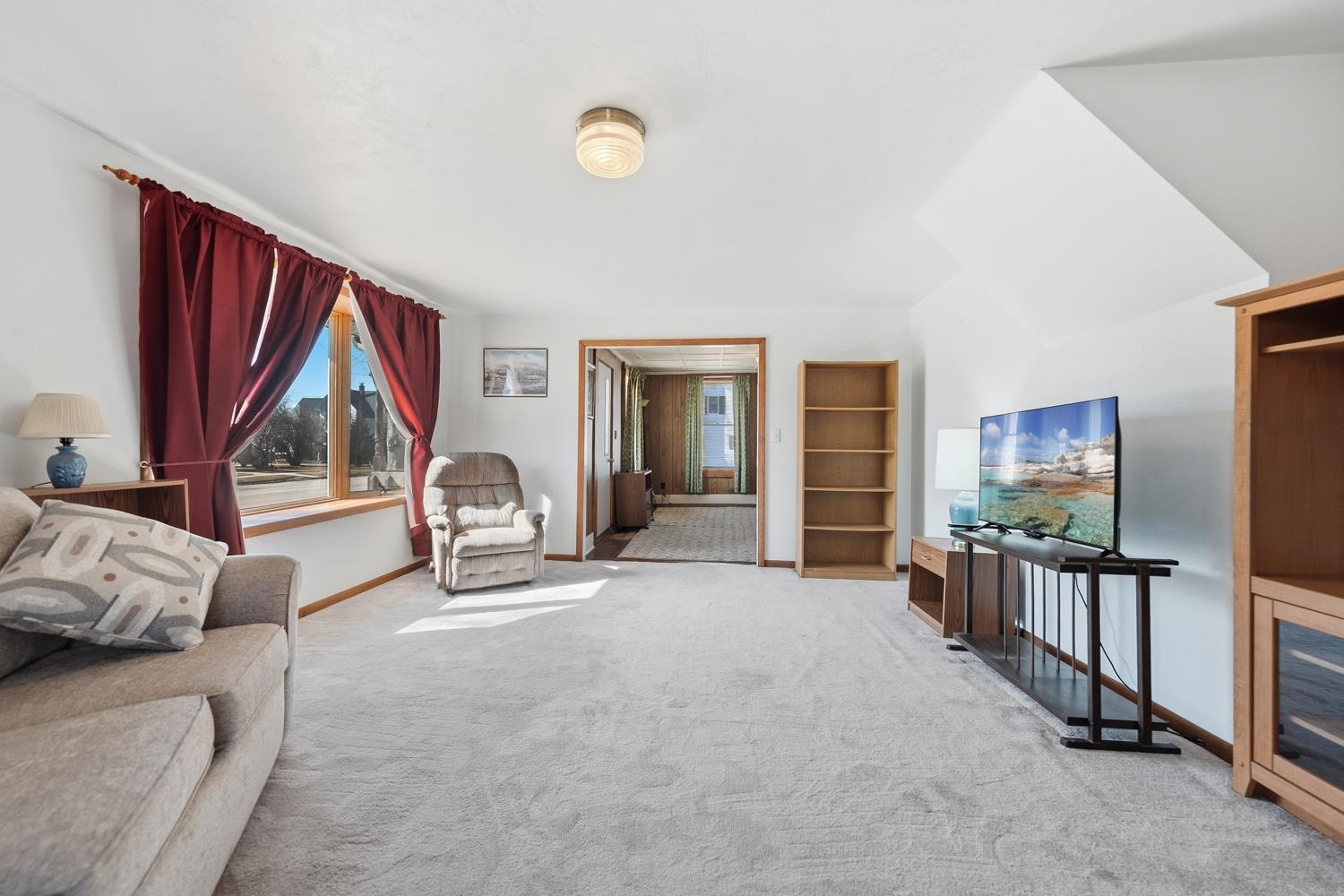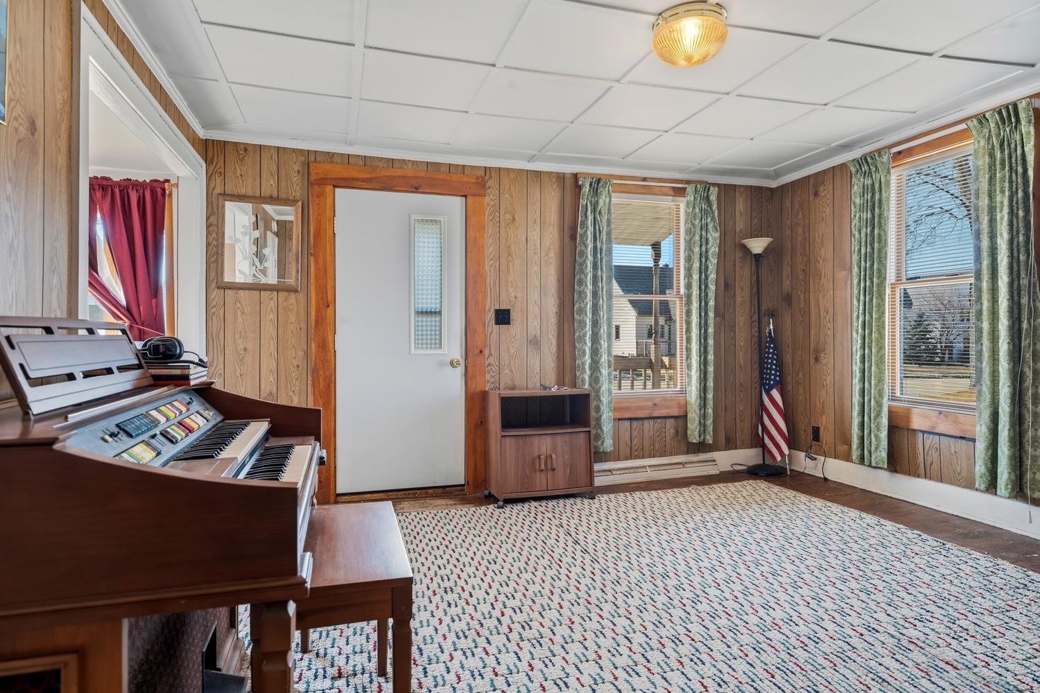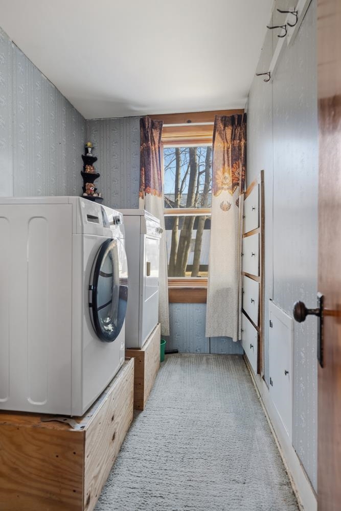 Charming 2BR/1BA 1.5 story home features a large living room w/ bay window, kitchen w/ appliances & snack-counter, and 1st floor laundry w/ included washer+dryer! Covered porch enters formal dining space flanked by the bright living room. Arch doorway leads to dinette & kitchen w/ ample cabinetry. Primary bedroom boasts triple closets! Full bath on main-floor w/ large low-step shower. Upper level clad in cheery color offers a 2nd bedroom & loft/lounge space w/ narrow-board hw floors. Tidy basement has a secondary laundry option & clean storage. Central A/C, 1.5 stall garage w/ opener. Home is 1 block from Algoma schools & 2 blocks from Crescent Beach & Boardwalk!