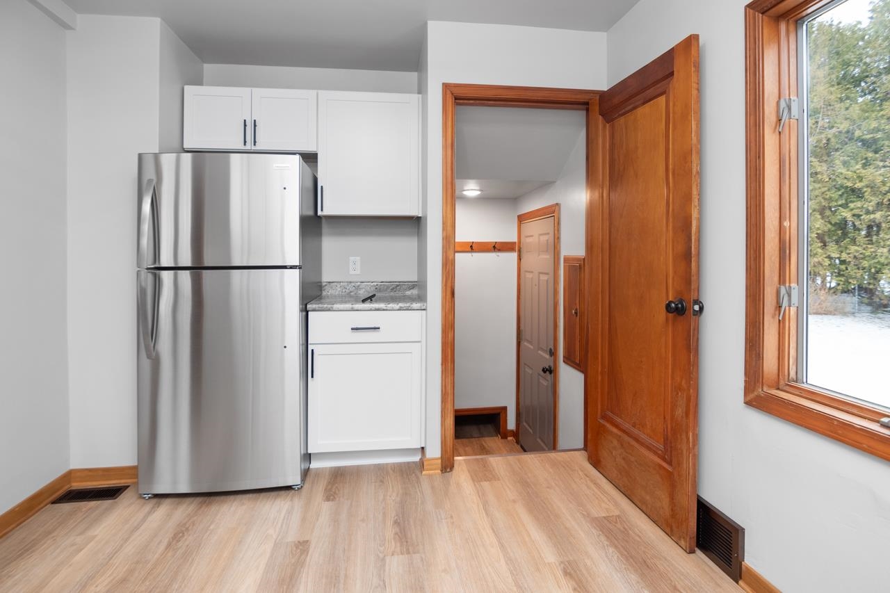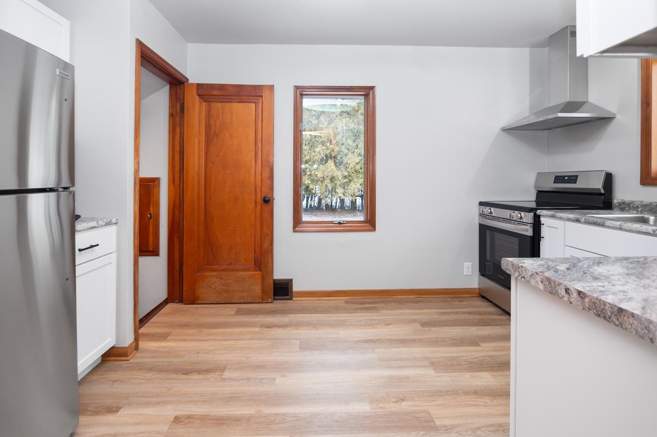 This cute, recently updated Cape Cod home is perfectly situated in the vibrant community of Algoma - steps from local favorites like restaurants, brewery, winery, beach & more. Door County's charm & attractions are only minutes away! Updated kitchen offers white cabinets & SS appliances. Dining rm showcases an arched opening to spacious living rm filled with lots of natural light. Three bedrooms & updated bath complete the main flr. A staircase leads to second flr presenting an opportunity to finish the space & create additional living area to suit your needs. LL includes a toilet making it easy to add another bathroom. Outside the private, tree-lined, fenced in backyard is perfect for relaxing or entertaining. New roof & gutters in 2025.Great combination of updates, character & potential!