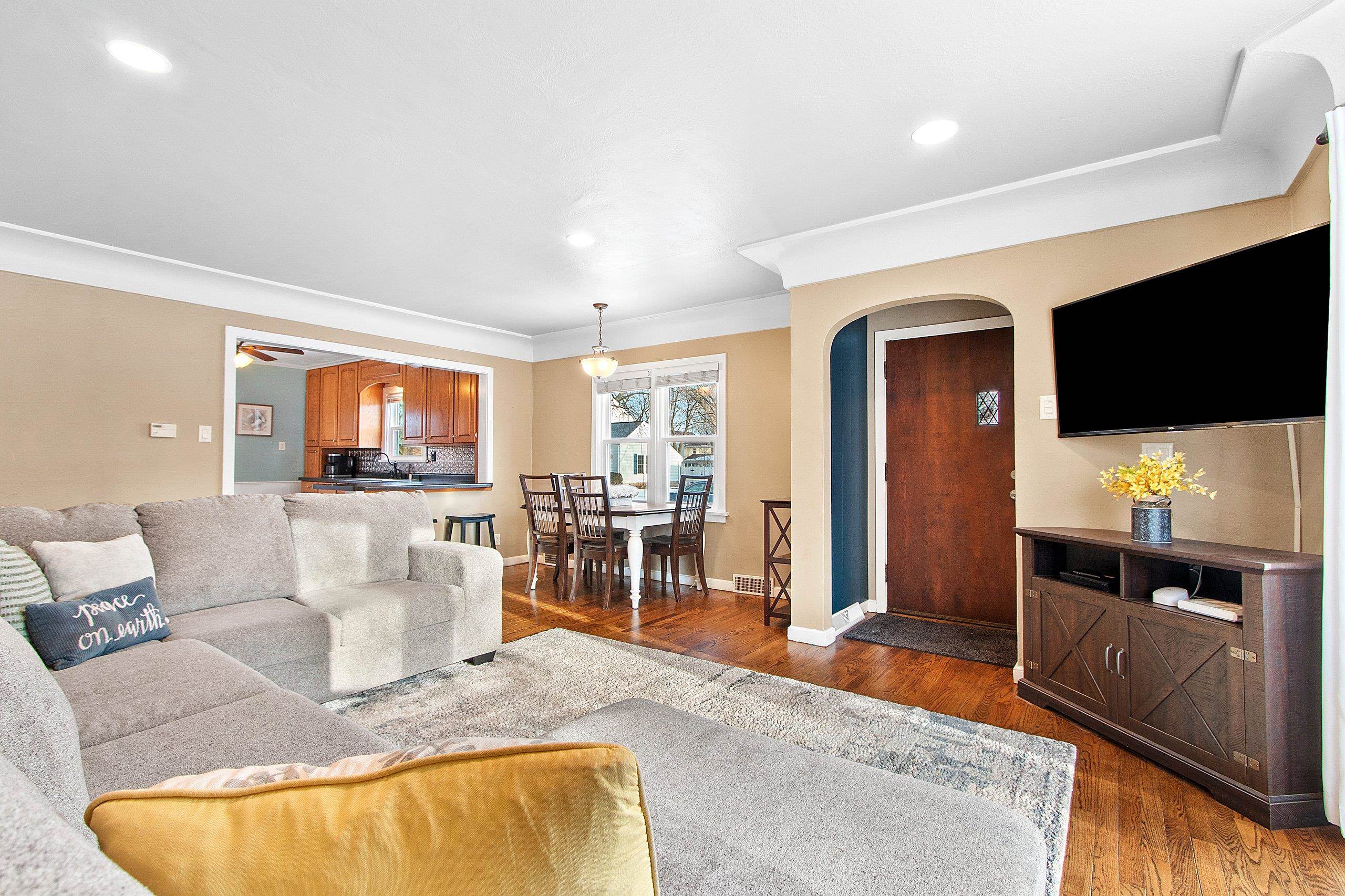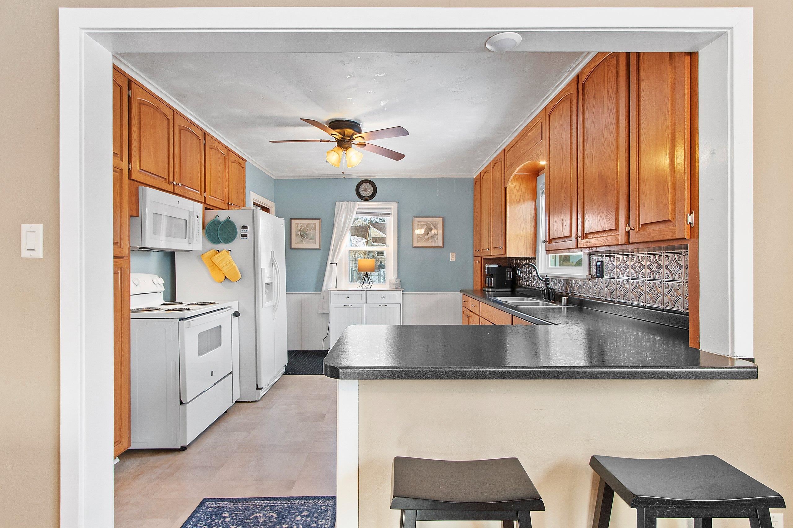 Charming & full of character, this home has been thoughtfully updated from top to bottom! Enjoy peace of mind w/major improvements already completed: windows, roof, driveway, A/C, spray insulation in basement, refinished hardwood floors, outside grading front/back, recessed lighting, grounded outlets & much more. Kitchen w/snack bar. Main bedroom offers double closets and 2nd bedroom offers walk in closet. Bathroom offers updated fixtures. Large upper room has tons of possiblities for whatever your need may be. Breezeway attaches the 1 car garage. Fenced yard. Bright welcoming space filled w/natural light throughout and tasteful updates that blend modern convenience with classic charm. Fully applianced including washer & dryer. This move-in ready gem is ready to impress! 48 binding accept