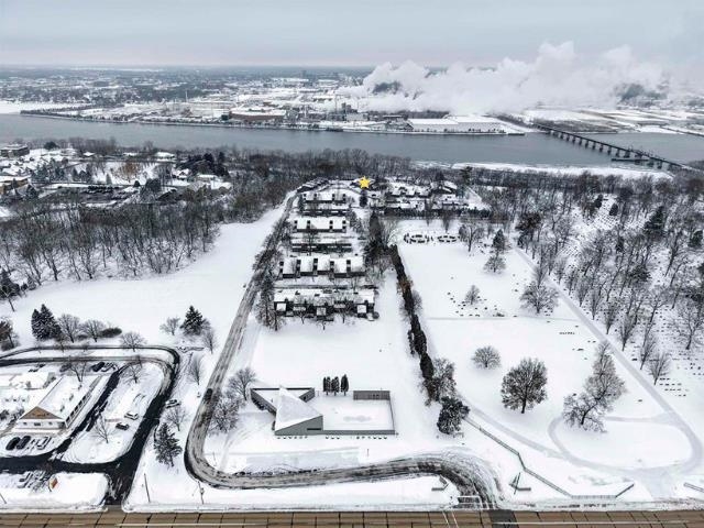 One of the largest floorpans in coveted Webster Heights! Arrive through a landscaped courtyard with Japanese Maple tree and enjoy the gorgeous westward views over the Fox River and Fox River Trail. Beautifully updated kitchen with Jenn-Air appliances and butler's pantry w/ custom baking area. Primary suite on main floor. Upstairs includes loft area w/ wet bar and additional bedroom w/ ensuite. The perfect retreat for guests! Cedar-lined closet. Basement rec room. Garage w/ epoxy floor. Roughly 12 acres of park-like grounds in the heart of Allouez w/ wildlife galore. Association includes a clubhouse and outdoor heated pool.