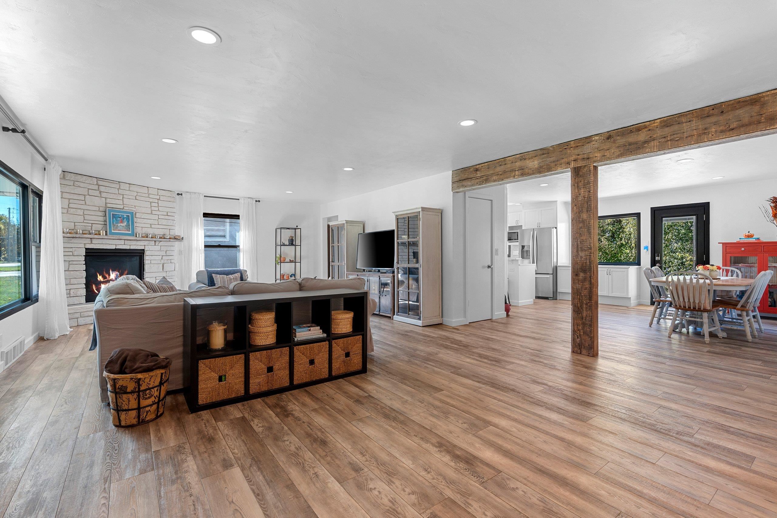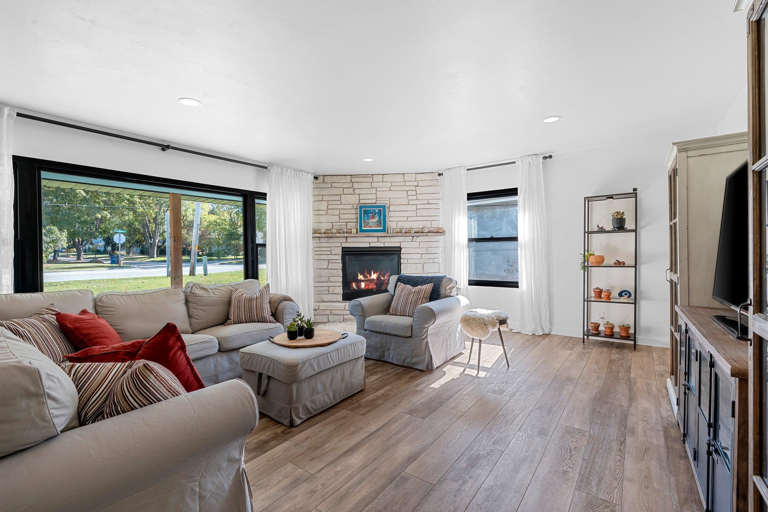 Don't miss this chance to own a beautifully remodeled home just steps from the Fox River--without paying waterfront taxes. Enjoy direct access to the scenic Fox River Trail, along with stunning waterfront & sunset views. You can even see Lambeau Field in the distance! Completely renovated from top to bottom, this home blends modern design w/ inviting comfort. The spacious great room features a gas fireplace w/ a striking stone surround. The gourmet kitchen boasts white cabinetry, quartz countertops, & incredible views overlooking the river. Both full baths showcase high-end finishes, including custom tile work & solid surface countertops. The expansive finished lower level provides endless possibilities to suit your lifestyle. Some photos are virtually staged. LL sqft is estimated