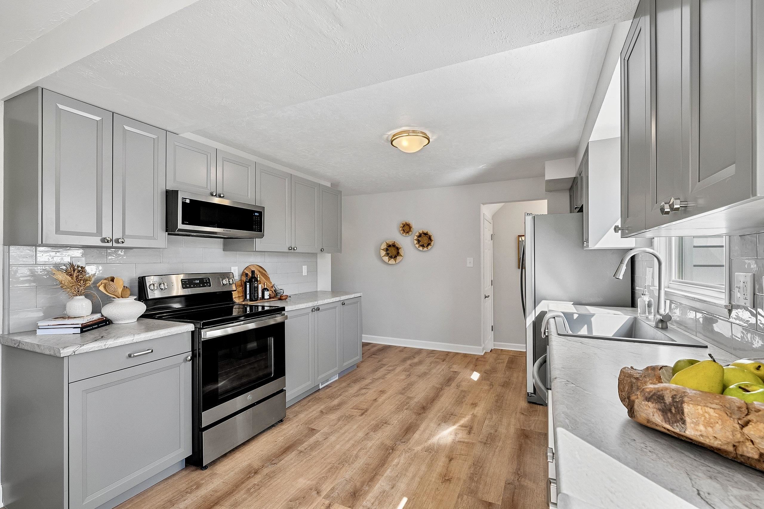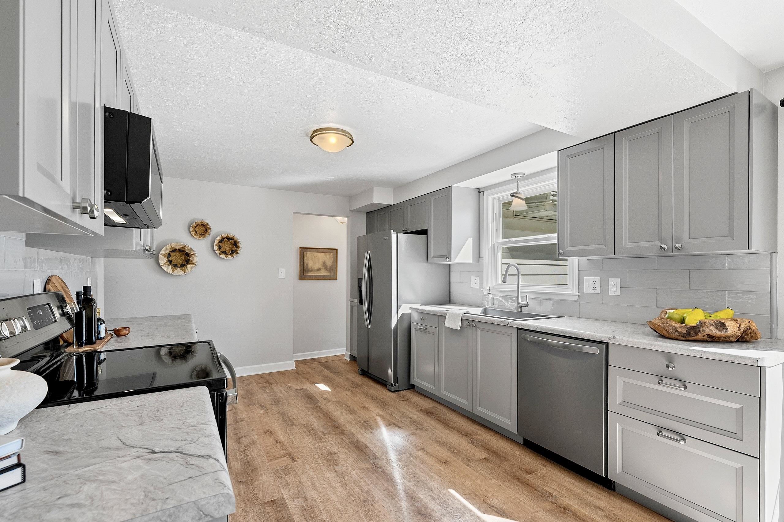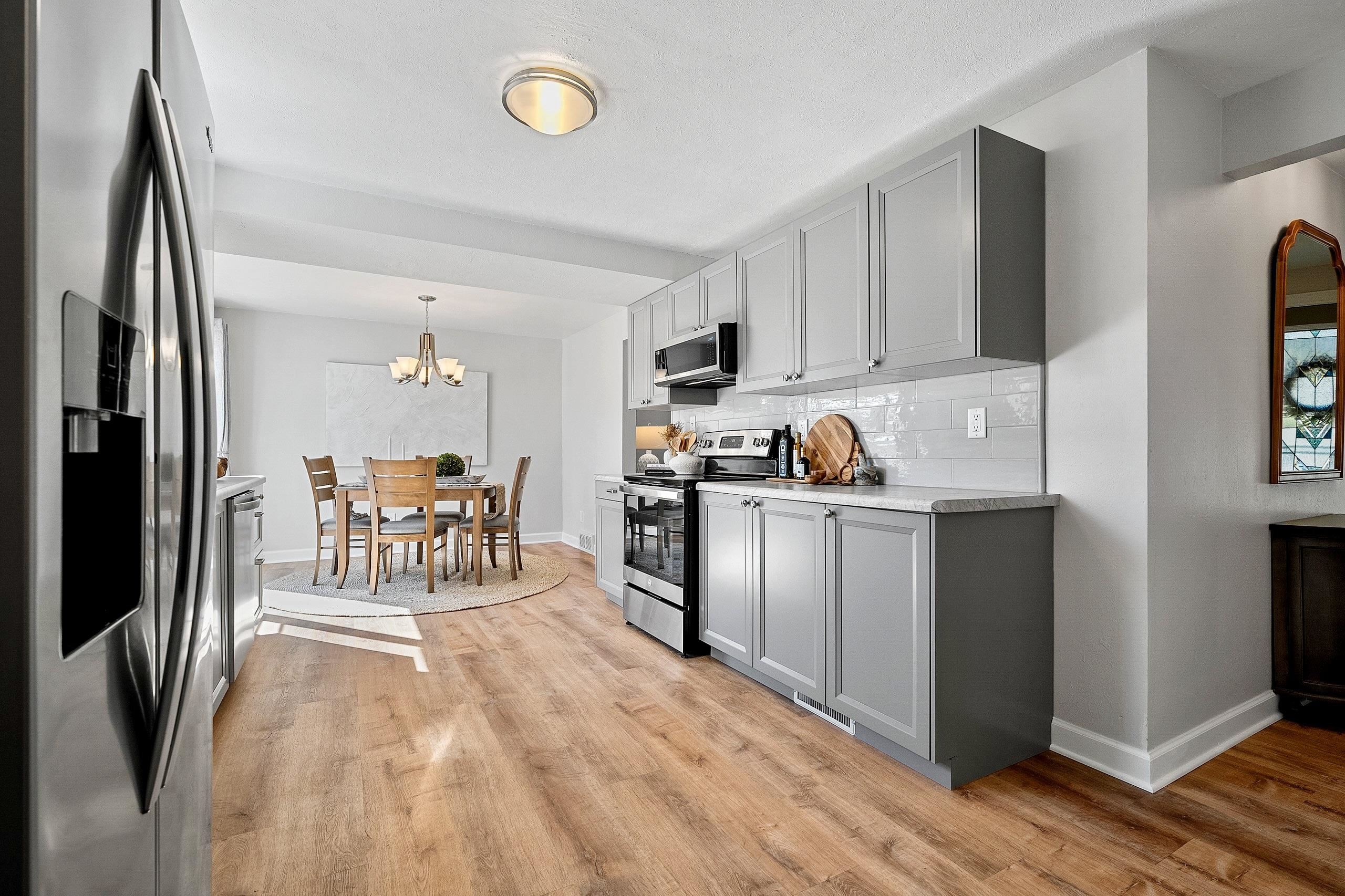 Darling Cape Cod Allouez 3 bdrm completely refreshed home w/ a fully fenced yard. New roof on home in '22 & on garage '24. Renovated kitchen w/ all new soft close cabinets/counters/classic subway tile backsplash/dishwasher/microwave/lighting/paint, 2 large family rooms on main level, 2 decks w/ access to spacious fenced yard, main level bath renovated, entire interior of home & millwork newly painted, new raised panel doors on main level, all new lighting throughout home, main level bdrm/full bath/laundry w/ an additional shower, exterior grounds & landscaping entirely refreshed & a 2 stall attached garage...Phew! Conveniently located to hospitals, Fox River Trail, downtown E DePere & Green Bay, restaurants & shopping. TOTAL GEM!!!