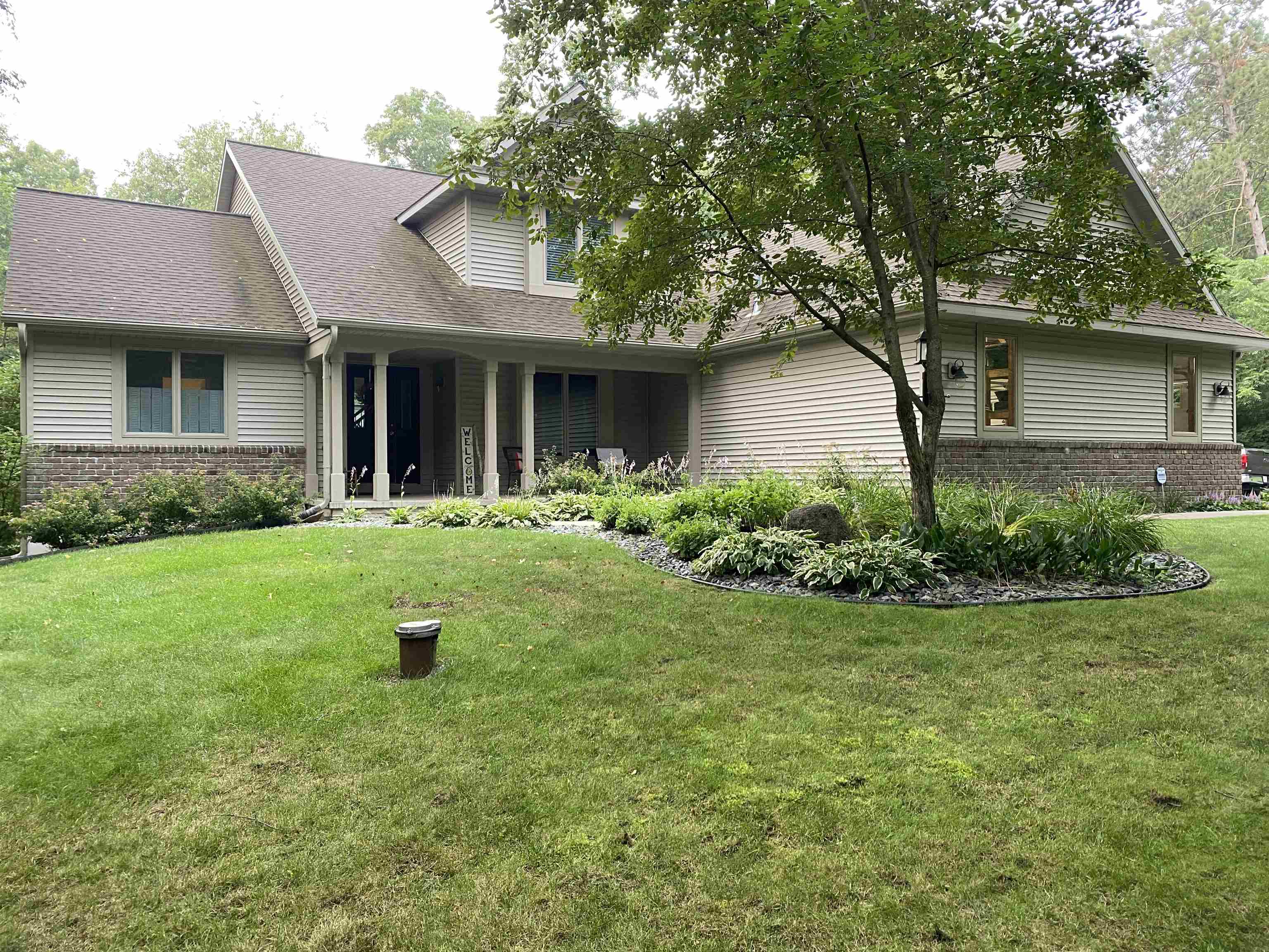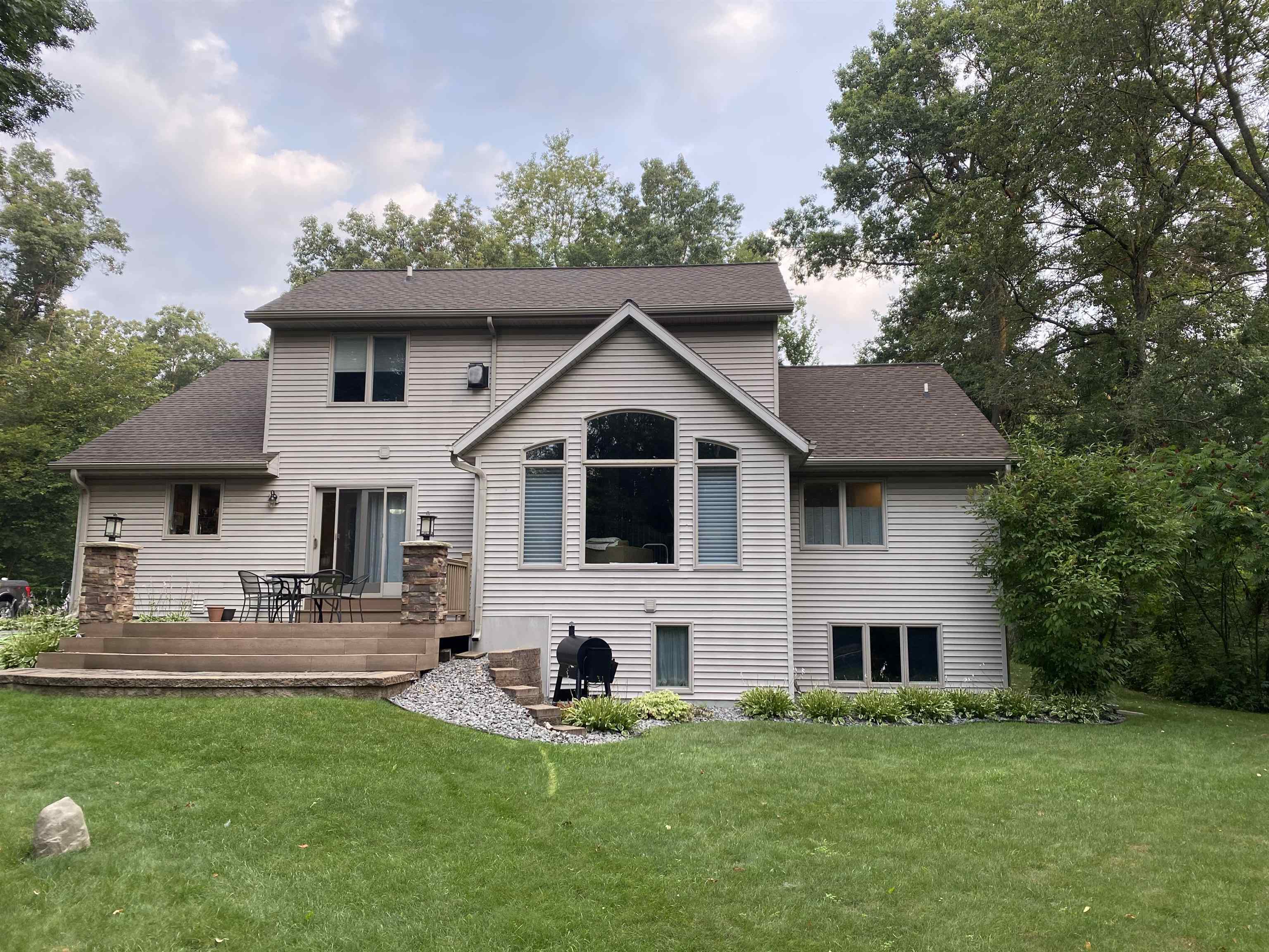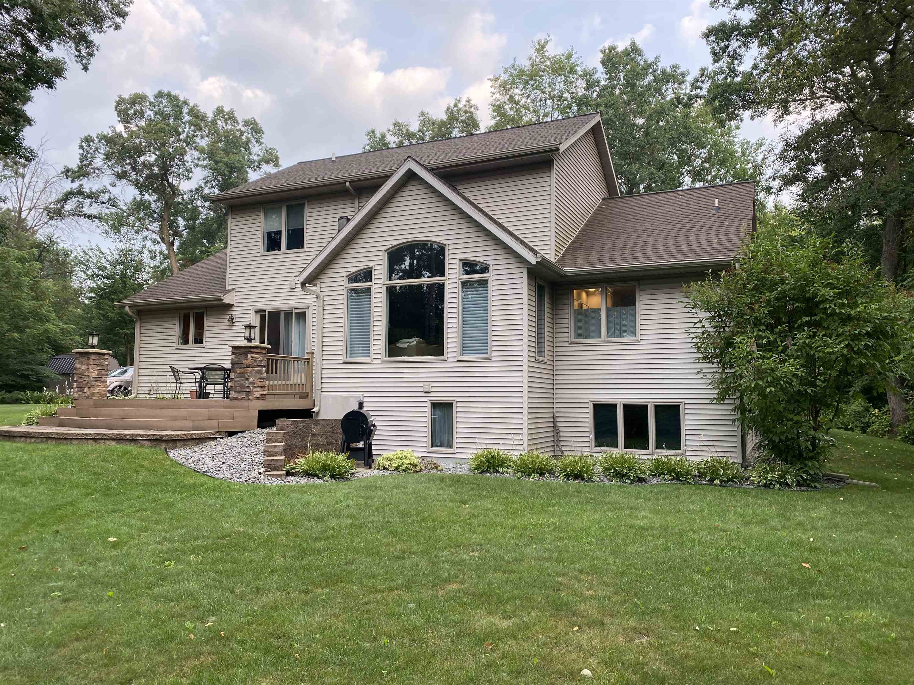 2 wooded acres • Heated 3-stall garage w/epoxy floors • Roof 2015 • Furnace & A/C 2018 • Primary bath remodel 2021 Set on a peaceful, tree-lined lot in Amherst Junction, this well-built two-story home blends quality craftsmanship with everyday comfort. The open main level centers around a gas fireplace and connects the living, dining, and kitchen areas. A main-floor primary suite features a walk-in closet, soaking tub, and tiled walk-in shower from the 2021 remodel. Upstairs, two bedrooms share a full bath, while the finished lower level adds a family room, bedroom, and full bath. Outside, enjoy the quiet wooded setting, established trails winding through native wildflowers and perennial plantings, and open space for relaxing or play. Offers due by 11/16 to be presented on 11/17.
