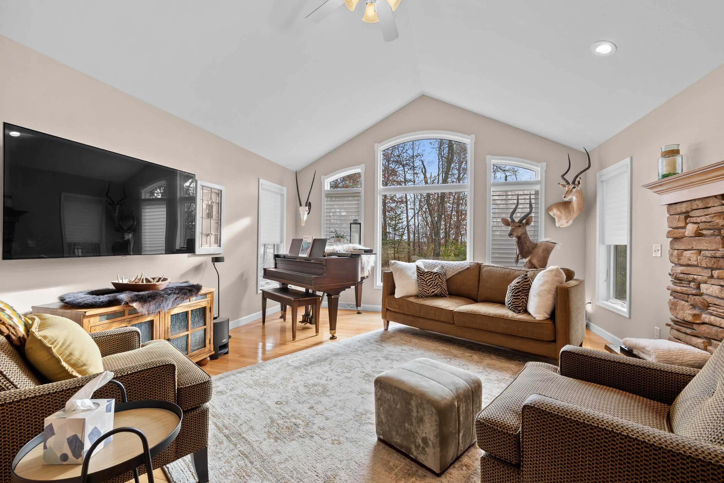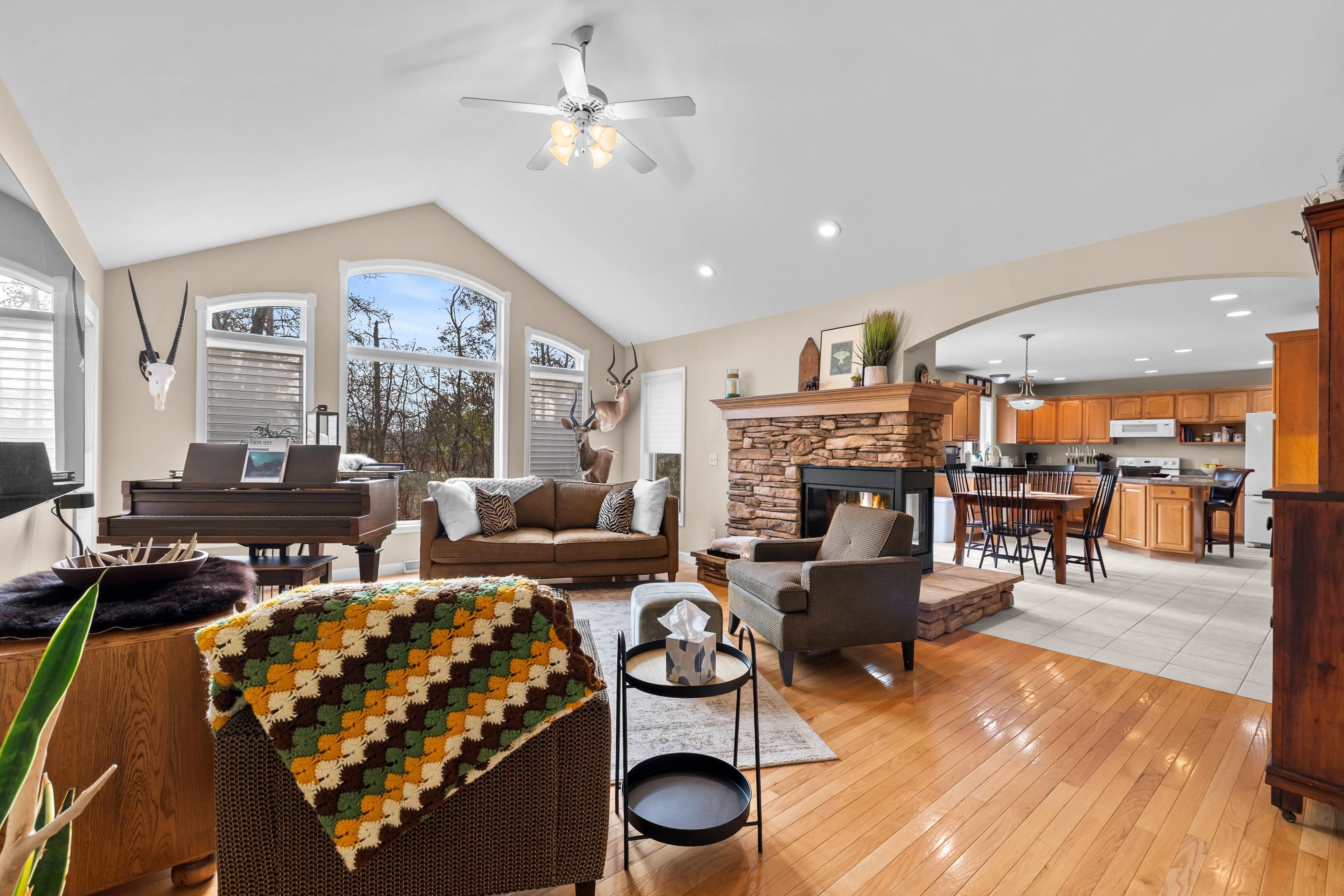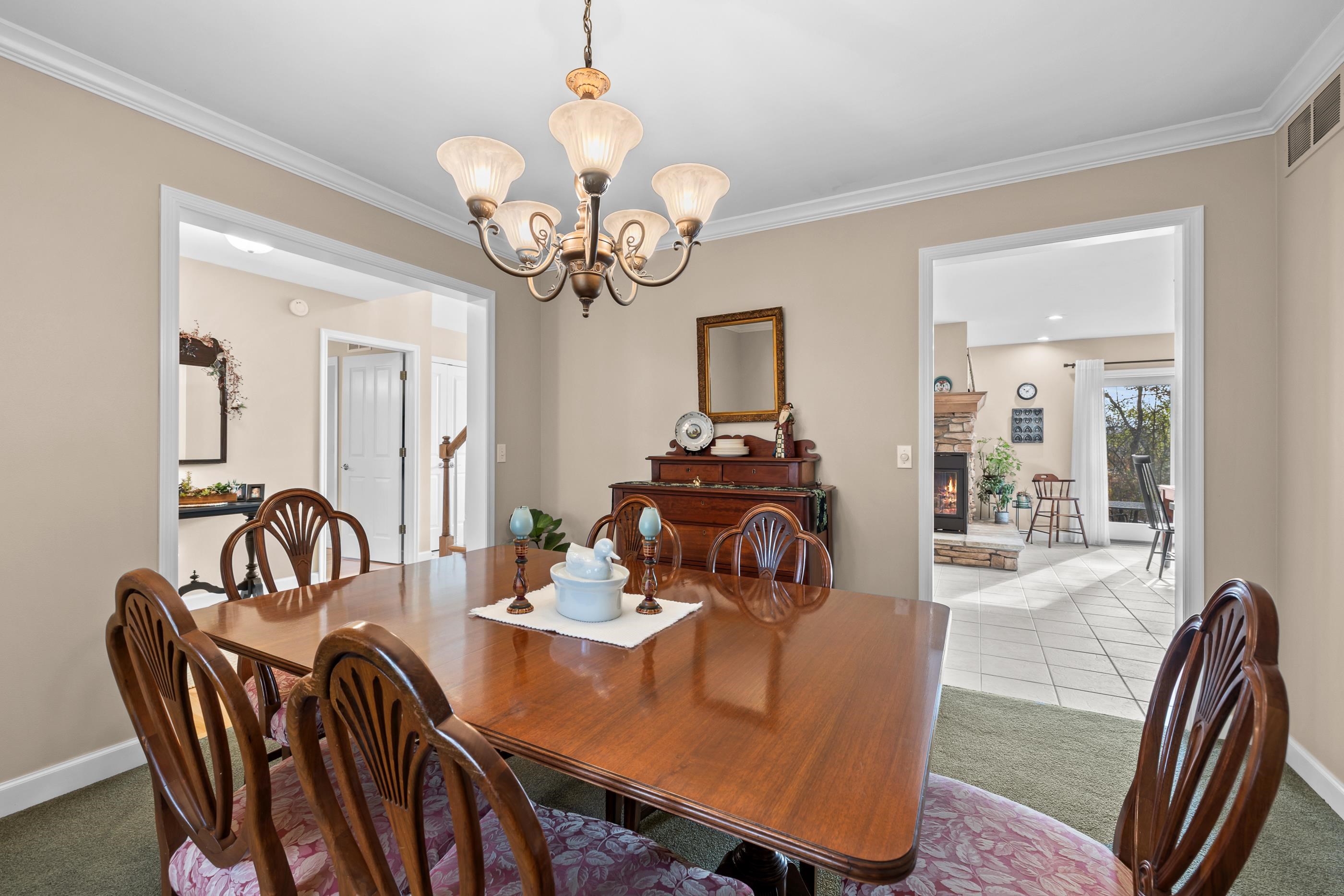 2 wooded acres • Heated 3-stall garage w/epoxy floors • Roof 2015 • Furnace & A/C 2018 • Primary bath remodel 2021 Set on a peaceful, tree-lined lot in Amherst Junction, this well-built two-story home blends quality craftsmanship with everyday comfort. The open main level centers around a gas fireplace and connects the living, dining, and kitchen areas. A main-floor primary suite features a walk-in closet, soaking tub, and tiled walk-in shower from the 2021 remodel. Upstairs, two bedrooms share a full bath, while the finished lower level adds a family room, bedroom, and full bath. Outside, enjoy the quiet wooded setting, established trails winding through native wildflowers and perennial plantings, and open space for relaxing or play. Offers due by 11/16 to be presented on 11/17.