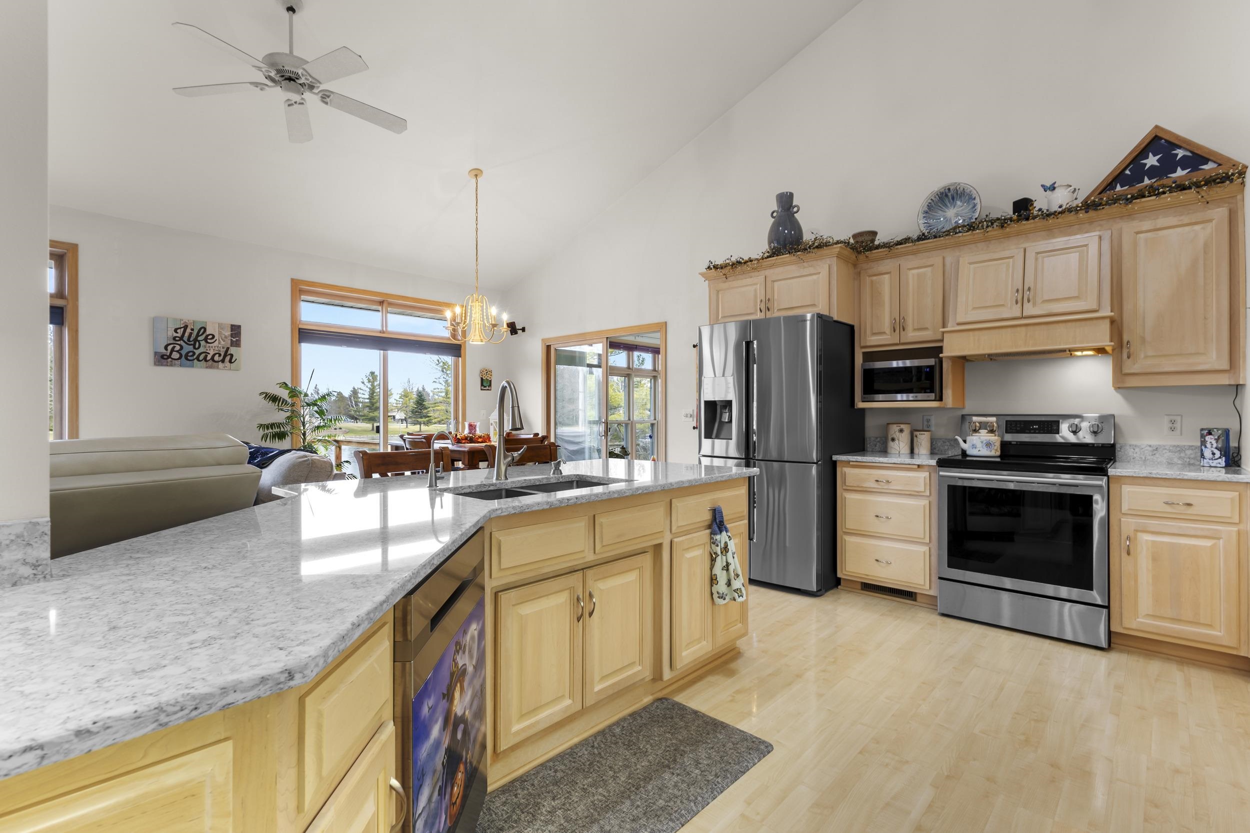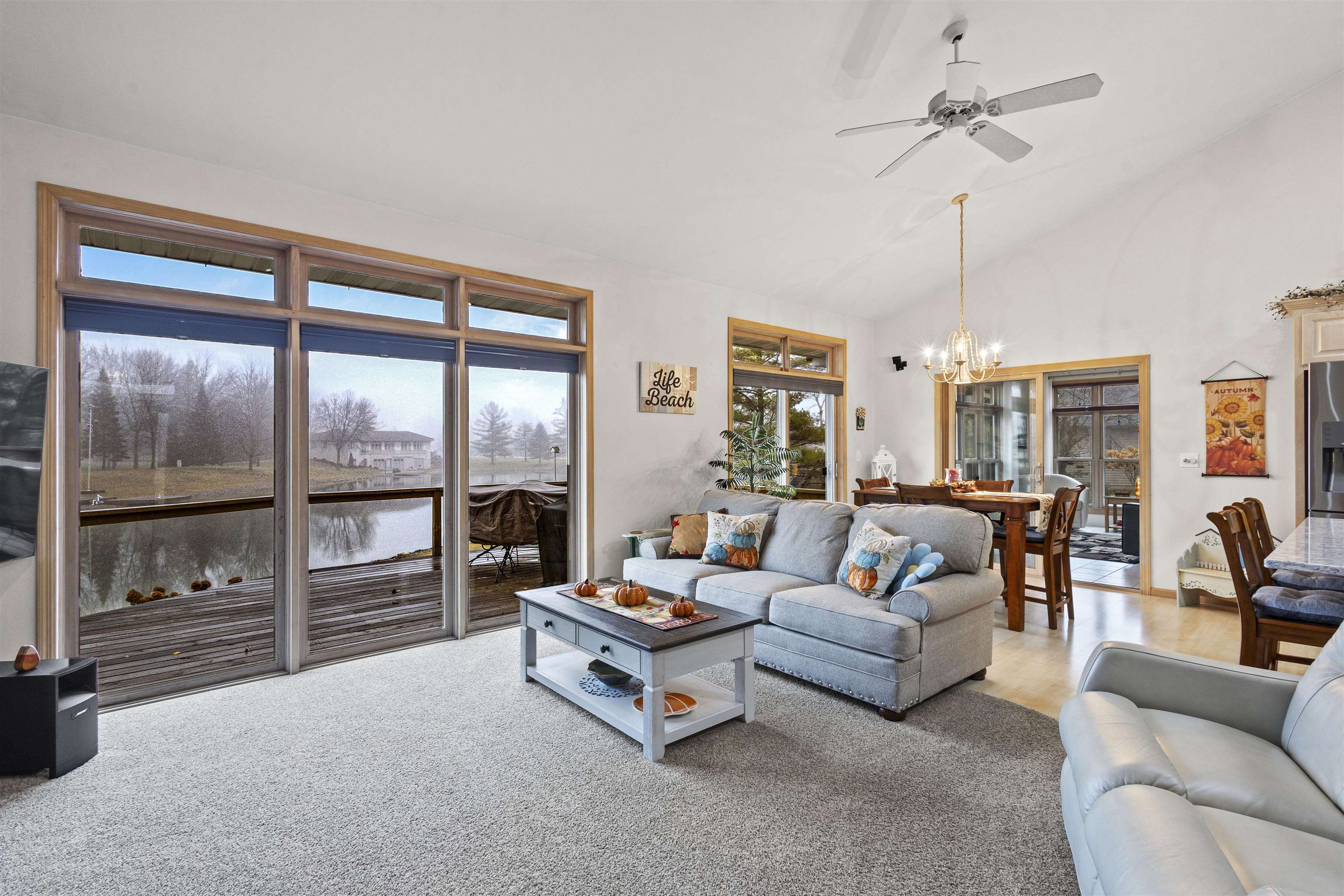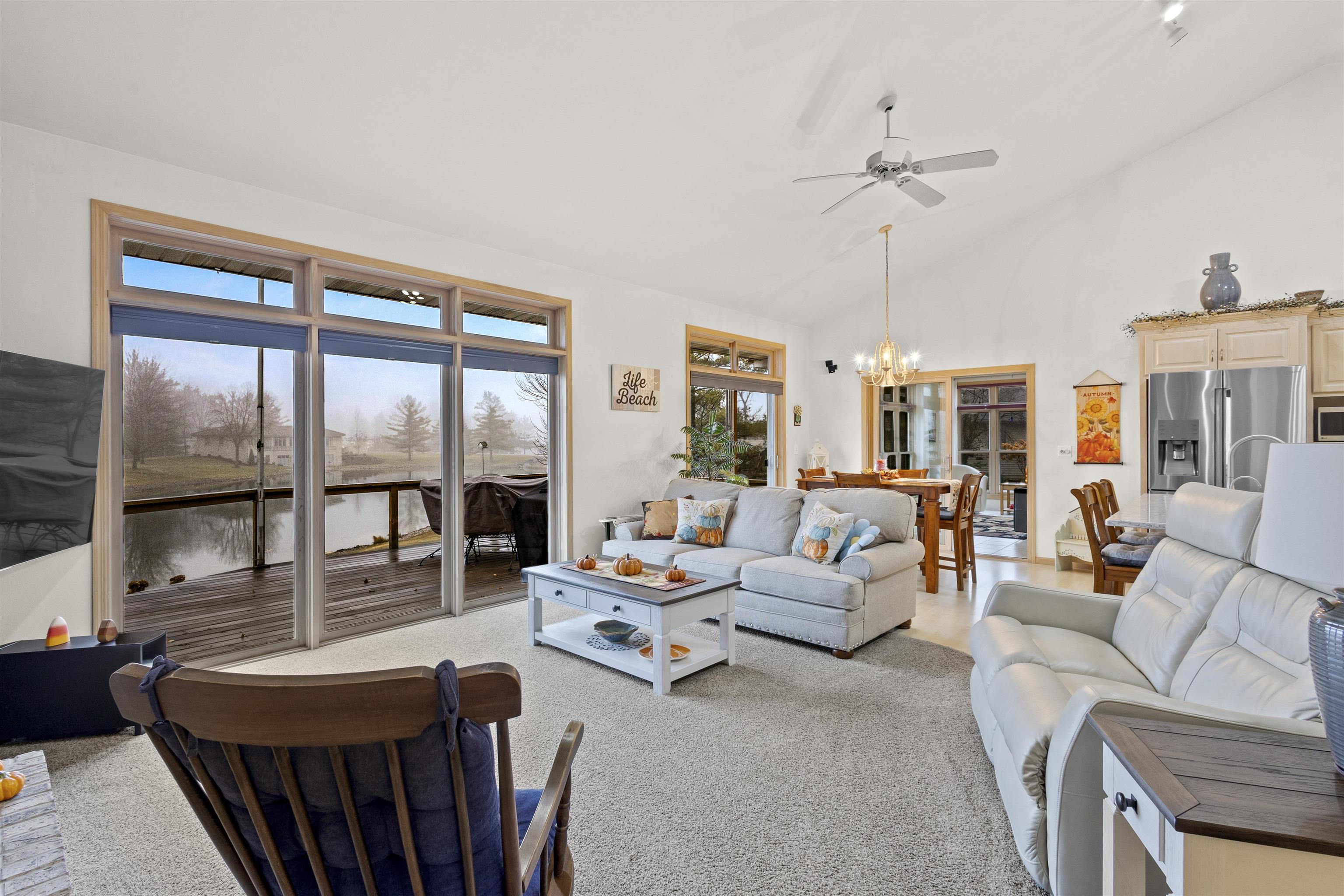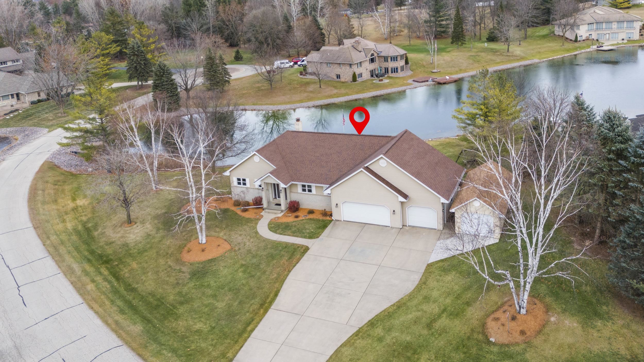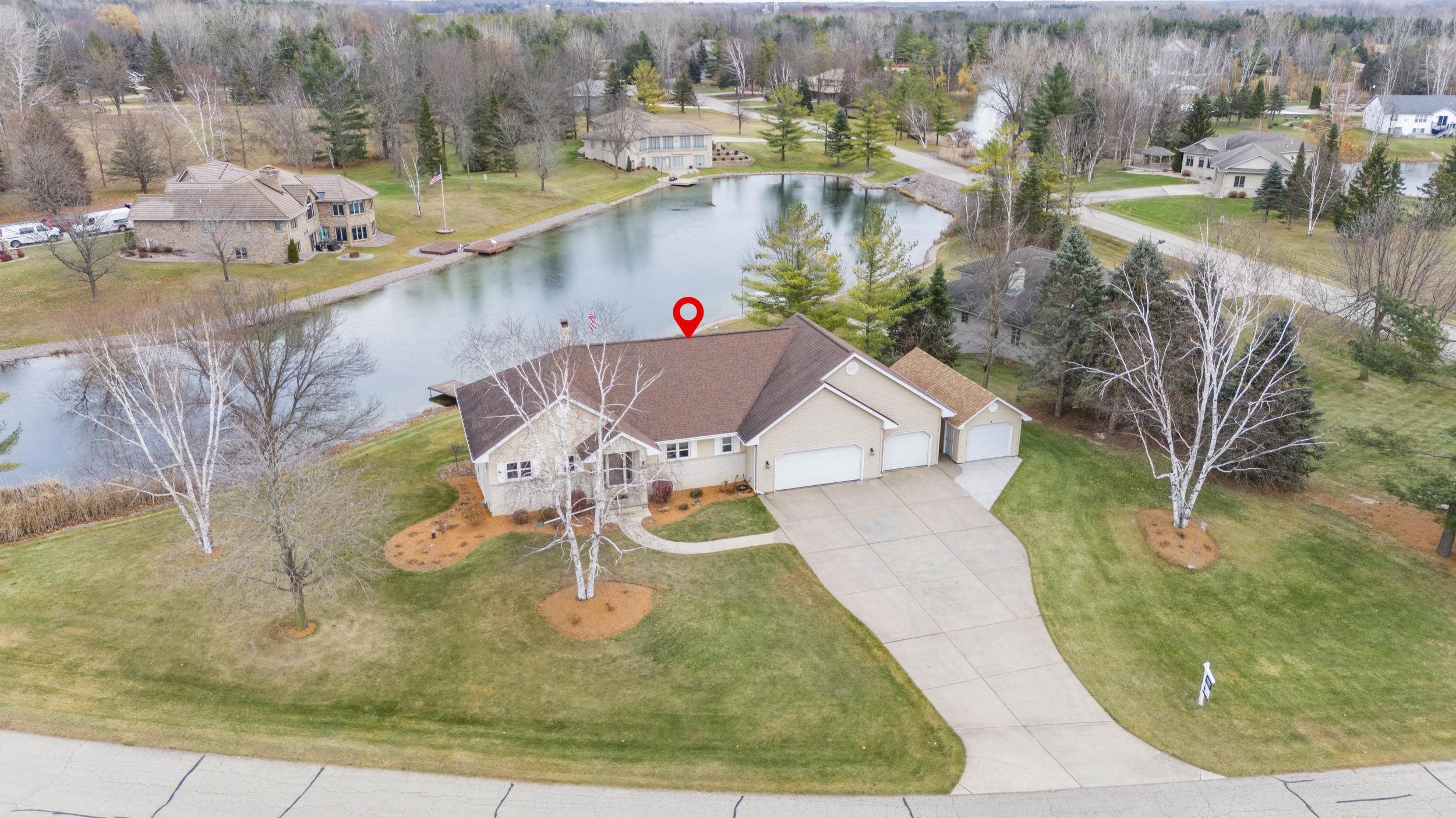 Don’t miss this rare chance to own one of only four homes on this lake! This beautifully updated 3 bed, 2.5 bath lakefront retreat offers stunning water views, 2,150 sq ft of living space, quartz counters, new appliances, and tons of updates. Enjoy .59 acres, garage space for up to 5 cars, and a partially finished walkout basement leading to the lake—fully stocked and swimmable for endless fun. Your dream lake escape awaits! Lower Lever bedrooms will receive new carpet 03/11/26, updated paint, and light fixtures.
