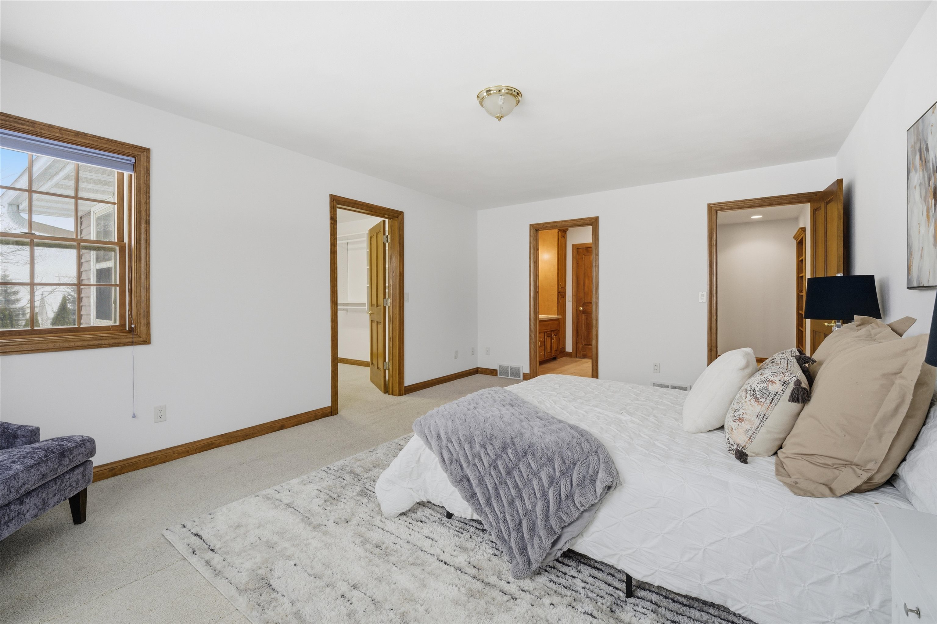 Desirable North Appleton home boasting over 3,000 sq. ft. above grade. This spacious 5-bedroom property welcomes you with a large living room featuring a gas fireplace. The adjacent kitchen offers granite center island and a full appliance package, flowing seamlessly into the breakfast area and wet bar—perfect for entertaining. The primary suite is conveniently located on the main floor and includes a walk-in closet and private bath with dual sinks, a walk-in shower and a jetted tub, along with a separate back entrance to the Primary Bedrm. The main level also features a well-appointed home office, half bath and first-floor laundry closet. Upstairs you’ll find 4 additional bedrooms, two with walk-in closets, plus a pass-through bathroom. Don’t miss out on this prestigious home!