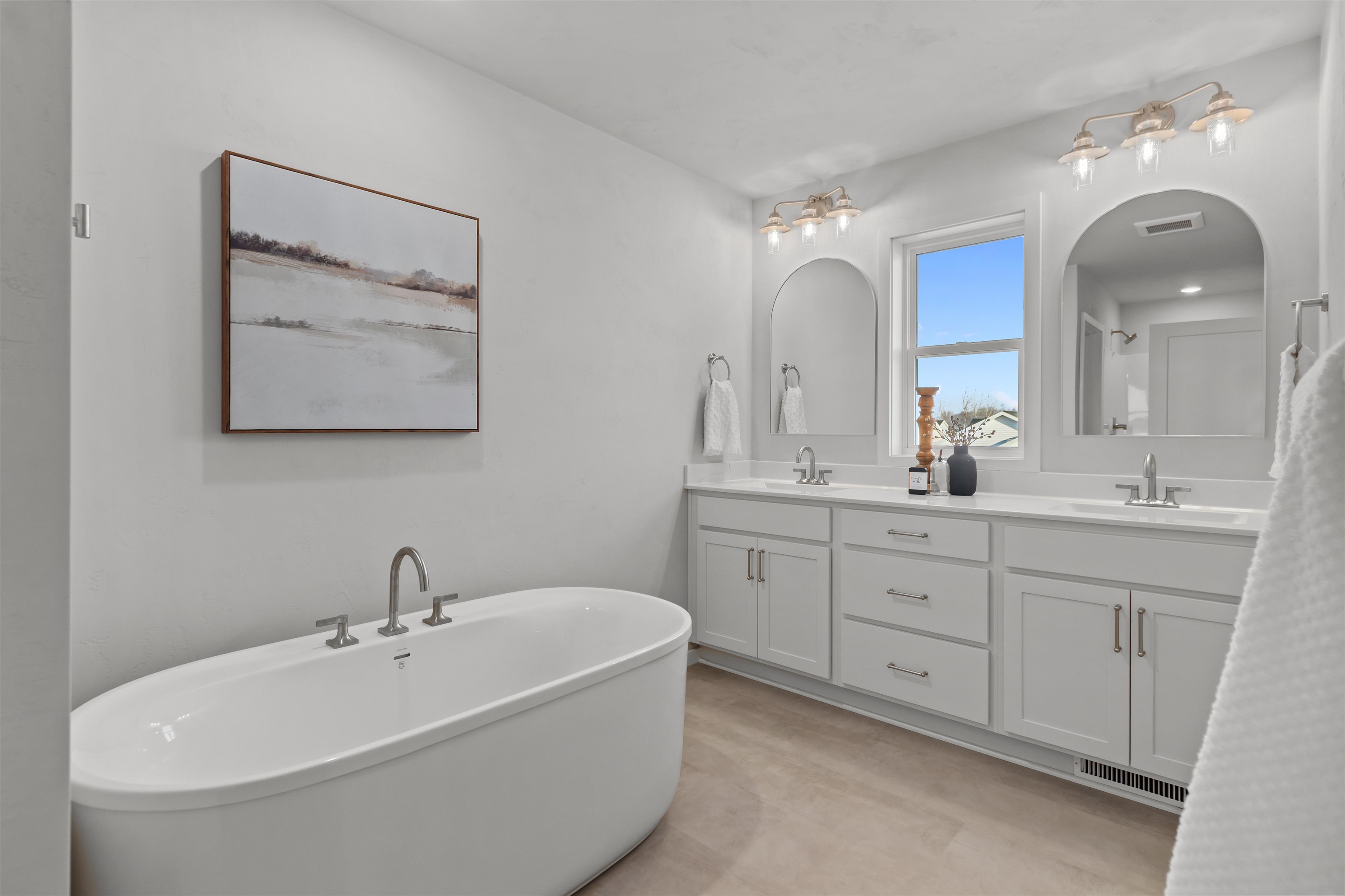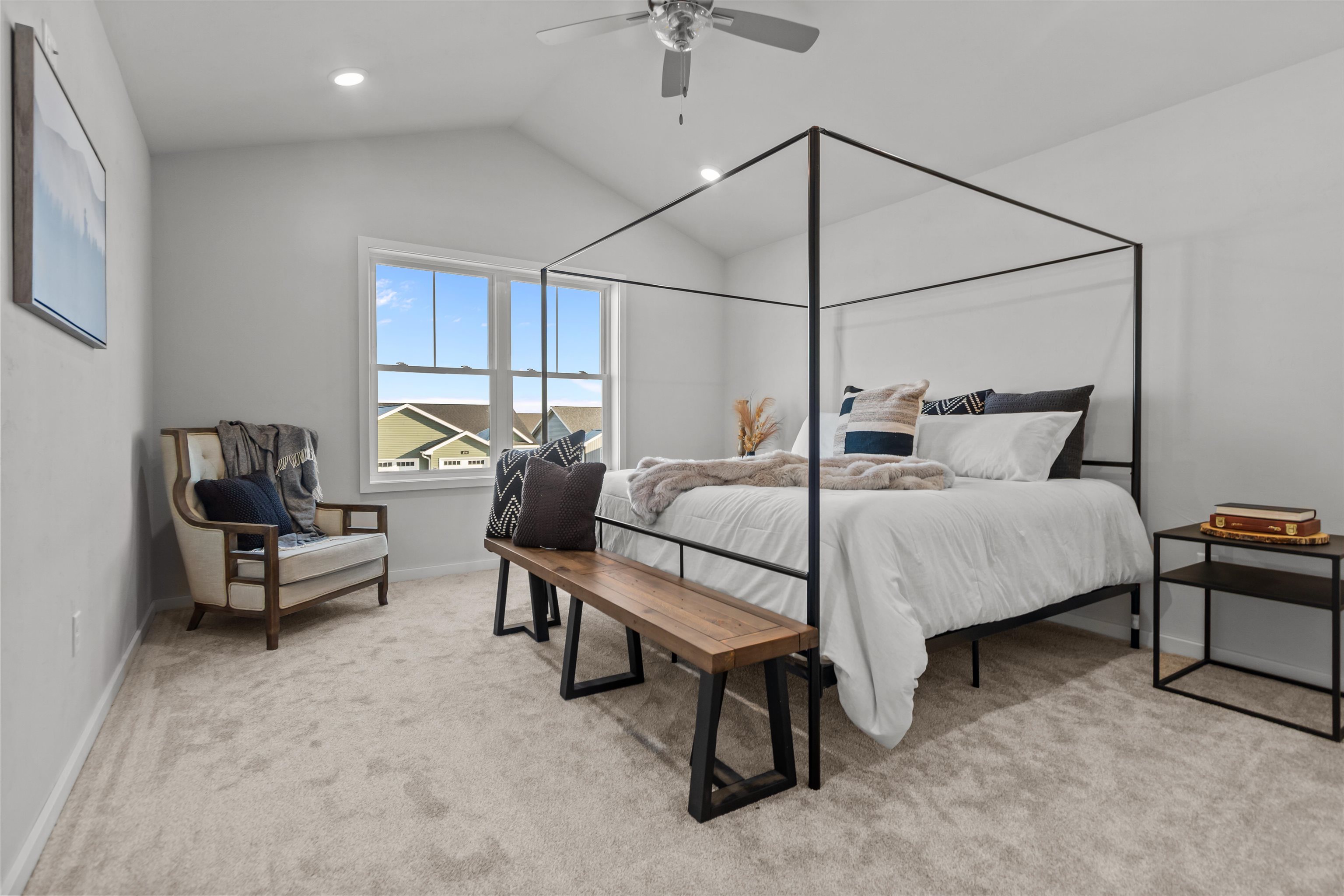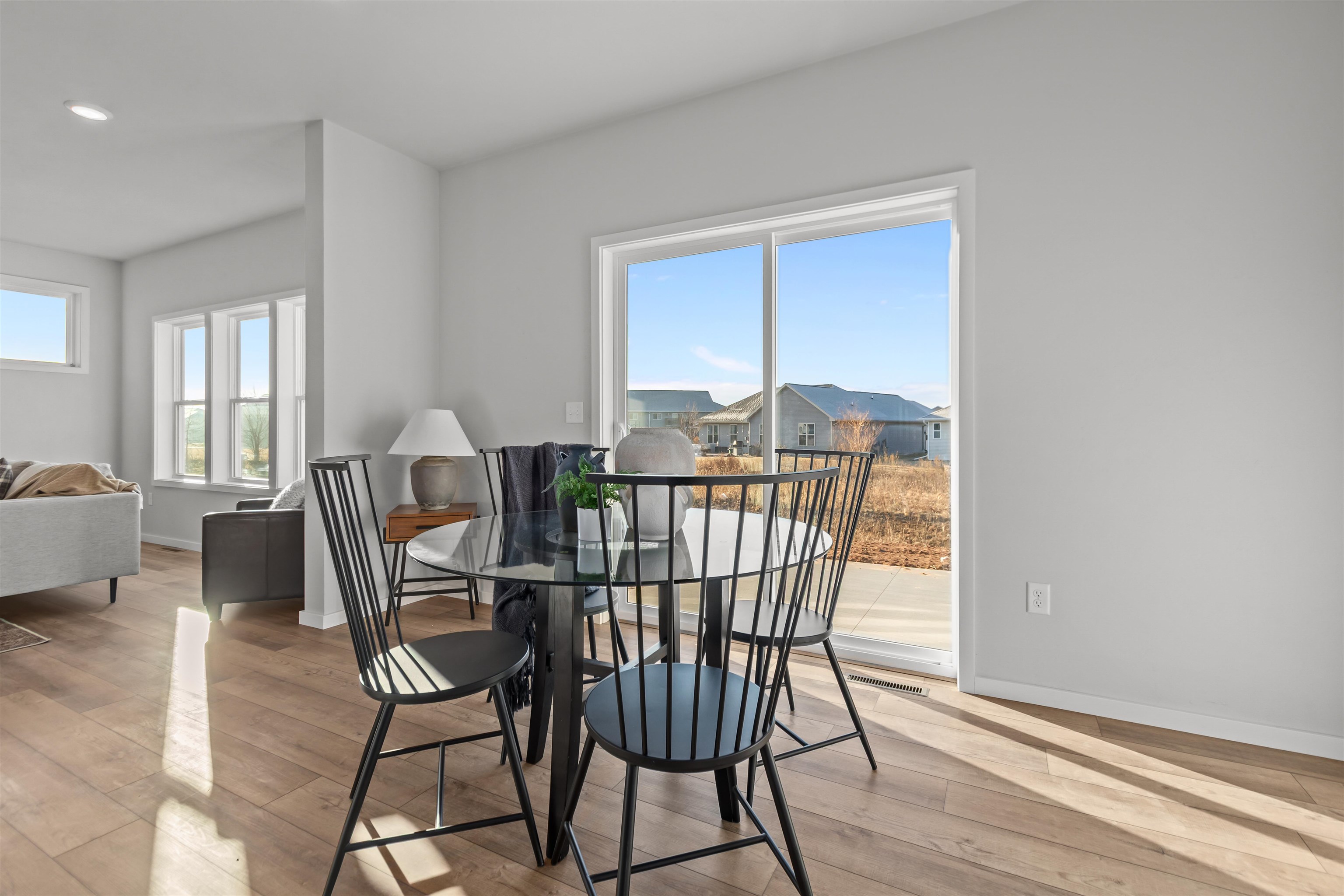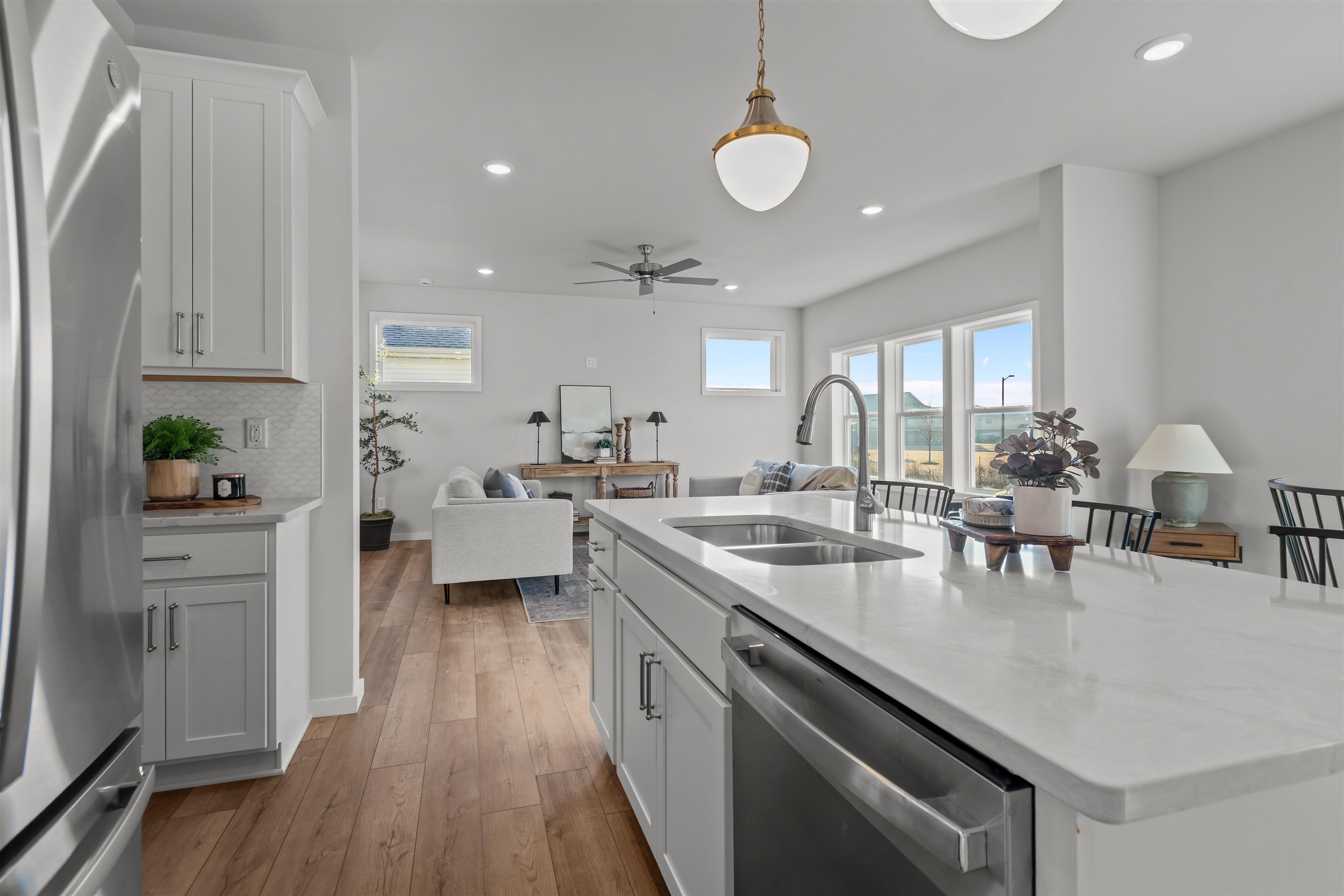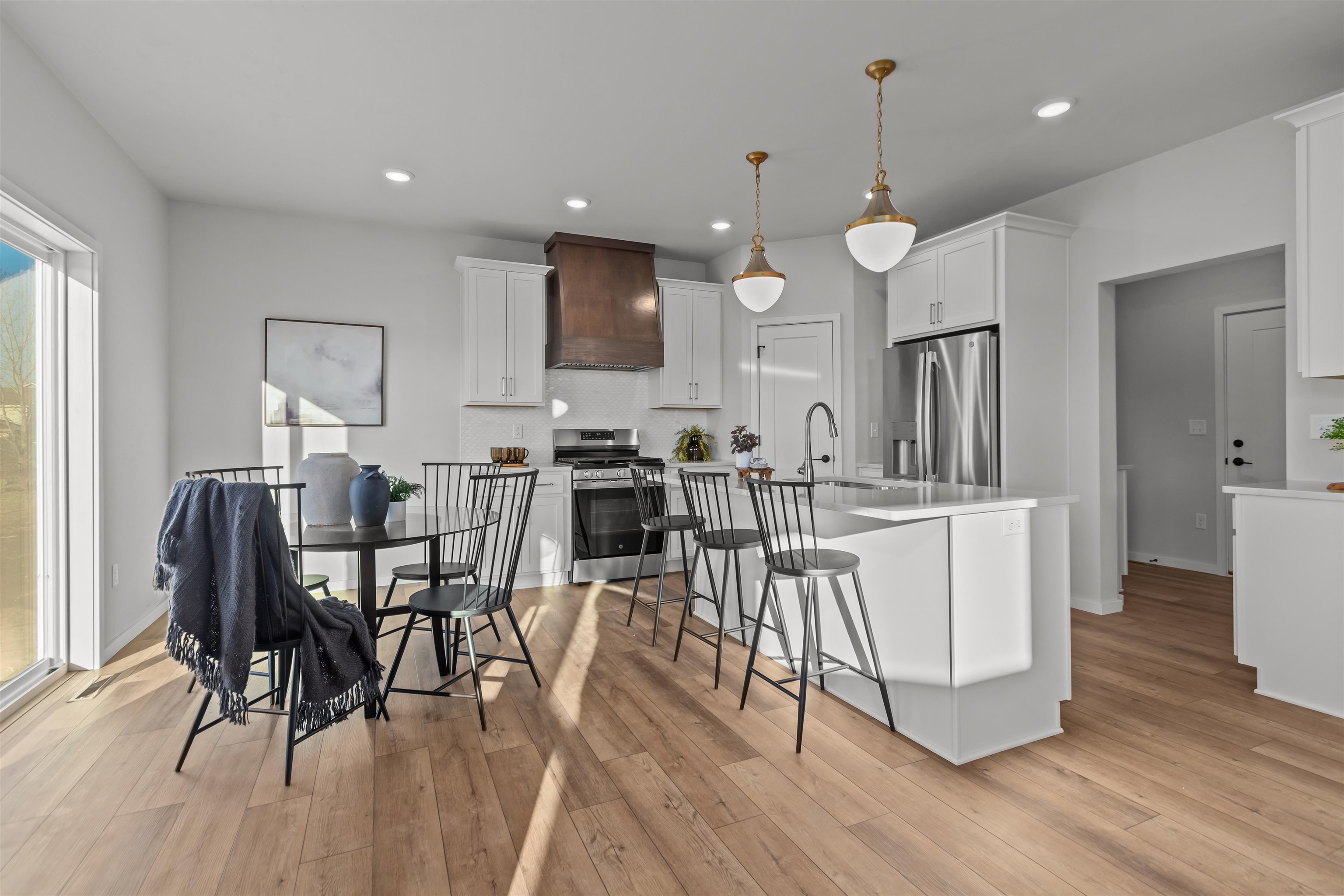 Experience modern living in this stunning open-concept home where natural light pours into every room. The heart of the home is a gourmet kitchen featuring warm beige quartz countertops, premium included appliances, and a spacious walk-in pantry for all your storage needs. The dining area flows seamlessly to a south-facing backyard, perfect for outdoor entertaining. Practicality meets style in the back hall, which offers a convenient drop zone, closet, and half-bath. Retreat to the luxurious master suite, boasting a large walk-in closet and a spa-like bath complete with a standalone tub, separate shower, and private water closet. Perfectly located near Badger Sports Park, extensive trails, and local restaurants, this home offers both comfort and convenience.