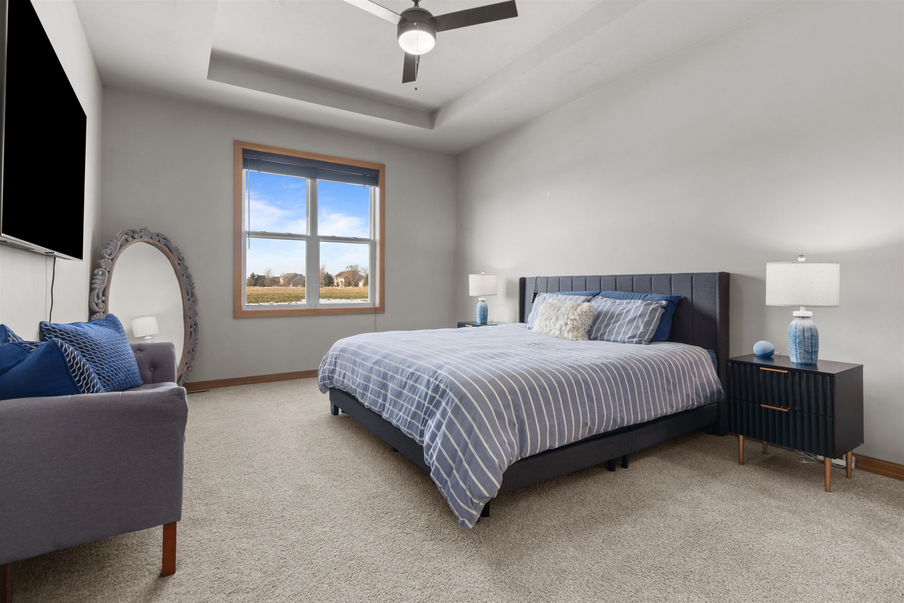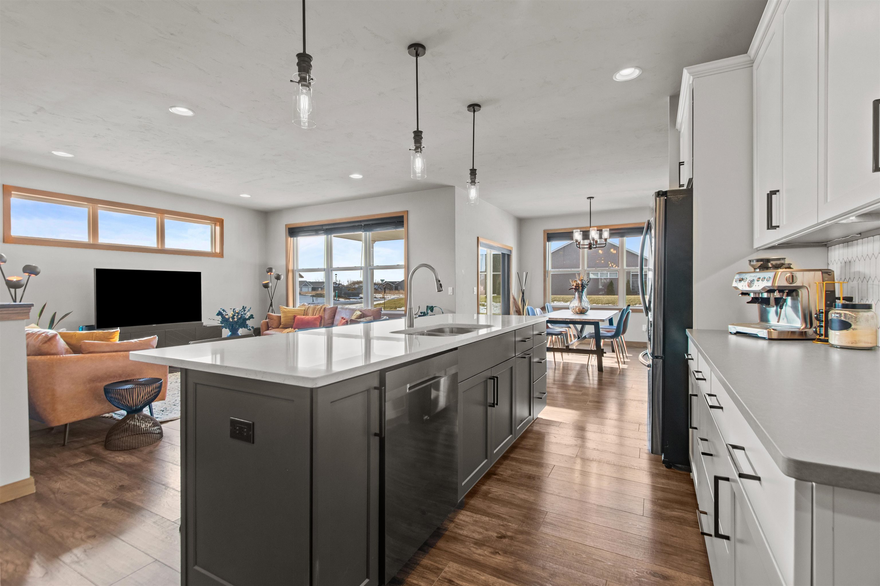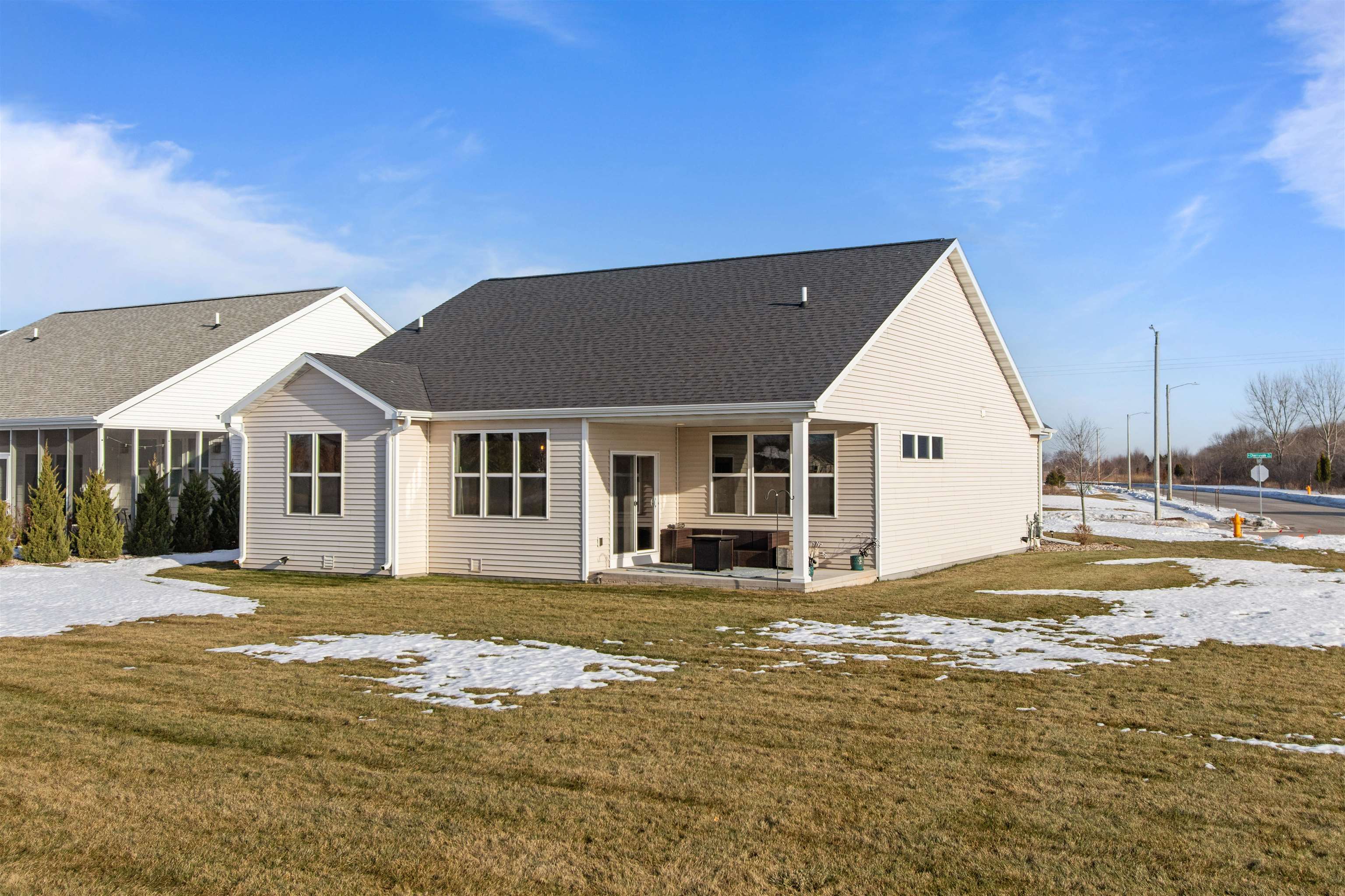 Step into easy living in this nearly new, pristine Open-Concept Ranch! The stylish Kitchen features top-notch Appliances, large Island w/seating & Walk-In Pantry, flowing into the sunny Great Rm & Dining Area—ideal for everyday living & entertaining. Patio doors open to a relaxing Covered Porch overlooking a 1/3-acre lot. A generously-sized Primary Bdrm & Bath provide a Private Retreat w/a luxurious Walk-In Tile Shower. An expansive LL is perfect for guests or multi-generational living, offering an inviting Rec Space, Kitchenette, 3rd full Bath, Egress Window & versatile Flex Rm-ideal as a possible In-Law Suite! Enjoy a convenient location near Apple Creek Trail, Vosters & Lundgren Parks, Schools & quick Hwy Access to the Valley or Green Bay. RELAX!!...SNOW & LAWN CARE PROVIDED thru HOA.