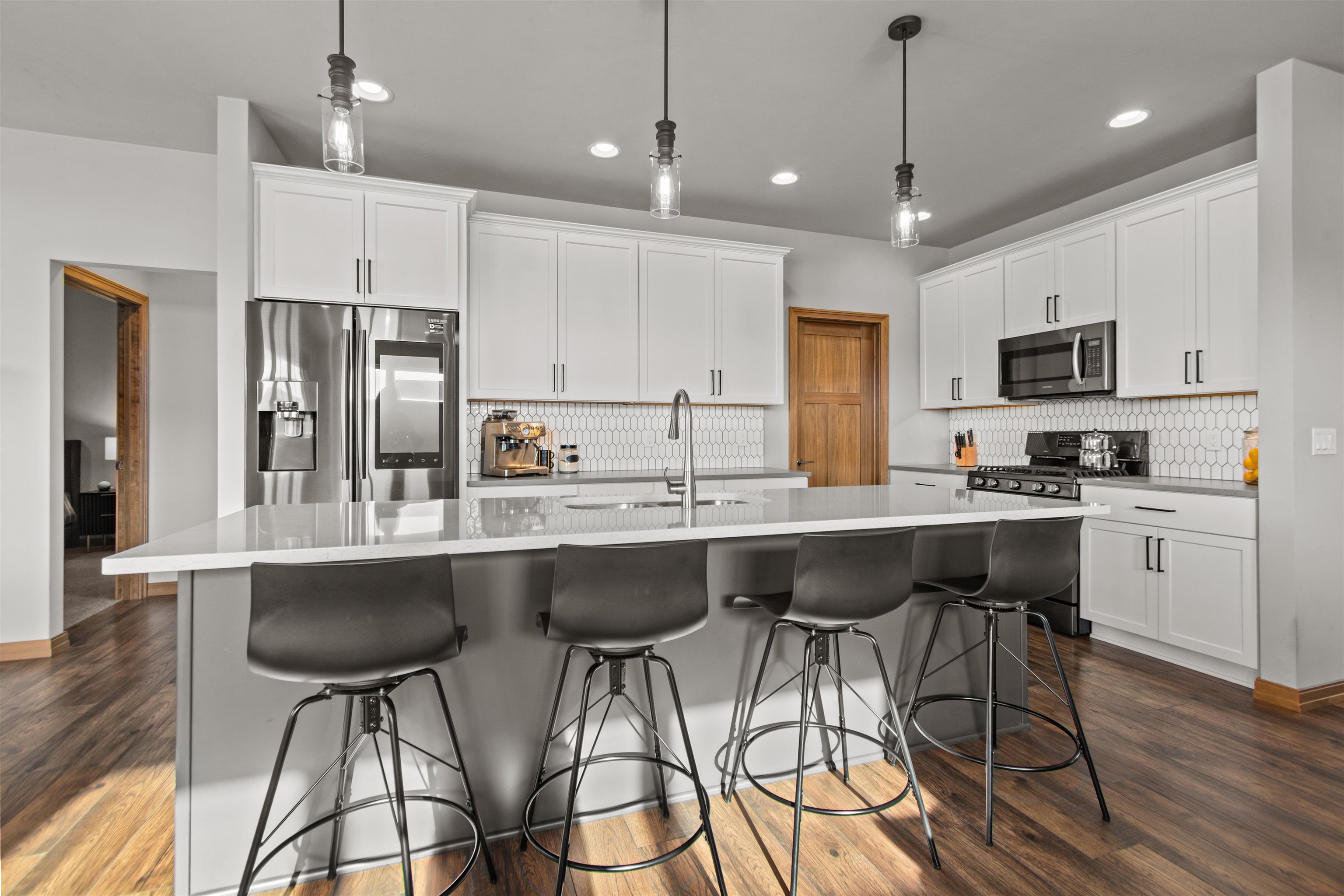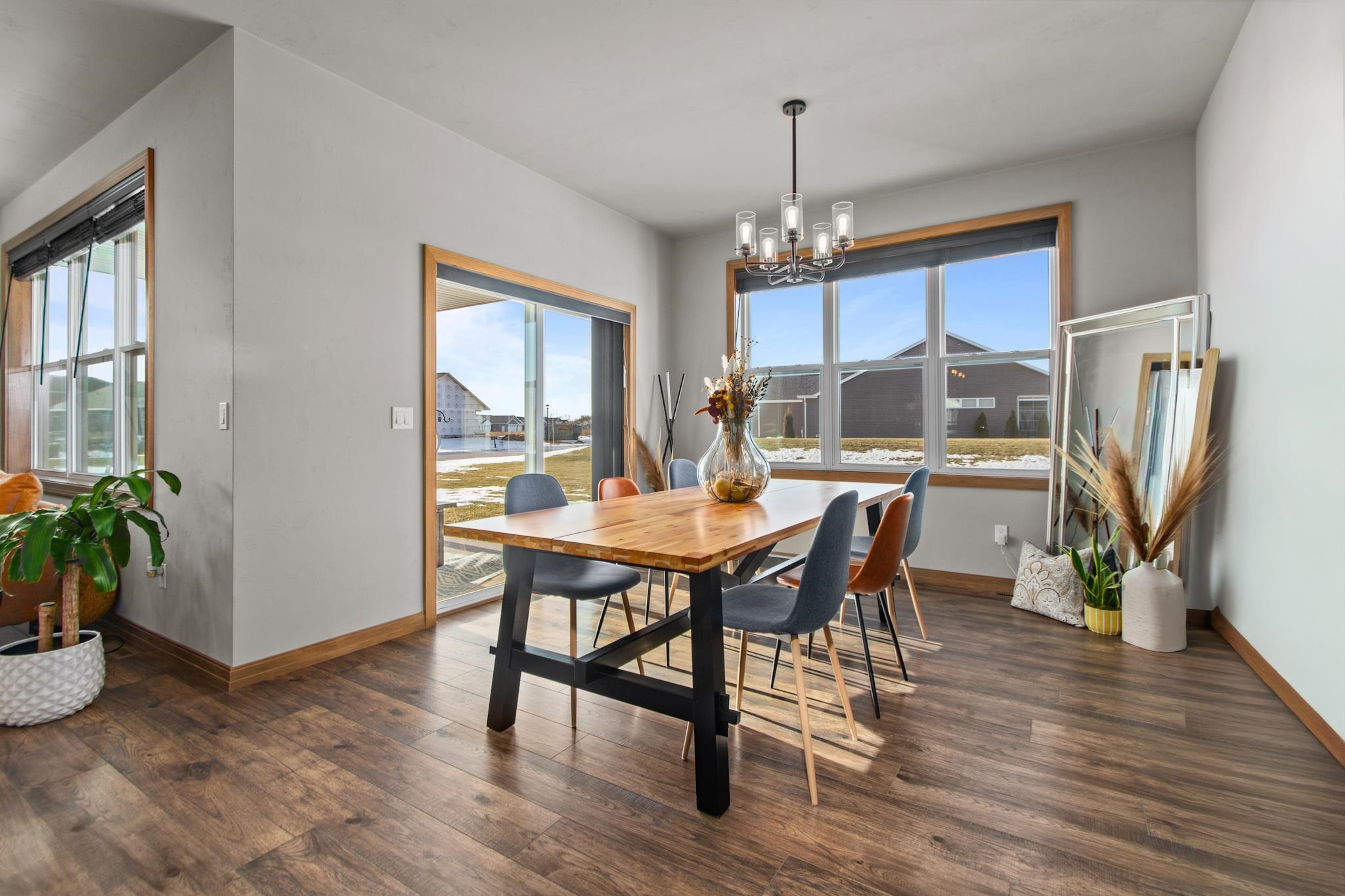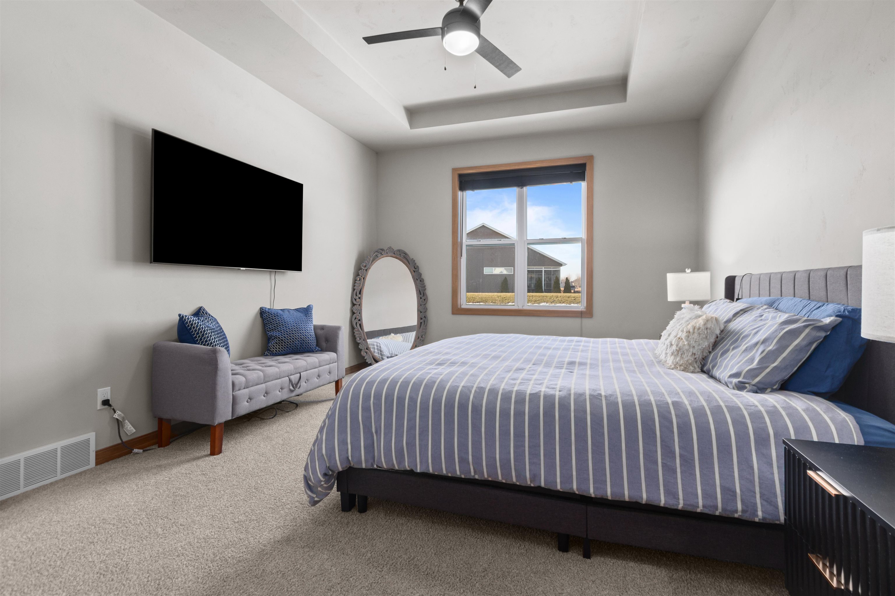 Step into easy living in this nearly new, pristine Open-Concept Ranch! The stylish Kitchen features top-notch Appliances, large Island w/seating & Walk-In Pantry, flowing into the sunny Great Rm & Dining Area—ideal for everyday living & entertaining. Patio doors open to a relaxing Covered Porch overlooking a 1/3-acre lot. A generously-sized Primary Bdrm & Bath provide a Private Retreat w/a luxurious Walk-In Tile Shower. An expansive LL is perfect for guests or multi-generational living, offering an inviting Rec Space, Kitchenette, 3rd full Bath, Egress Window & versatile Flex Rm-ideal as a possible In-Law Suite! Enjoy a convenient location near Apple Creek Trail, Vosters & Lundgren Parks, Schools & quick Hwy Access to the Valley or Green Bay. RELAX!!...SNOW & LAWN CARE PROVIDED thru HOA.