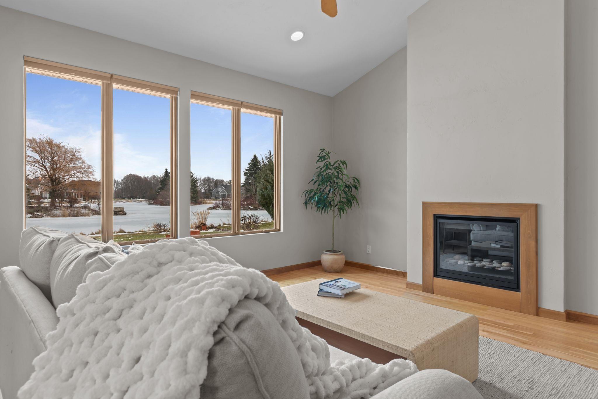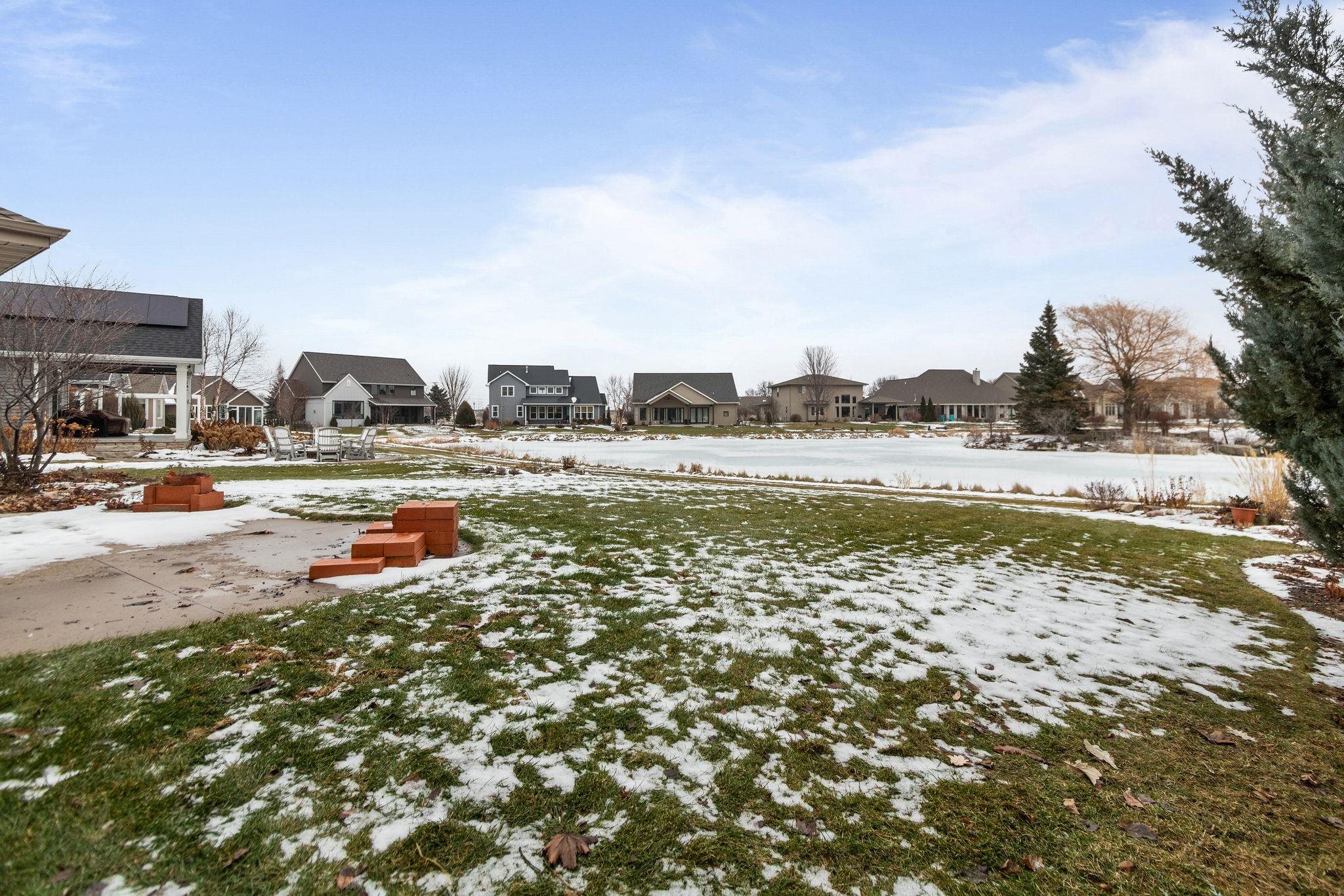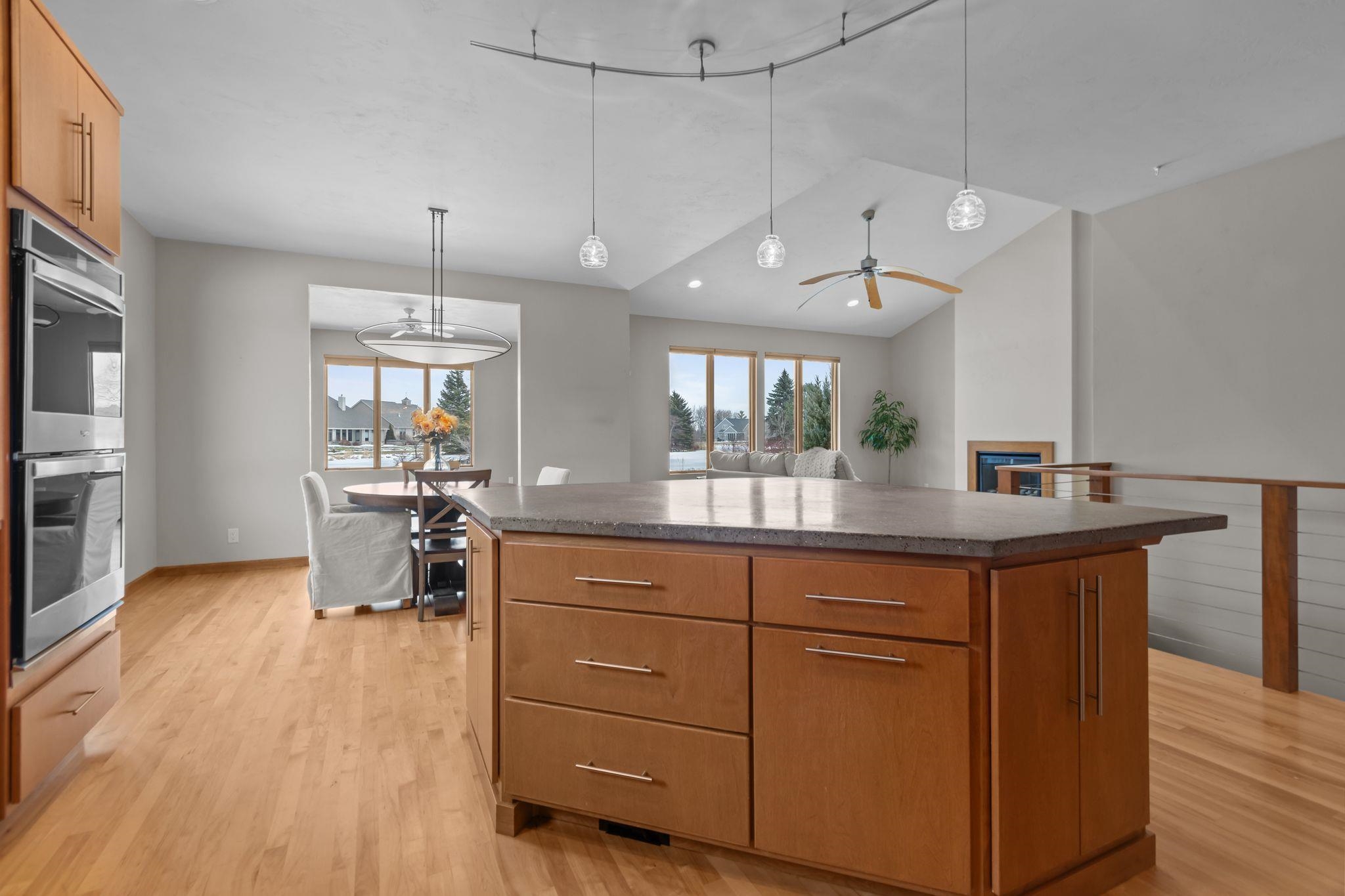 Elegance, style and quality exemplified. Griffin Builders built - Executive zero entry ranch style home located on the desirable Canvasback Circle overlooking the pond with fountains and nightly illuminated islands. Open concept design with hardwood floors. Chefs delight kitchen with oversized center island with stone countertop, Wolf range, Granite counters, tile backsplash & stainless steel appliances. Dreamy sun room off the dining space with morning sun exposure & views no matter the season. Living room with soaring high ceilings & gas fireplace. 1st floor primary suite with walk in shower & closet. 1st floor is completed with another bedroom, office space, and laundry. Finished basement with rec room, full bathroom, 3rd bedroom & additional space to finish or storage. LP Smart Siding.