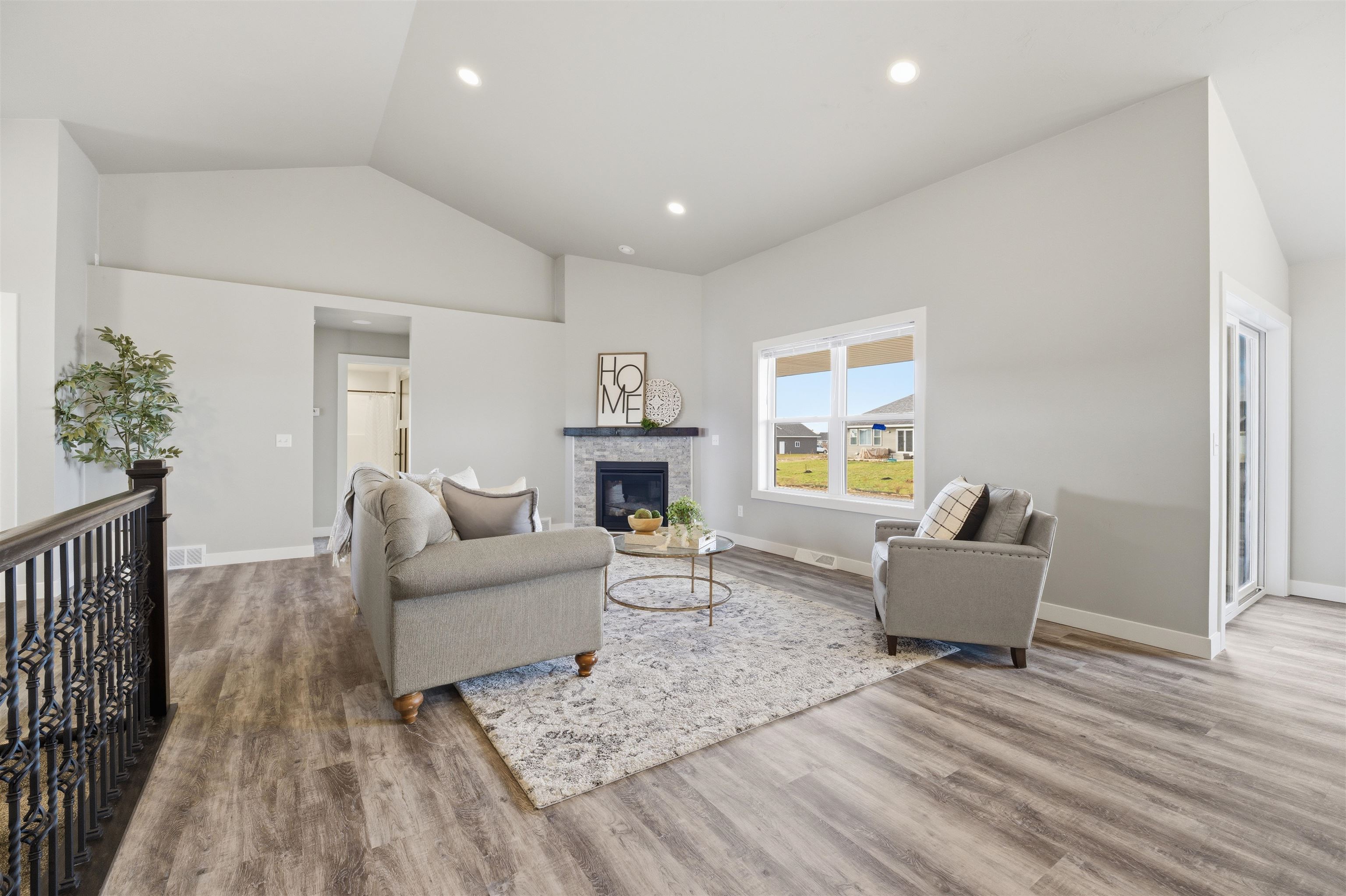 This new ranch features an abundance of space with a finished basement! Kitchen features SS appliances, white cabinets, WIP, granite counters throughout & tile backsplash. Primary BR off dining area with HUGE WIC. En-suite includes tile shower and double vanities. Living room flanked with gas fireplace & open concept. Main floor office is a huge bonus. LL boasts finished family room, 4th BR & full BA! Above garage is walkup attic for more space. Buyer(s) are aware that any and all costs related to future or current special assessment on the property in relation to Street, curb, gutter and/or final apron are at the cost of the Buyer(s). Seller to install temporary concrete apron with driveway for convenience to Buyer(s). Seller PAID sidewalks. 1 year builder warranty included.