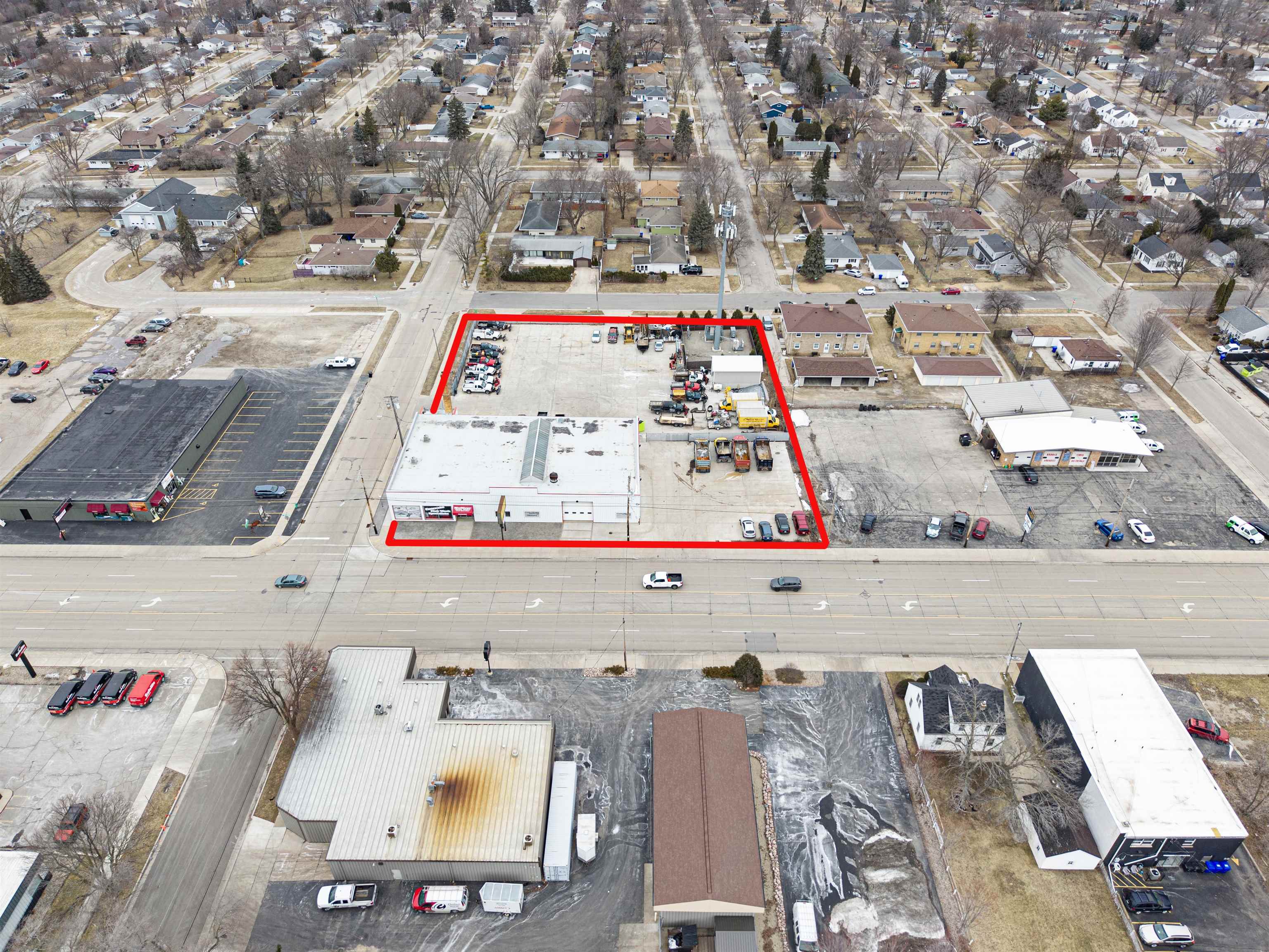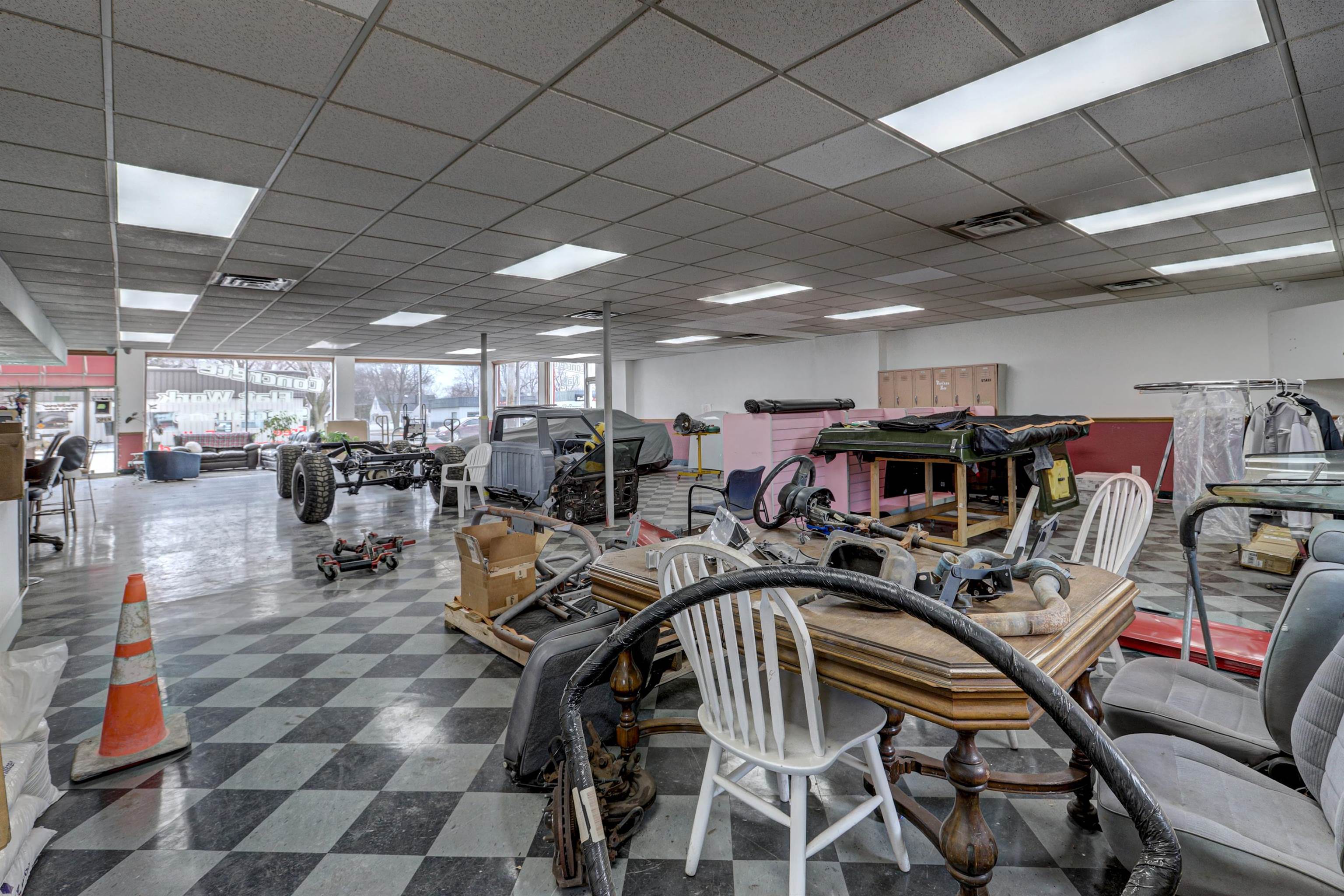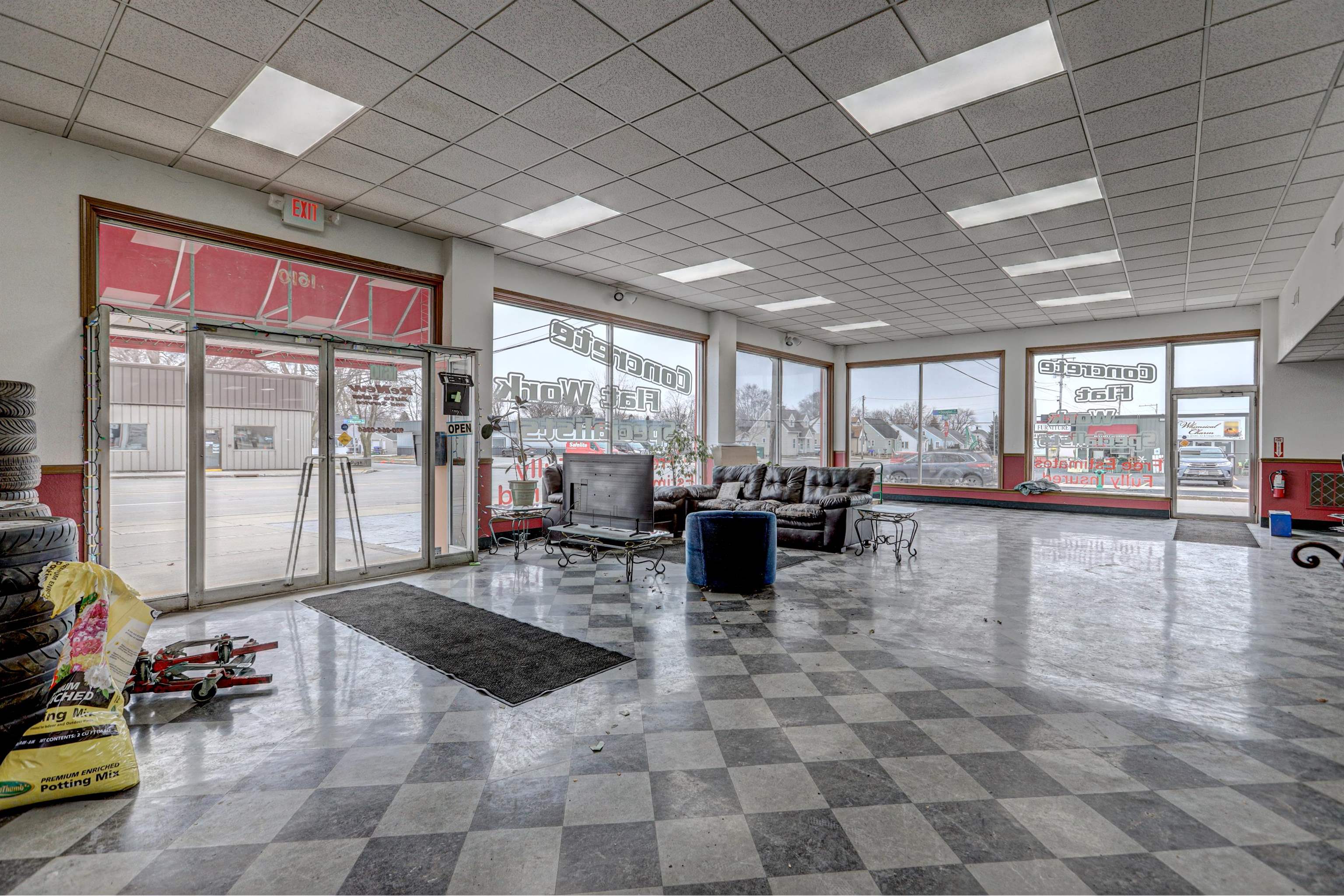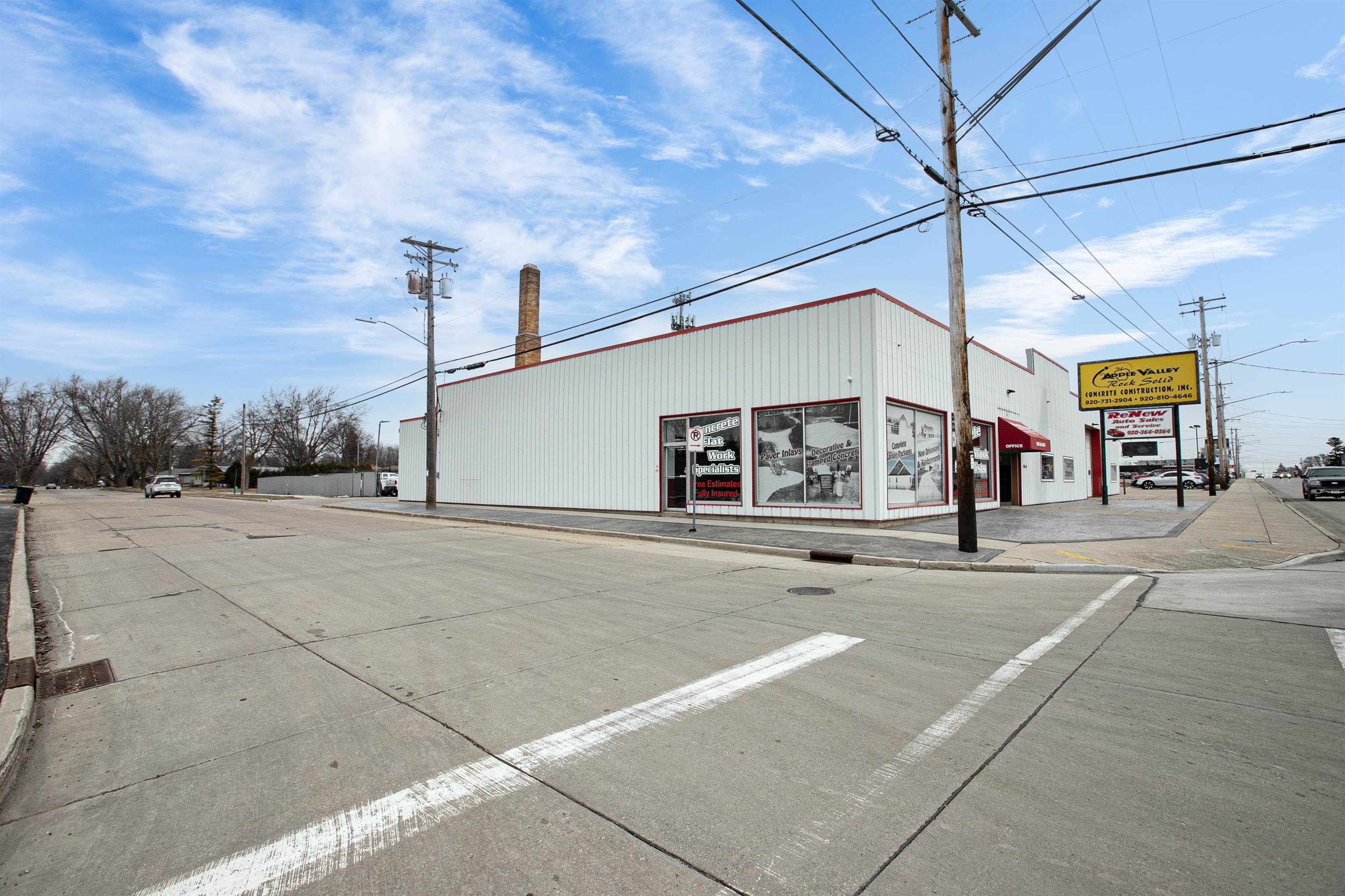 High traffic, very versatile building offering 9,900 sq ft of main floor space with shop area. Exterior- concrete and fenced enclosed area. Exterior lot as well as interior show room. 6-8 auto lift shop area. Located with frontage on three streets including N. Wisconsin Ave. in Appleton. Building also offers walk up storage area.The shop space is approximately 4,800 square feet and includes 14-foot overhead doors, 3-phase power, six car lifts, and a wash bay. A paint booth was previously in place. The fenced yard is secured with two powered gates. The salt shed was constructed at an estimated cost of $100,000