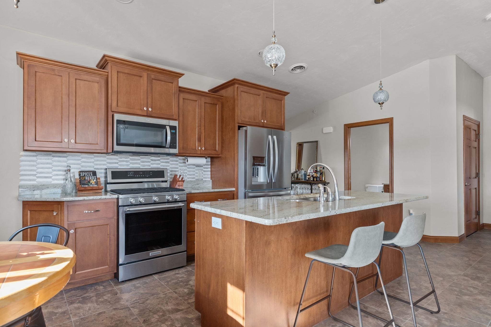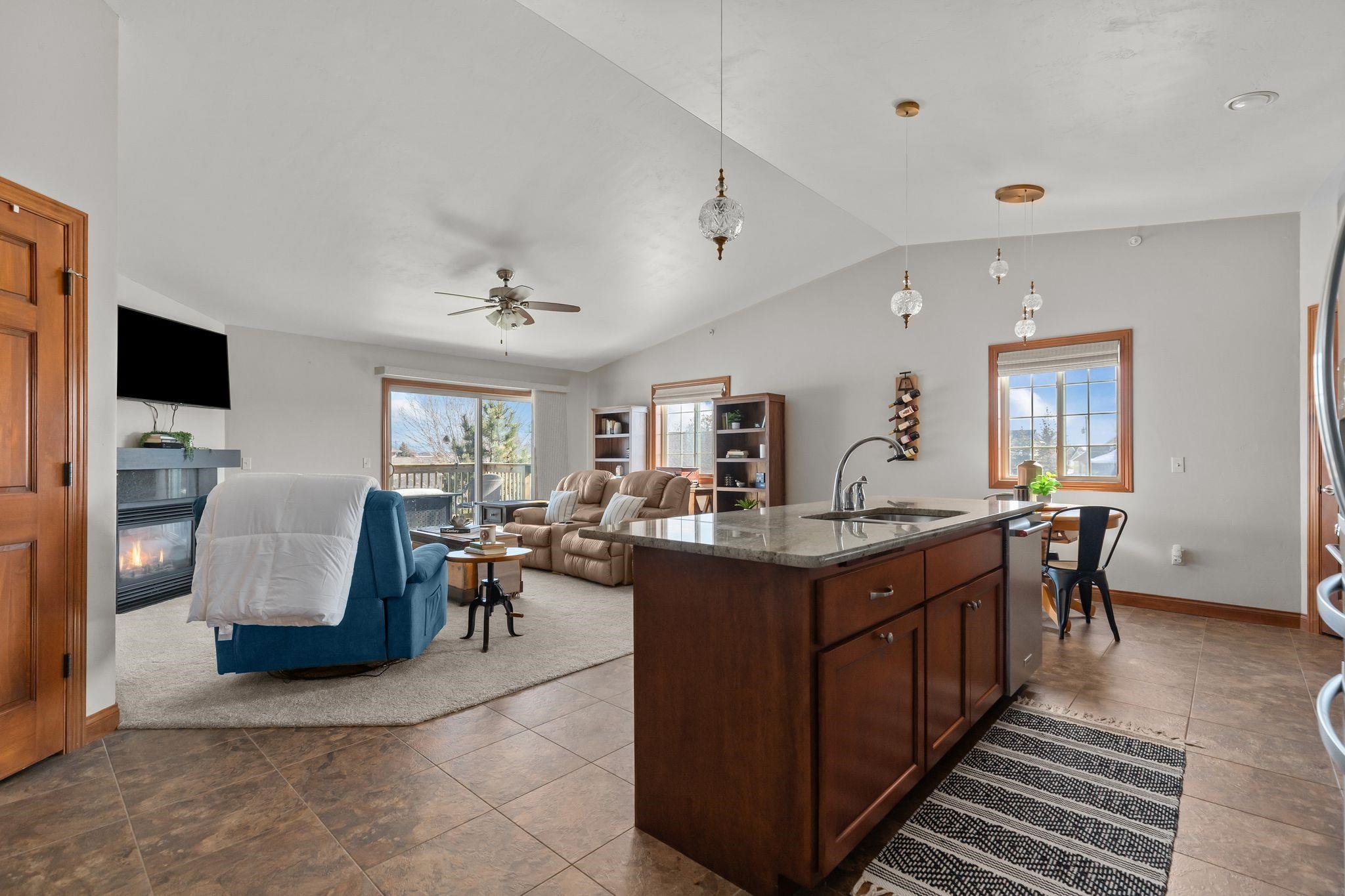 Easy living, elevated. This upscale 3 bed 2 bath condo offers a low-maintenance lifestyle with an HOA that takes care of exterior maintenance, snow removal, and yard work, so your time stays yours. Open concept main living area with vaulted ceilings throughout the home make this already spacious property feel extra elevated. A center island to gather at, and a pantry to keep you organized. Master quite, private laundry, two car attached private garage. Enjoy a balcony view of the community pond and water feature, plus a pedestrian/bike trail right out front that stretches miles. Close to major highways and city amenities, it's the perfect "lock-and-leave" home base for people who like to stay active, travel, and come home to calm.