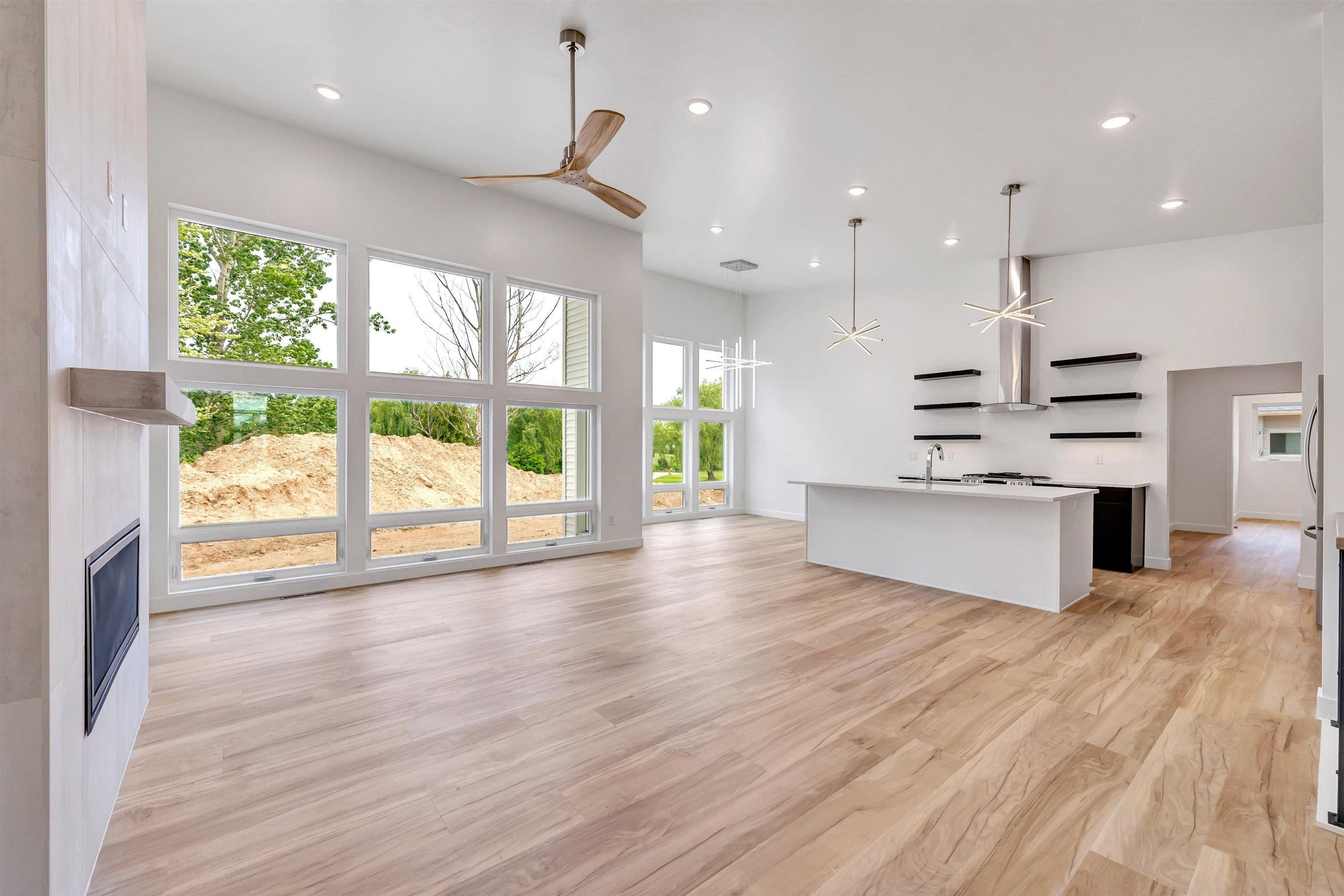Break free from the ordinary in this stunning Contemporary Modern home in West De Pere’s Highland Ridge. Bold rooflines, warm wood accents, and soaring vaulted ceilings set this home apart. Oversized windows flood the open-concept living space with light, centered around a striking floor-to-ceiling fireplace. The chef’s kitchen boasts light and dark cabinetry, quartz island, and sleek finishes. The primary suite offers a walk-in closet and spa-like bath with dual shower heads. Enjoy a private office, 3.5-stall garage, and a partially covered deck backing to woods. A unique blend of style, comfort, and design. Driveway will be put and the yard will be rough graded prior closing. Some photos are virtually staged.