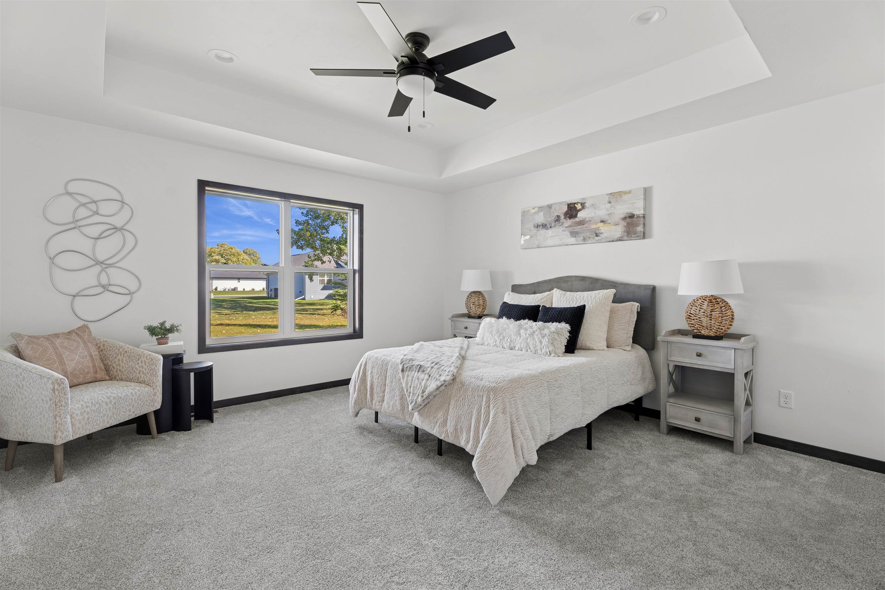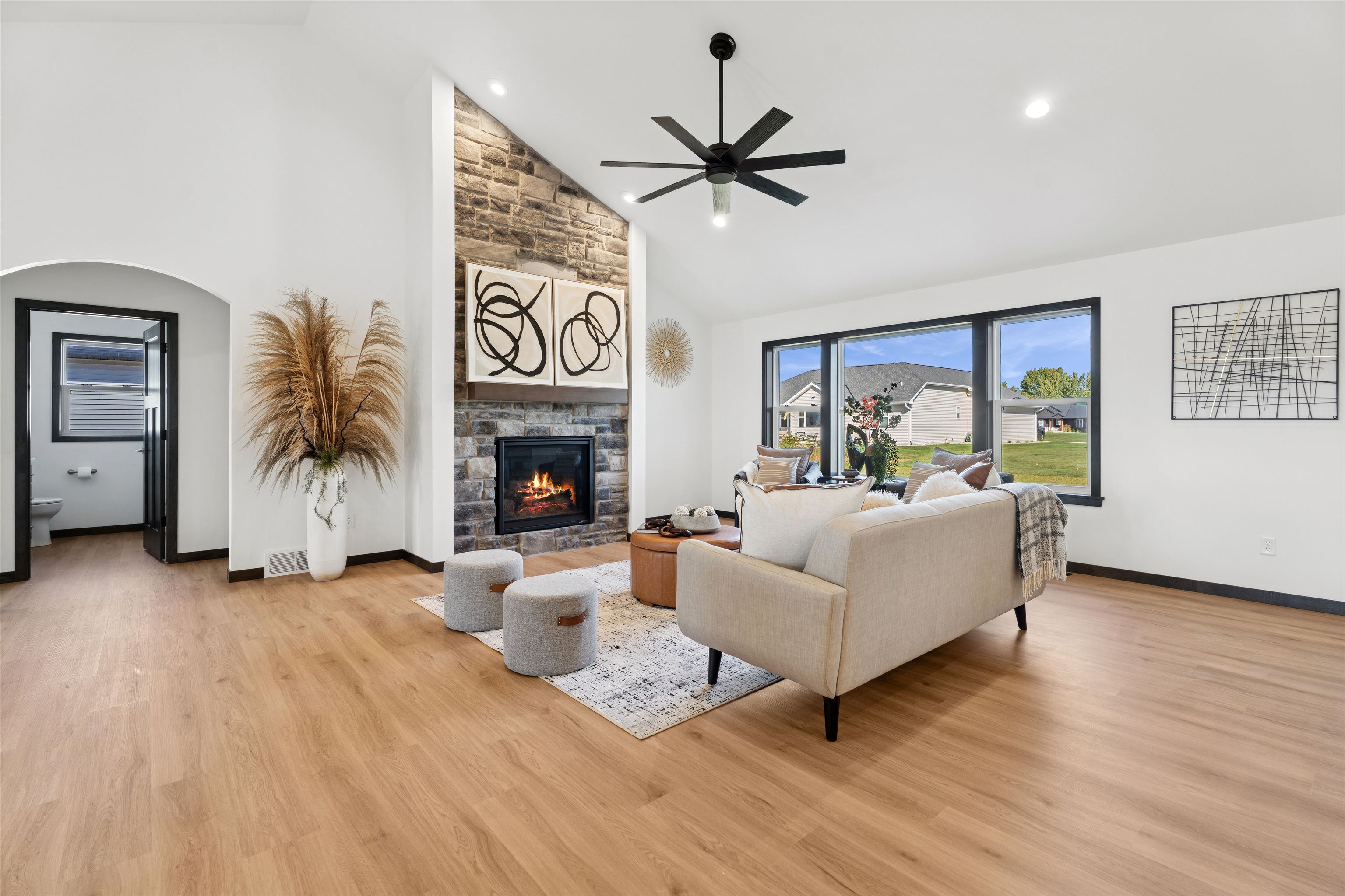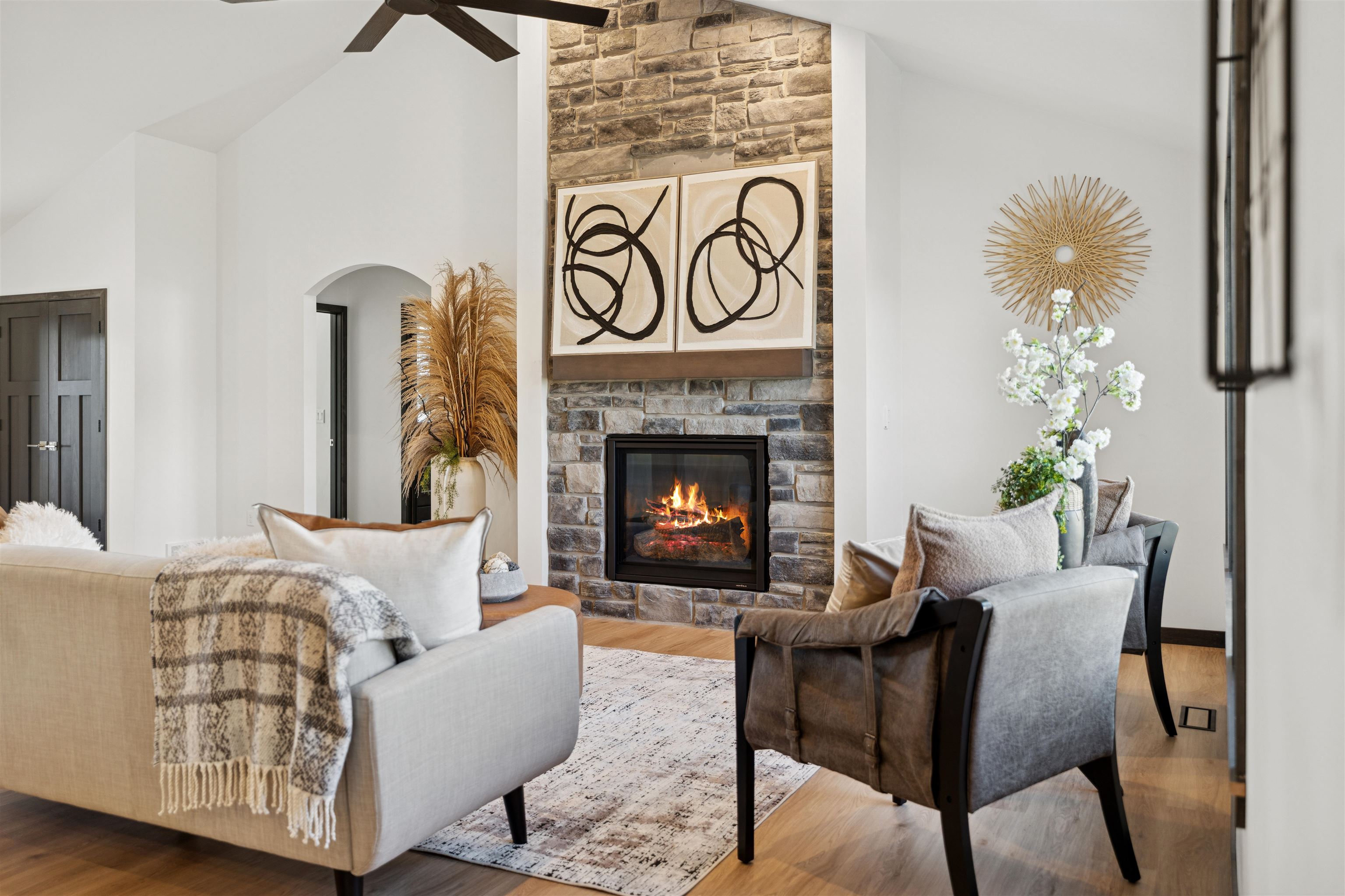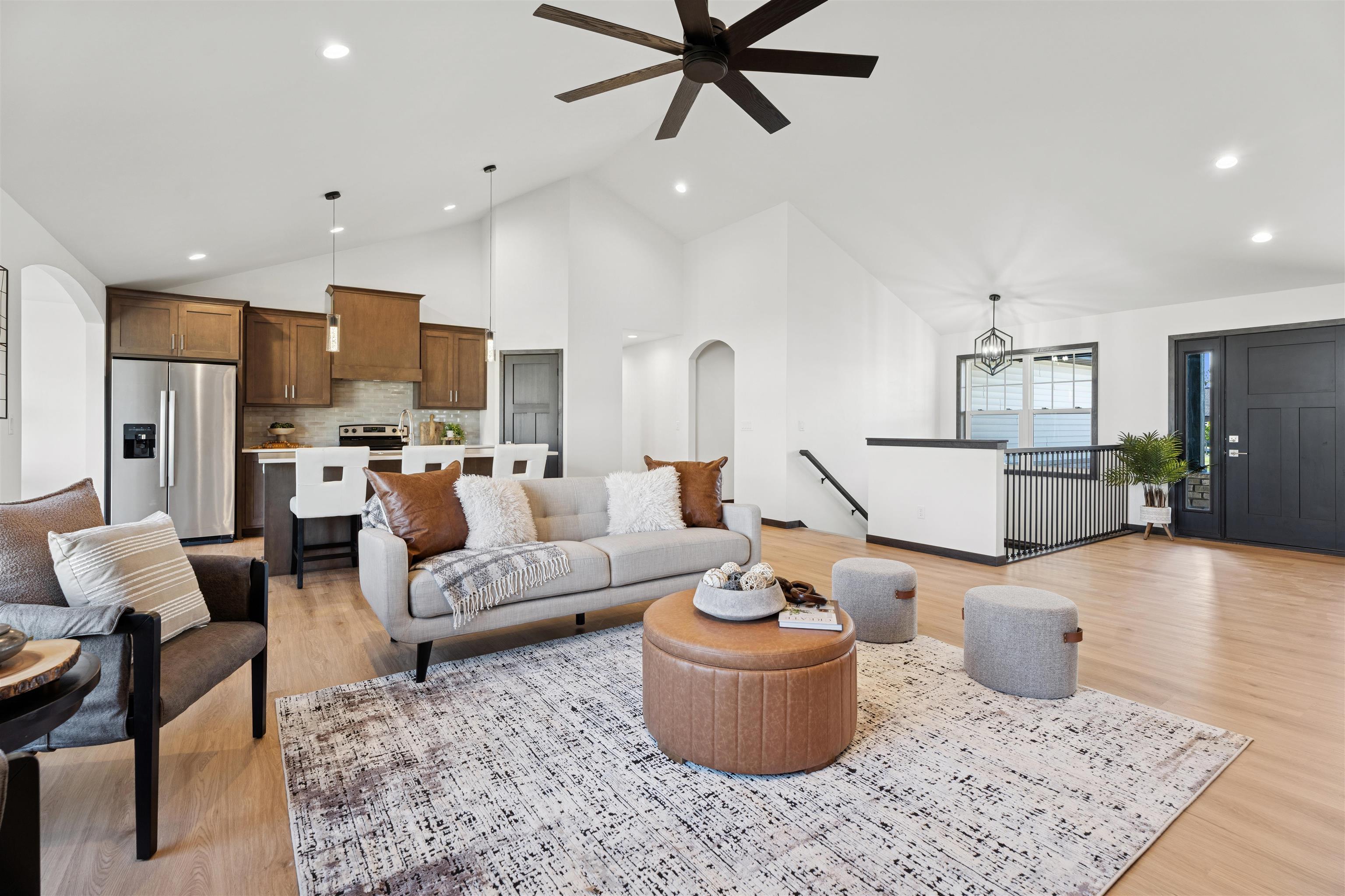 Step into over 2,000 sq ft of beautifully designed living space in this stunning 3 bdrm, 2.5-bath split bdrm ranch. From the inviting stone accents & covered front porch to the spacious, light-filled interior, every detail has been thoughtfully crafted. The open-concept floor plan is ideal for entertaining or relaxing & features: GR w/soaring ceiling & striking FP, kitchen boats tall cabinetry, SS appliances, Quartz counters, center island, tile backsplash & walk-in pantry. Bright DA w/glass door to the patio perfect for indoor-outdoor living, luxurious primary suite w/tray ceiling, spa-like bath w/quartz dual vanity, HUGE tile shower & walk-in closet, FF laundry + ½ bath, lockers, Quartz counters through-out, finished garage w/sink & stub for heater, LL w/2 egress windows & stub for bath.