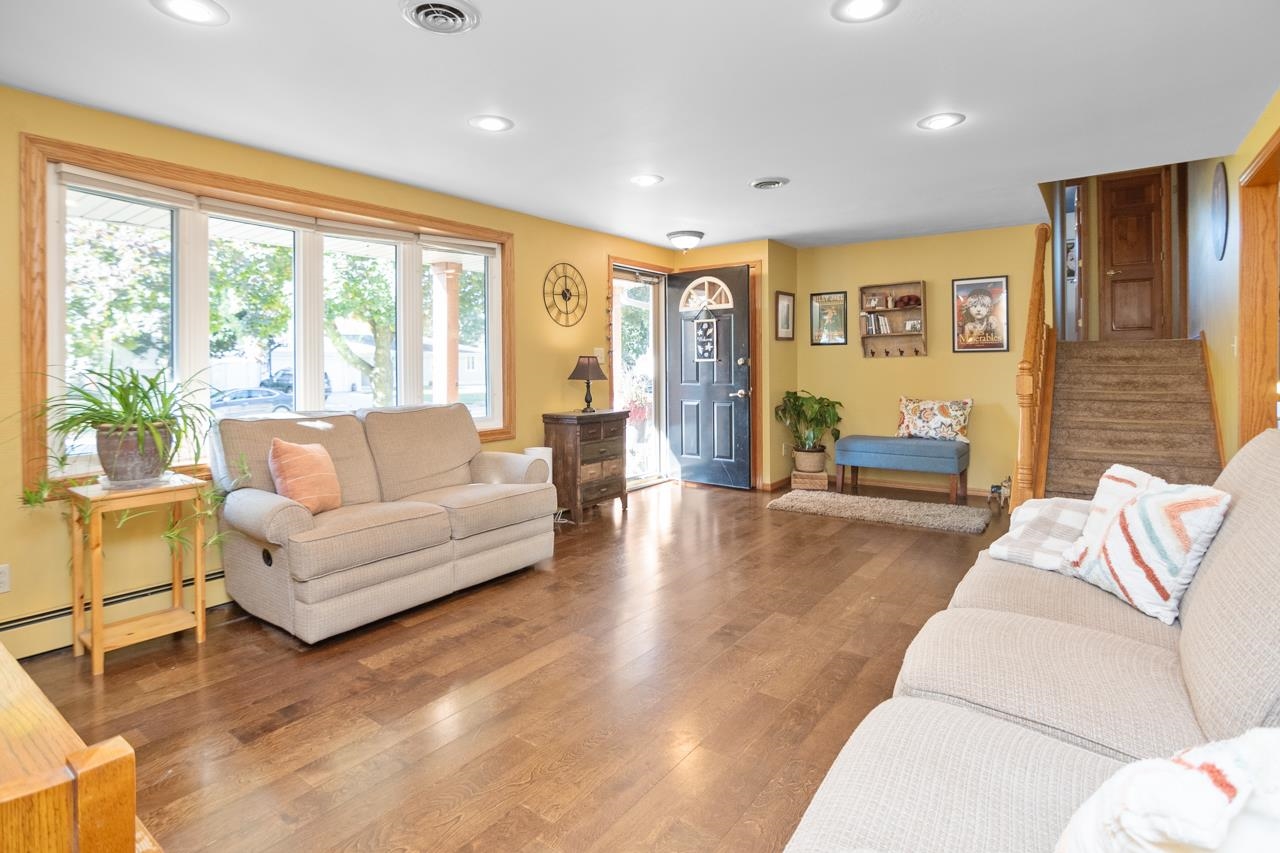 Beautiful home conveniently located within walking distance to Titletown District, Lambeau Field and so much more! Features include: 4 bedrooms, 2 full baths, large living room off the kitchen with new flooring plus a cozy family room with a wood burning fireplace, large primary bedroom with access to the updated bathroom, finished lower level with a rec room and very nice laundry room with cabinets, sink, & folding area. Step out into your backyard from the patio door off the dining room, enjoy sitting on your patio overlooking the nicely landscaped fenced backyard. Attached 2-car garage. New roof in 2020 & water heater in 2025.