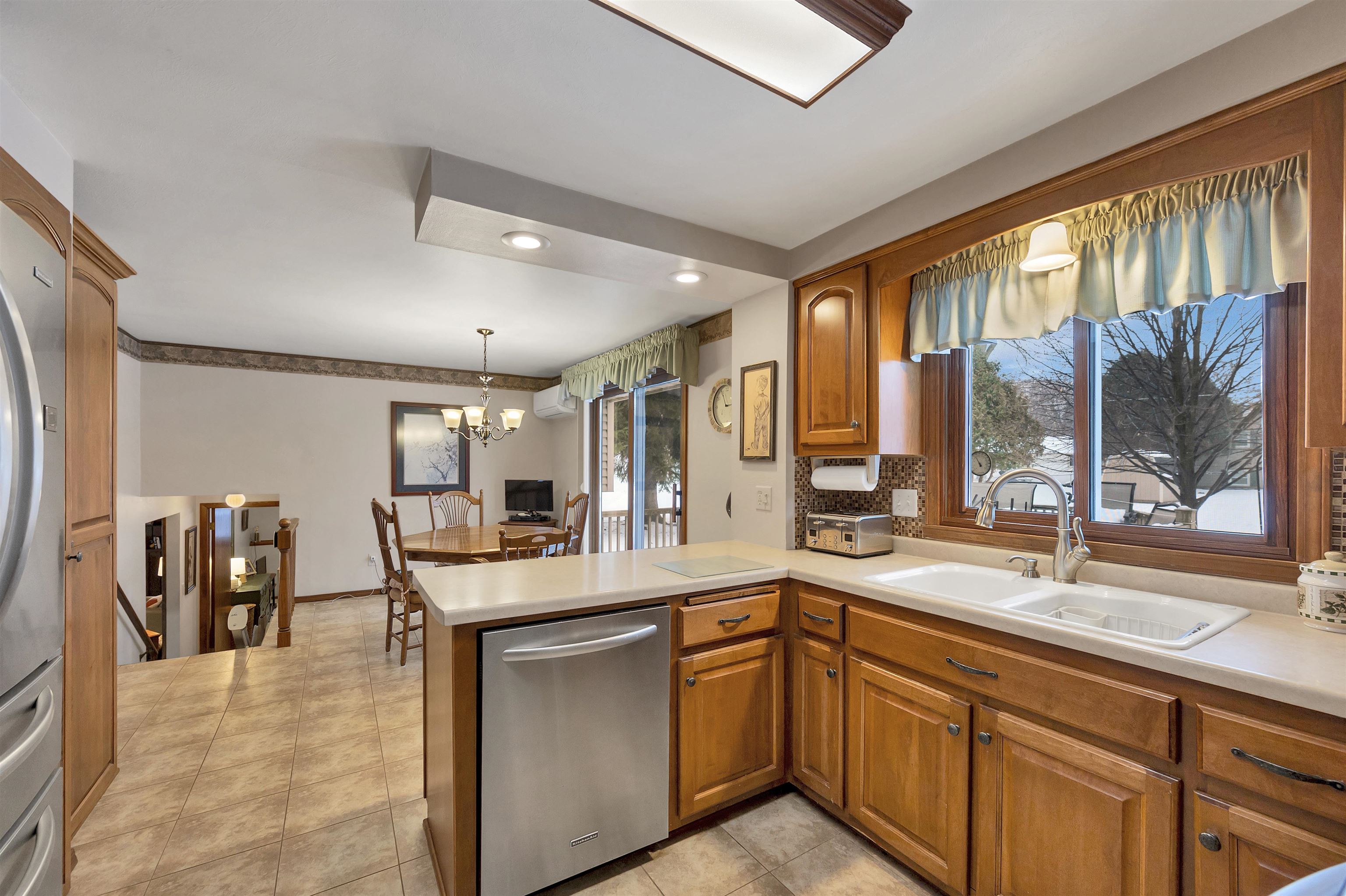 Check out this four-bedroom home, owned by just one previous owner! Conveniently located near Lambeau Field and shopping areas. The versatile tri-level layout offers ideal spaces for entertaining, gatherings, and everyday living, with multiple flexible rooms to suit your lifestyle. The main floor features the kitchen, dining area, and living room, while the upper level offers three bedrooms and a full bathroom with a walk-in shower. The lower levels feature a full bathroom, additional bedroom, spacious family room, rec room with a wet bar, perfect for hosting or relaxing. Step outside to enjoy the deck and patio, ideal for summer evenings and outdoor entertaining.