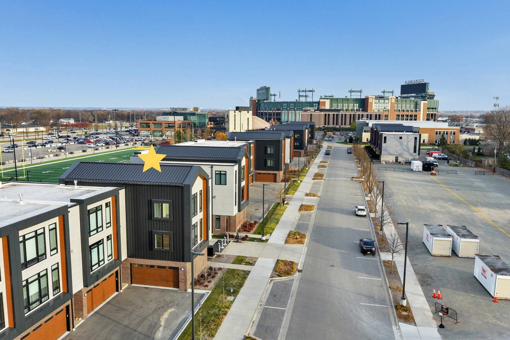 This gem of Titletown is now available & better than EVER! Prime views of 1265, Lambeau Field, All Titletown events/main stage – VIP living all the way! When you are ready for some green & gold fun simply hit a button & open your sliding privacy fence & you are steps from Titletown field & grand stairs (complete with live music, firepits, Titletown Square, game courts & multiple playgrounds). Meticulous turn-key interior with incredible amenities, easy living w/front row seats to all of the action at 1265! Enjoy the good life, easy entertaining. Come take a look today! All buyers must supply letter of financial approval or cash funds prior to showing. Rental option available-see listing agent.