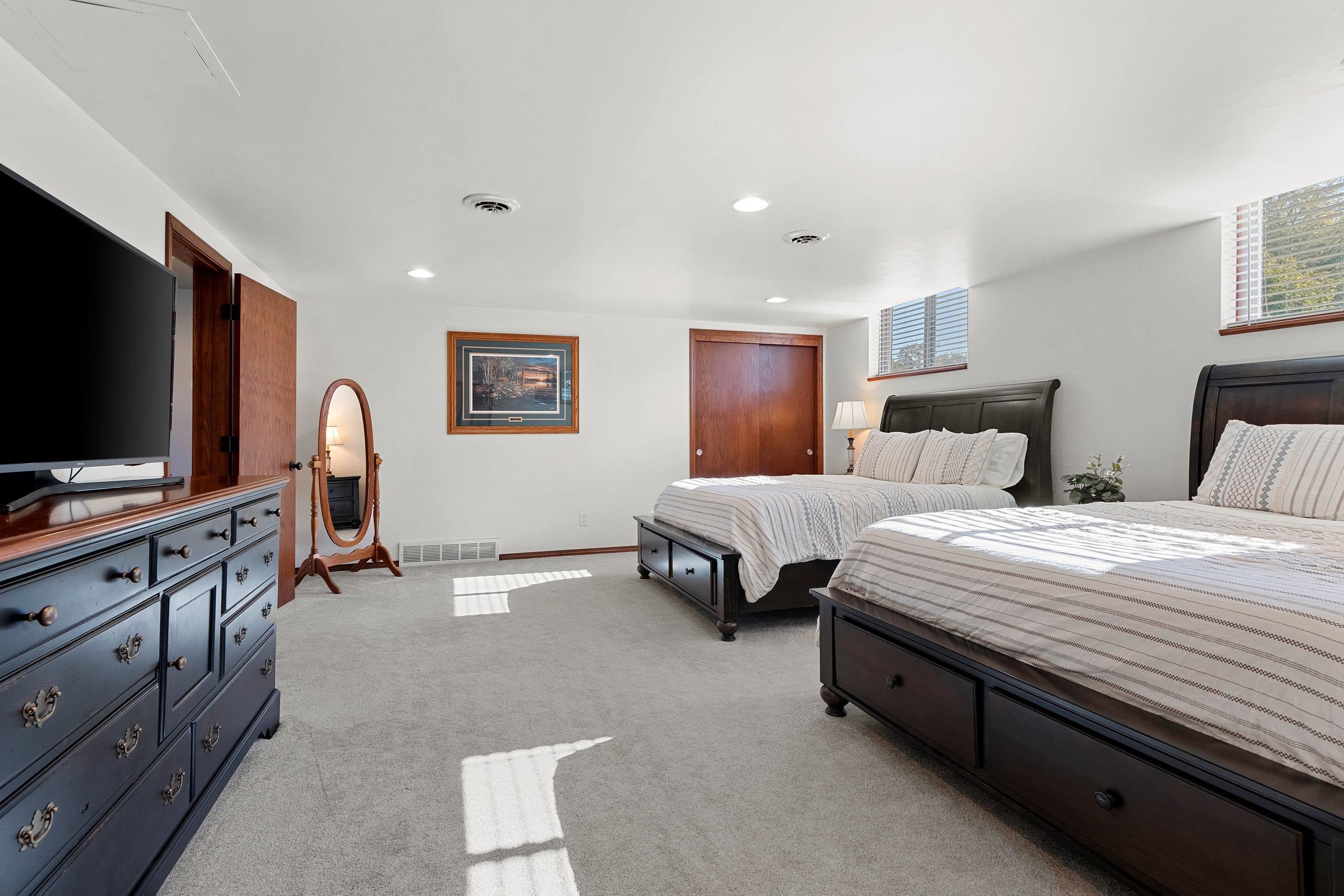 Pride in ownership really shows in this beautiful bi-level Ashwaubenon rental! 2 separate private entrances: Front Door & Through Garage. Upper: Large living room w/lots of natural light. Spacious galley kitchen, dining area w/breakfast bar, wine/coffee nook. Primary bed w/walk-in closet + 2 more beds, full bath, & laundry. Lower: HUGE living room w/semi-open concept kitchen/dining area. 2 enormous bedrooms, full bath & laundry room. All appliances included! Shared 3 Season room & backyard. Could put up wall to separate garage if desired + parking slab fits 6 cars easily. Landlord pays all utilities currently. Separate electric meters. 1 Boiler. 1 WH (Buyer would need to reapply for rental permits if they want to continue using as an AirB&B Booked through Dec. 8th. Furnishings negotiable)