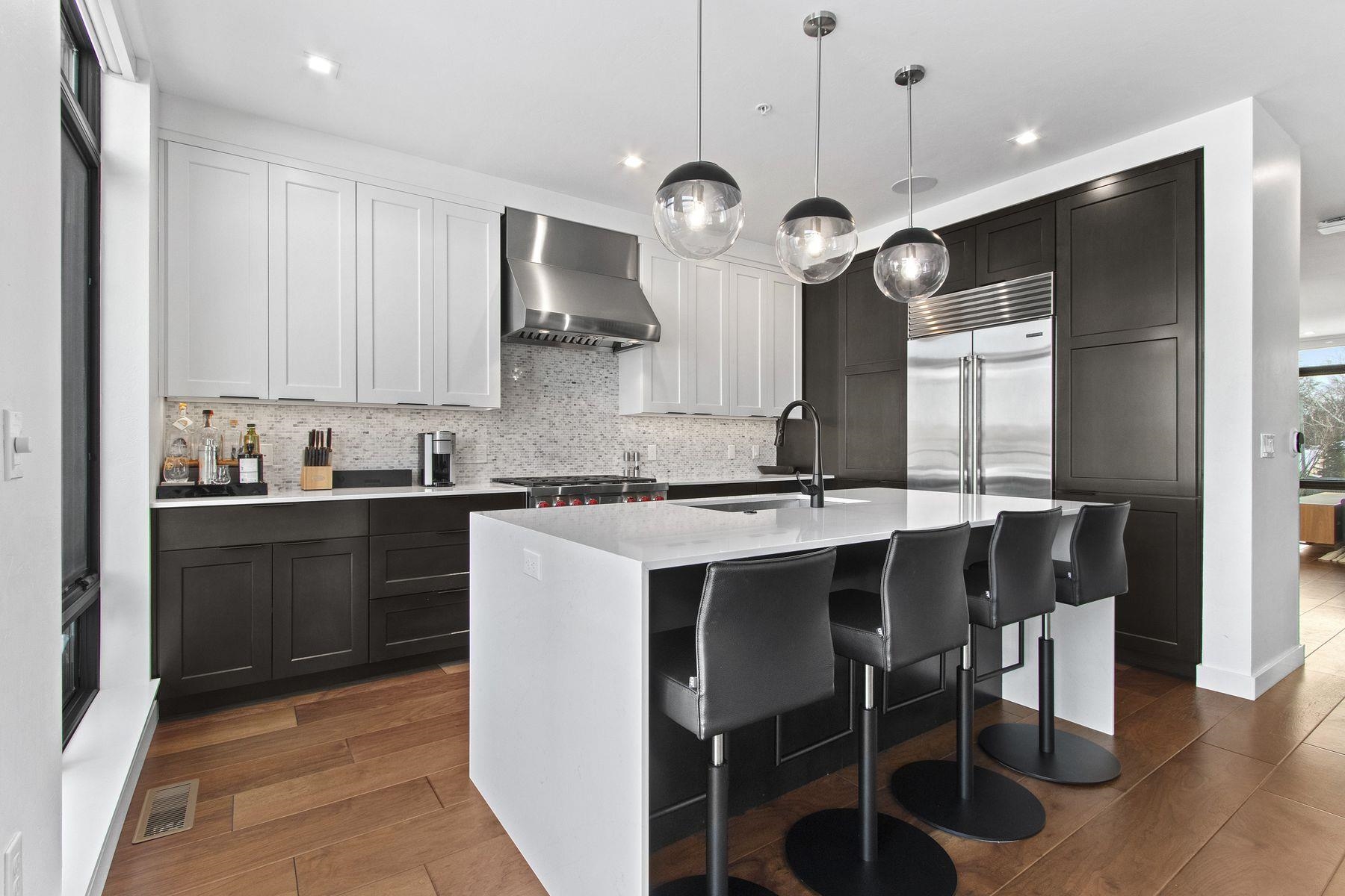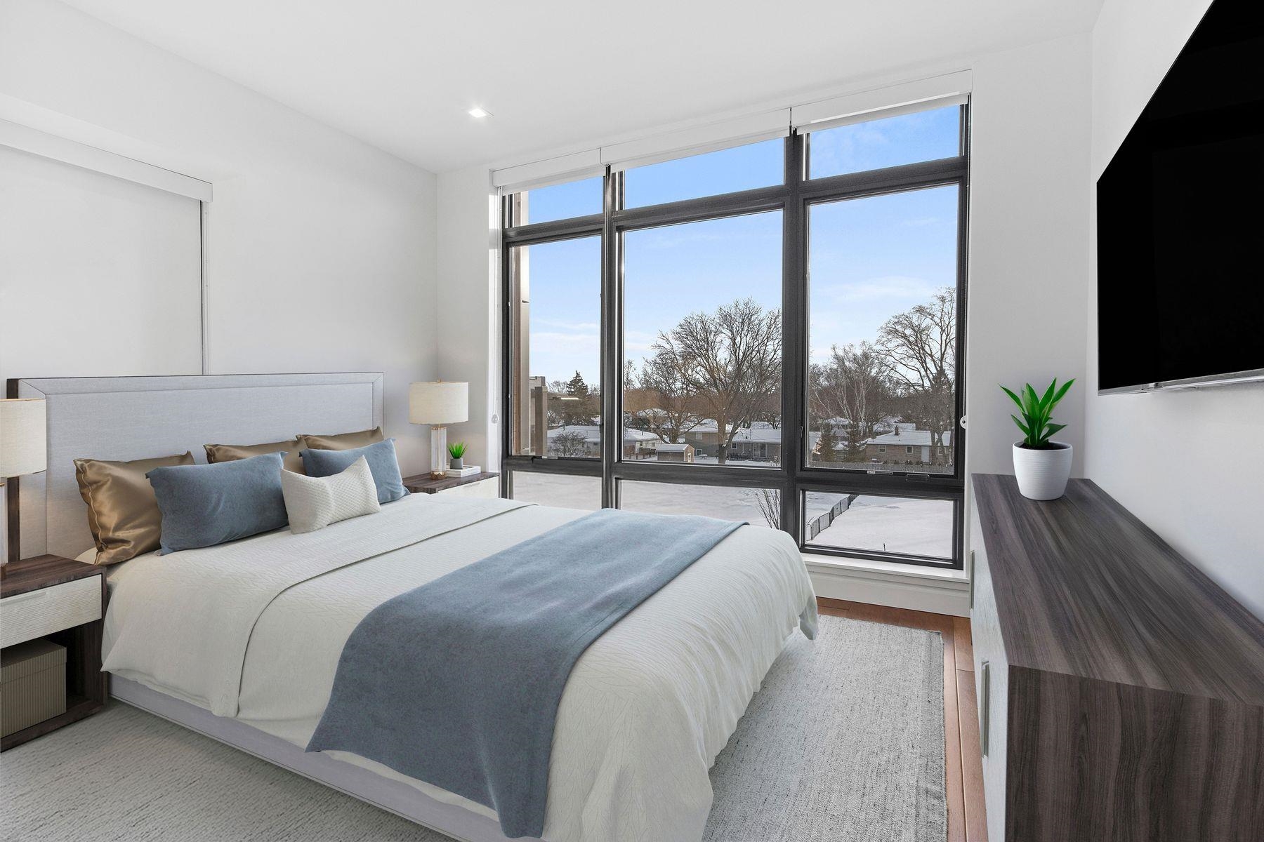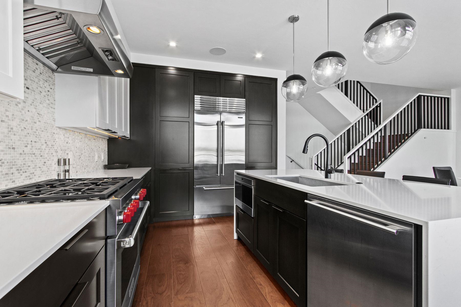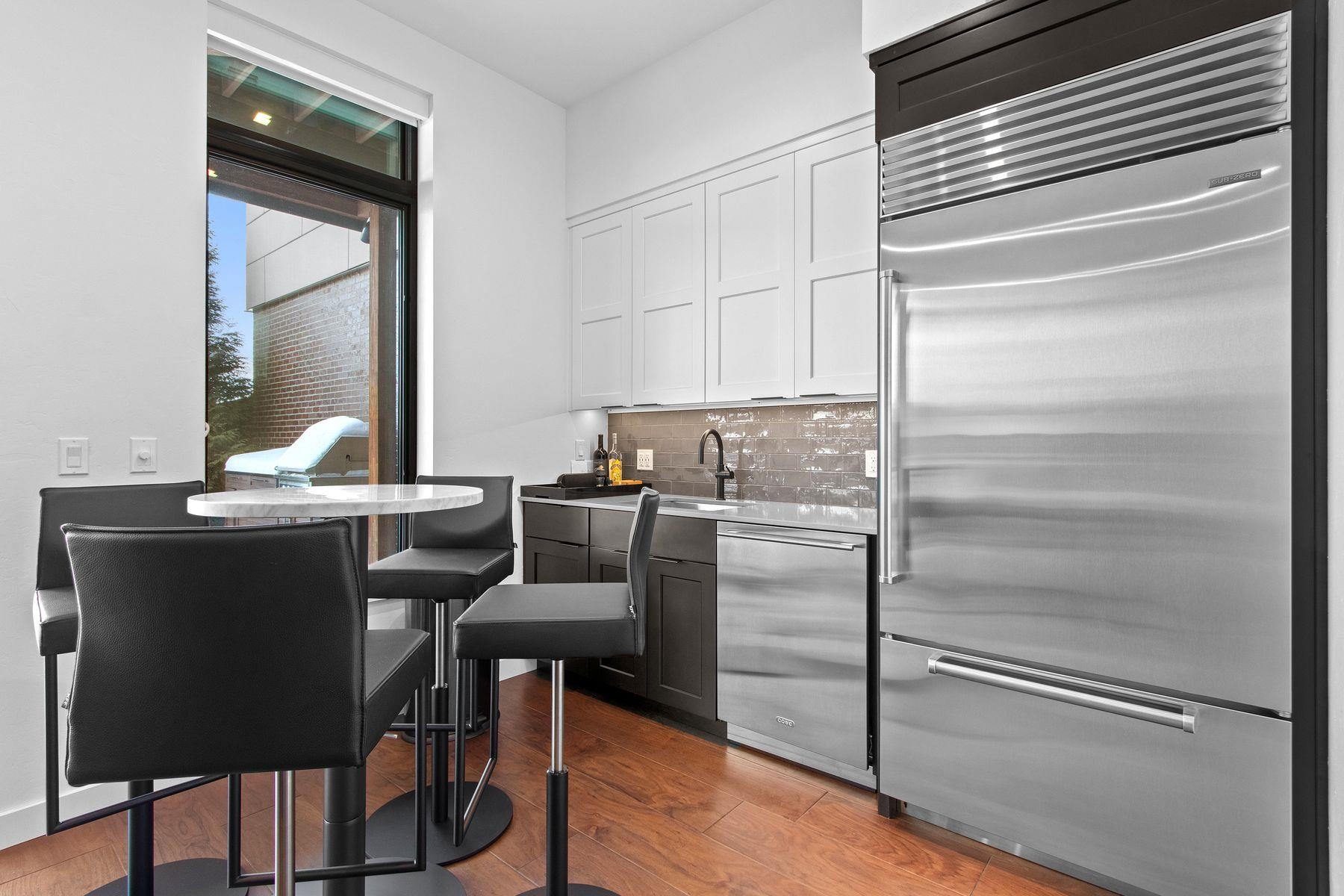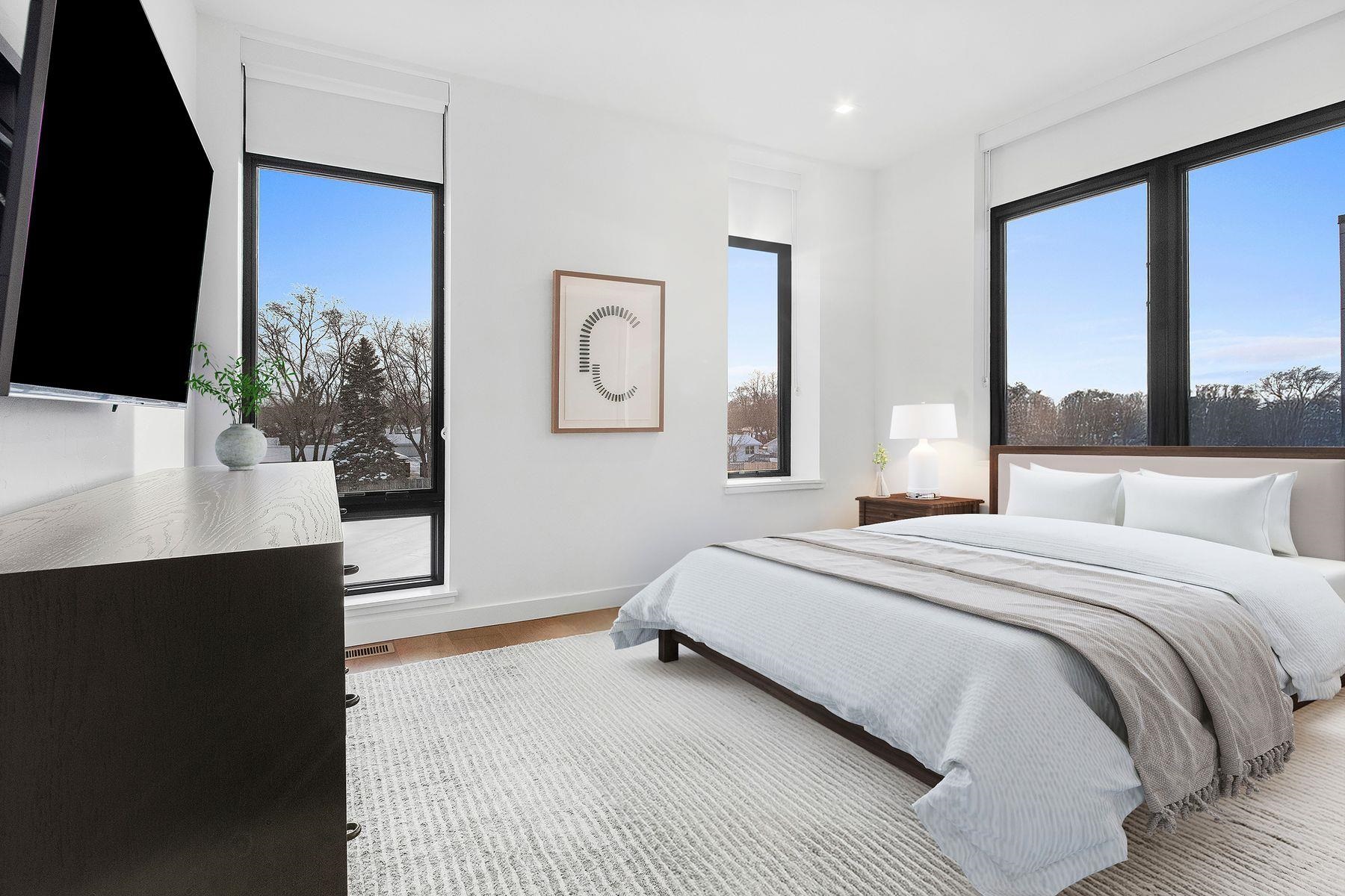 This premier Titletown townhome is a rare corner residence offering the largest private outdoor space, opening directly onto the Titletown field and just steps from Lambeau. Enjoy front-row access to Titletown's vibrant events unfolding right outside your door. Designed for both everyday living and game-day entertaining, this residence is filled with premium upgrades and custom details, including a den/office, Sub-Zero and Wolf appliances, custom millwork, an outdoor firepit, and a heated garage. Expansive floor-to-ceiling windows flood the interiors with natural light, while thoughtfully designed living spaces create a seamless flow. A special opportunity in this sold-out community. Virtual staging.