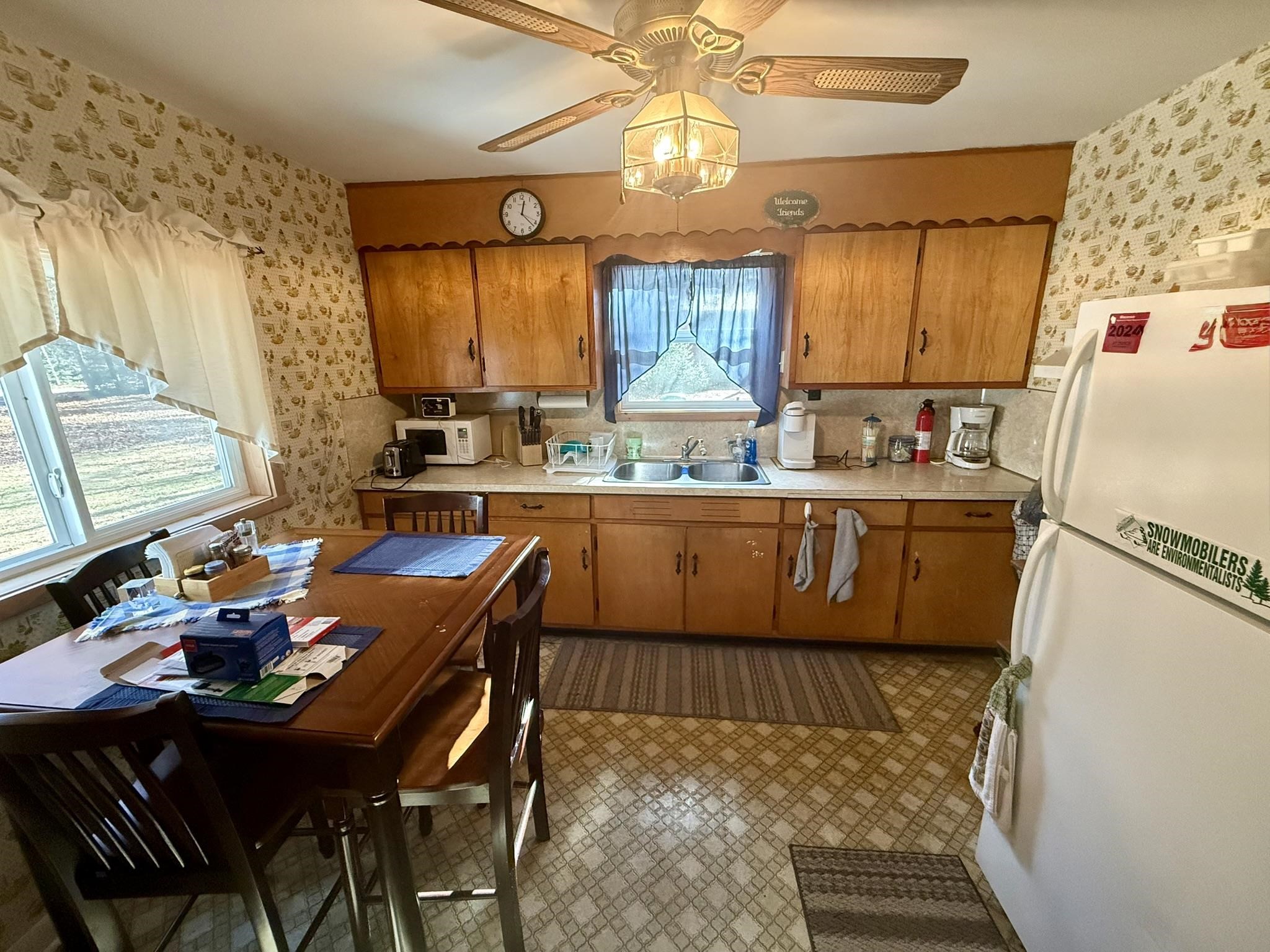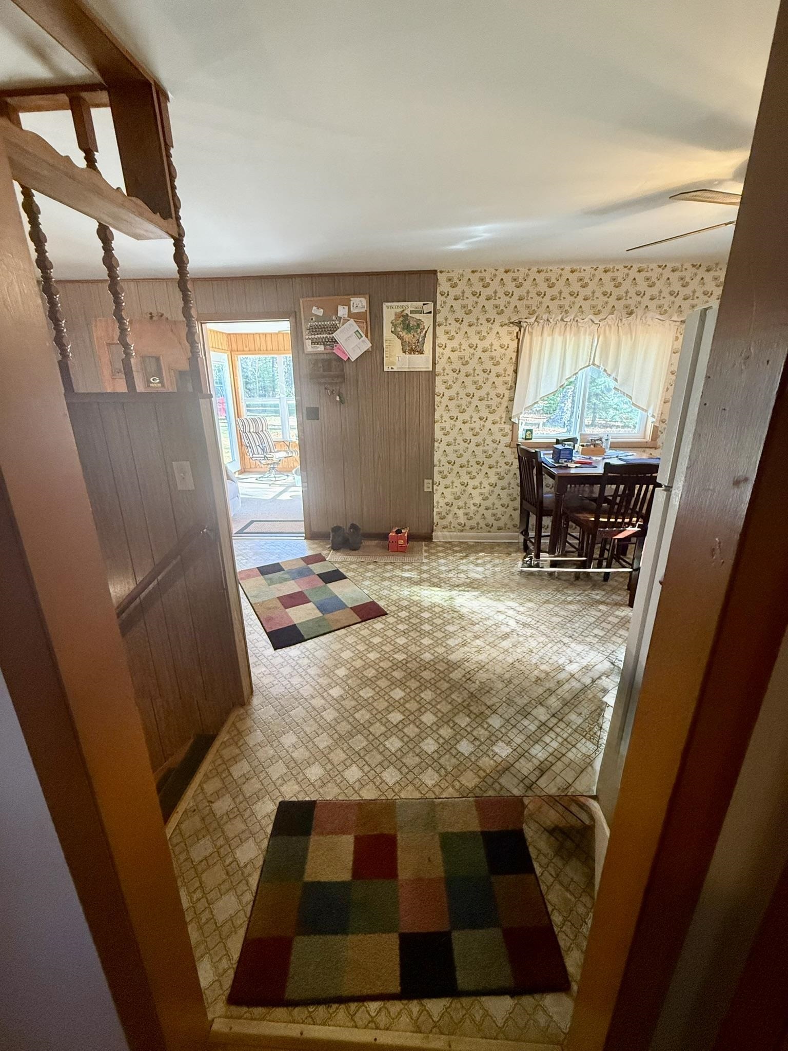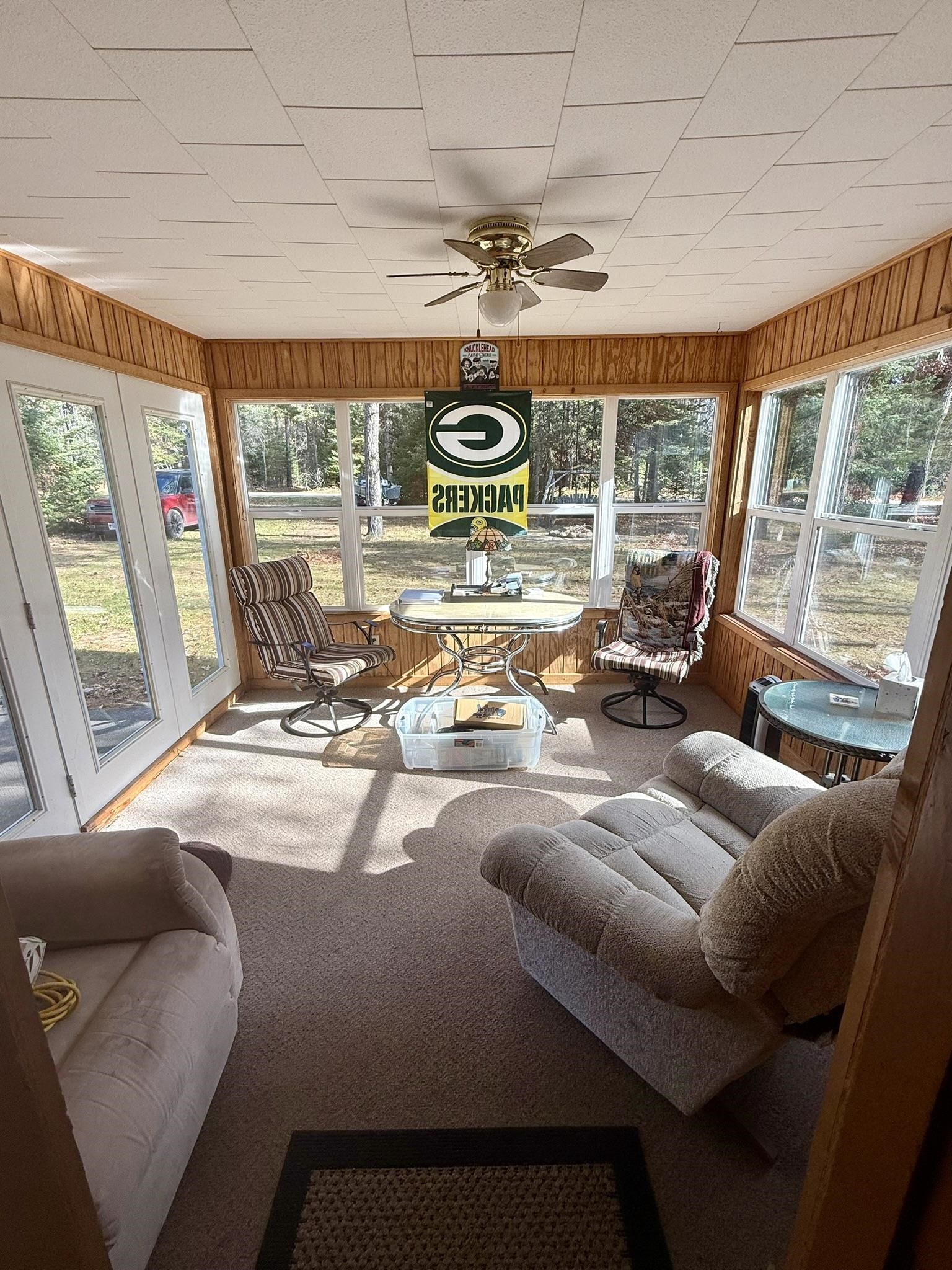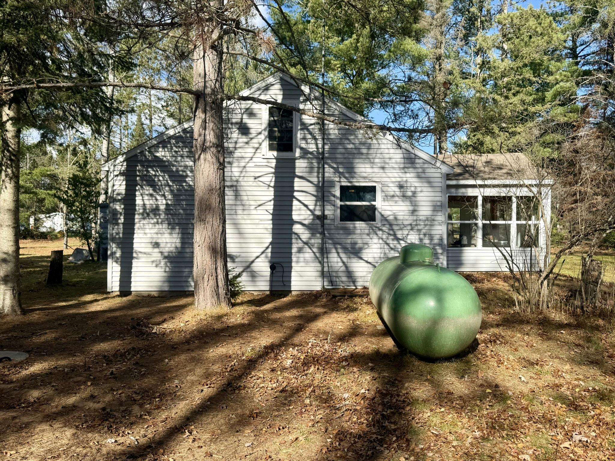 Northwoods cottage-vintage feel with purposeful updates. Two lots at .44 acres! This 2-bedroom 1bath home has the added bonus of a full (low ceiling) basement for extra storage, a 1.5-car garage, and an inviting 11x11 three-season porch (not included in sq/ftg) with newer windows overlooking the tree-lined yard. The updated primary bedroom showcases warm knotty pine finishes and pass-through access to the full bath. Original hardwood floors and quirky duck wallpaper in the kitchen showcase the nostalgic vibe. New furnace (2017), new septic drain field (2025), and new vinyl siding on the garage front. Outhouse in back (condition unknown). Enjoy as is or bring you vision to this vacation ready property.
