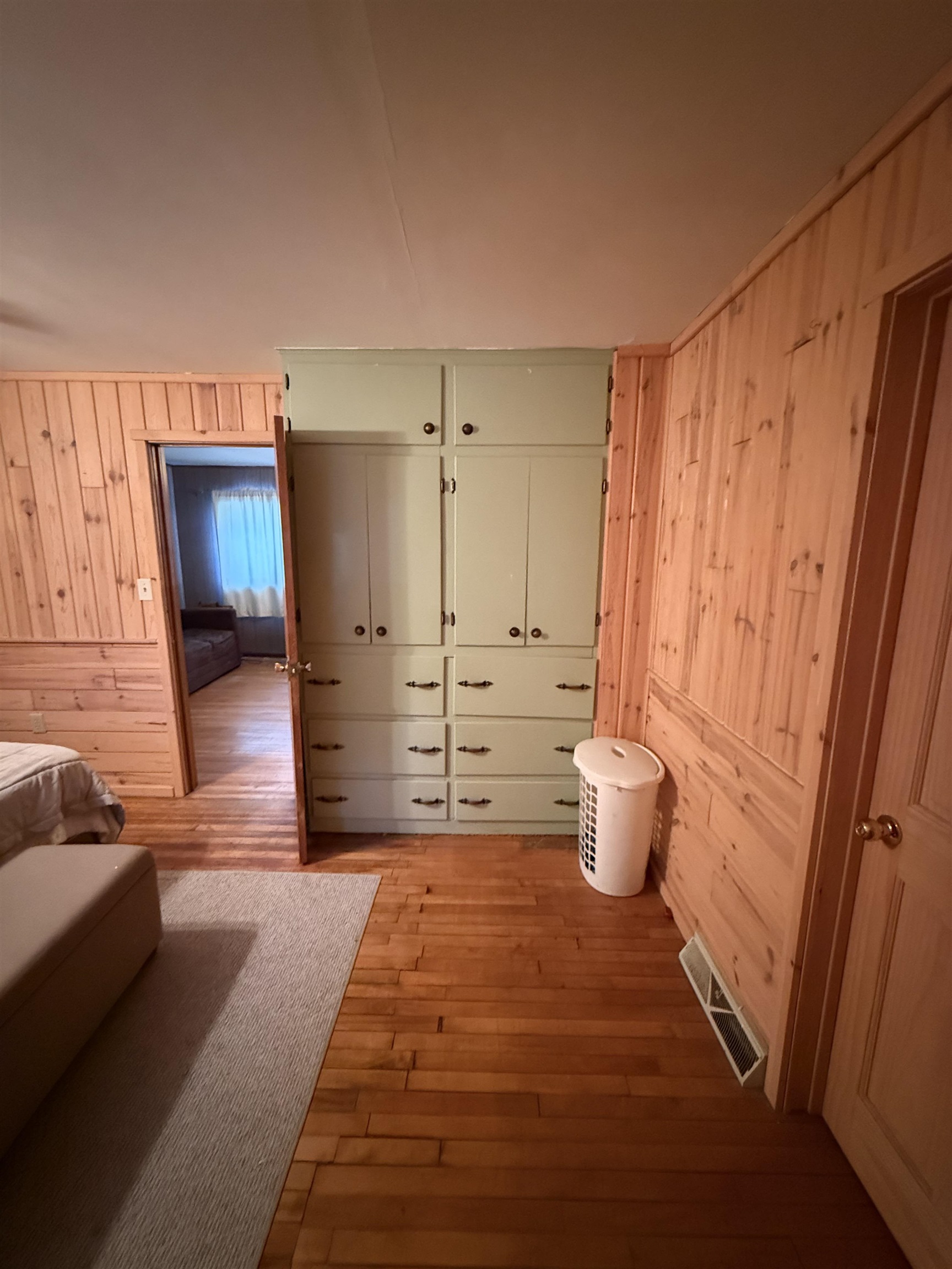 Northwoods cottage-vintage feel with purposeful updates. Two lots at .44 acres! This 2-bedroom 1bath home has the added bonus of a full (low ceiling) basement for extra storage, a 1.5-car garage, and an inviting 11x11 three-season porch (not included in sq/ftg) with newer windows overlooking the tree-lined yard. The updated primary bedroom showcases warm knotty pine finishes and pass-through access to the full bath. Original hardwood floors and quirky wallpaper in the kitchen showcase the nostalgic vibe. New furnace (2017), new septic drain field (2025), and new vinyl siding on the garage front. Outhouse in back (condition unknown). Enjoy as is or bring you vision to this vacation ready property.