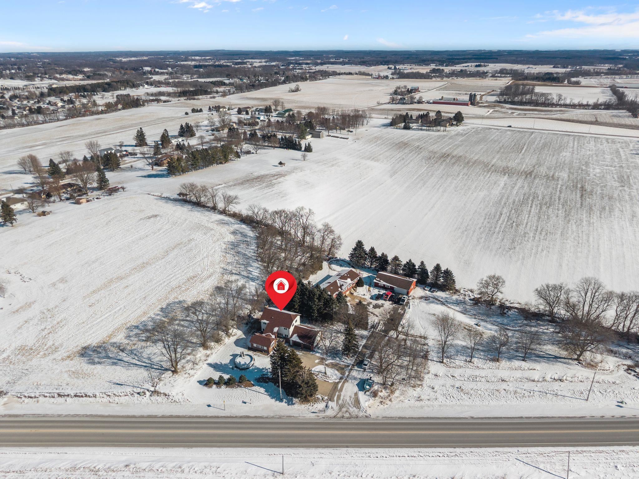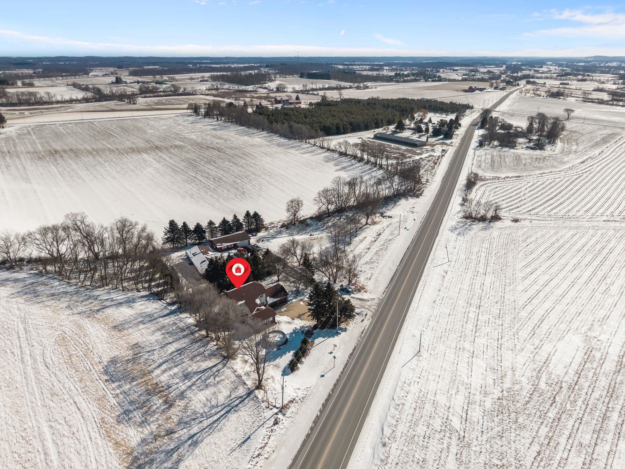 From Hwy 41, take County Rd B to Eden, then County Rd V, and home will be on the left.
