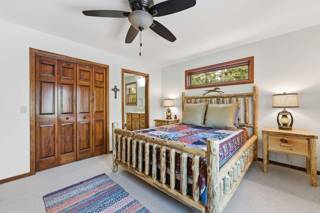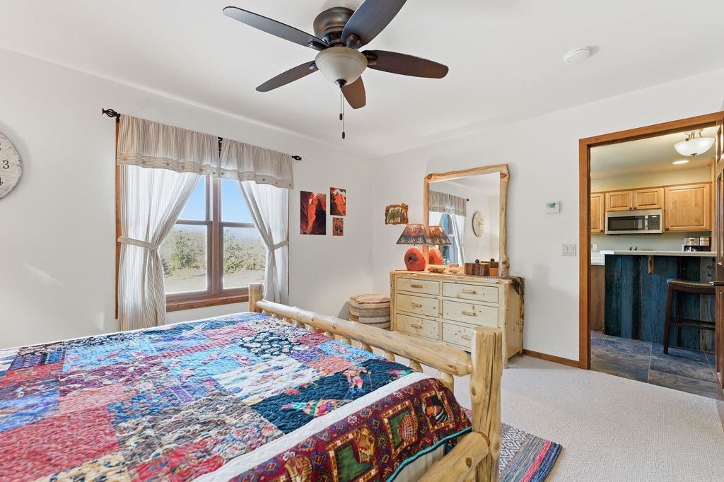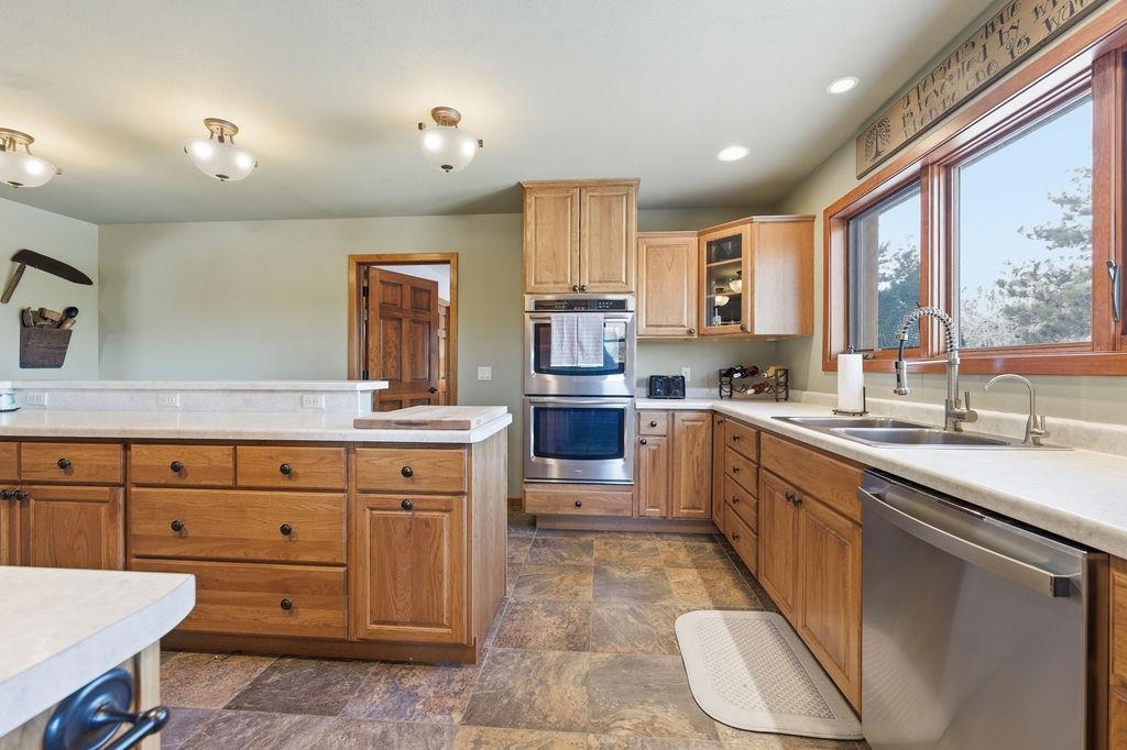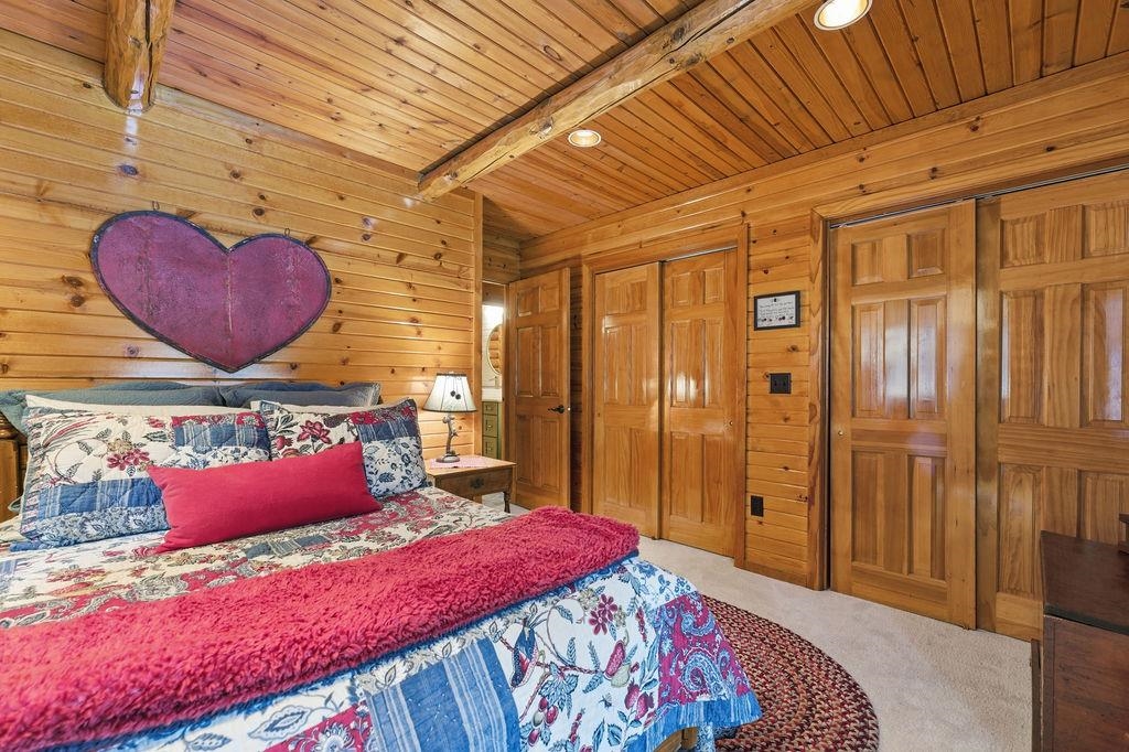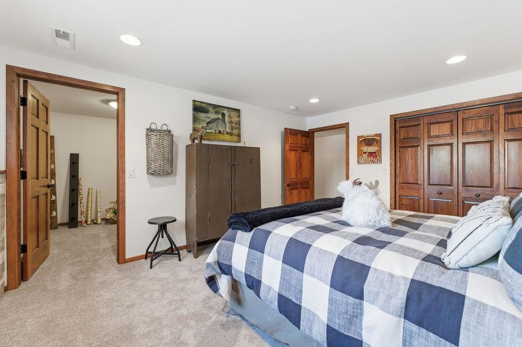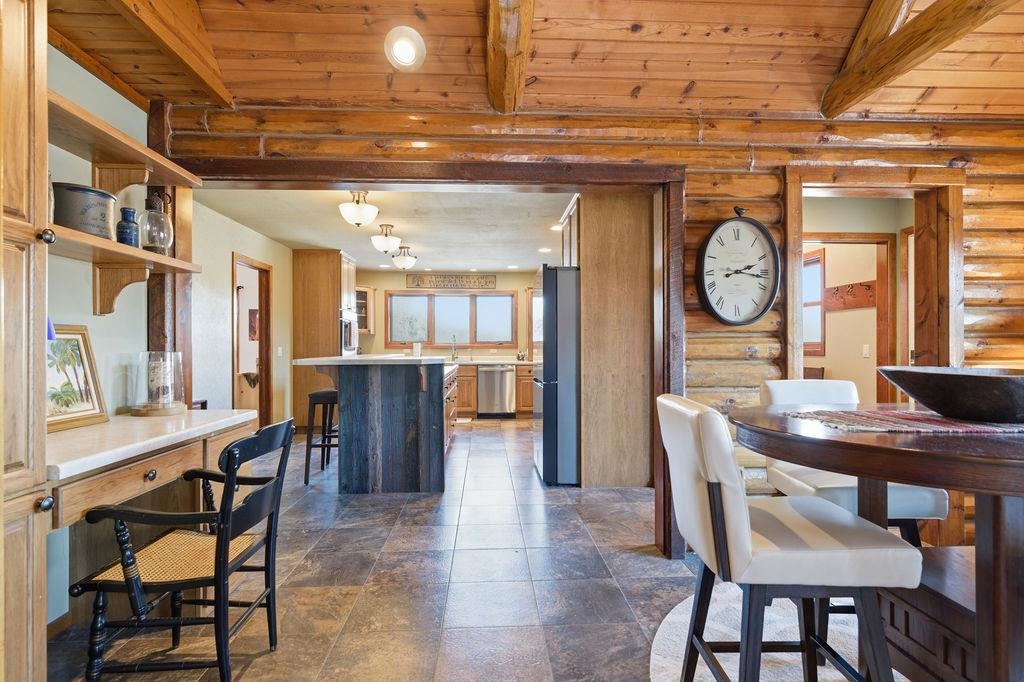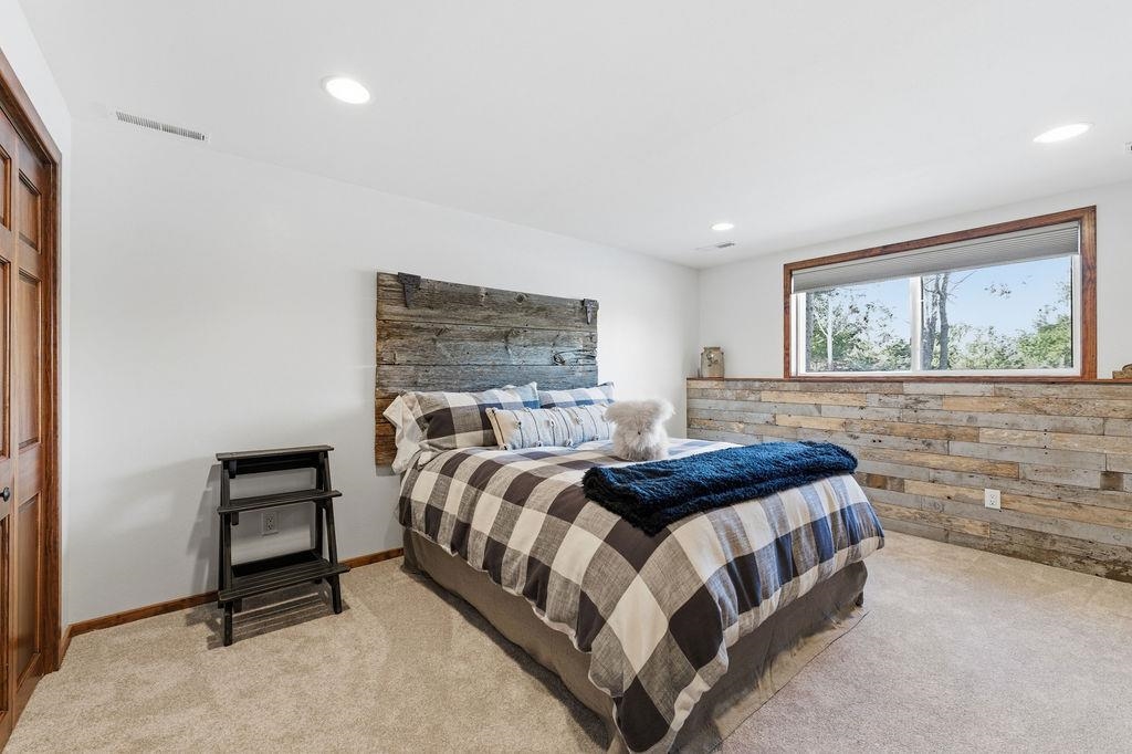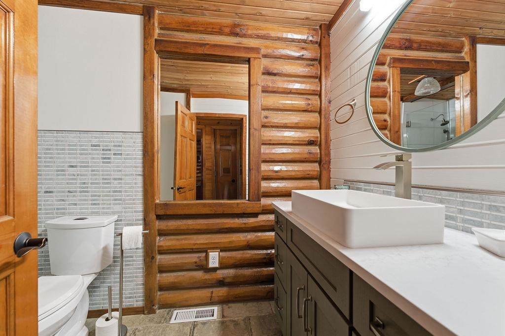 Serenity Awaits! Nestled on 5.22 acres, lies this captivating, 4 Bd/3 BA, Log home that boasts new carpet, some new tile, appliances, shades and more. Renovated main floor bathroom/hand sawn oak vanity, stone sink, walk in marble shower and Quartz counter top.1st floor laundry/mud room.Gazing down from the open relaxing upper loft, notice the living room stunning floor to ceiling wood burning fieldstone fireplace to cozy up around!Open the door to the basement custom stairway that leads to 2 additonal bedrooms with giant storage closets.LL famiy room and another full bath.Sit outside on the wrap around Timbertech maintenace free deck and enjoy the wildlife, including deer, geese,and many species of birds.Large 3 car insulated garage, plus a 26x30 steel building with lean-to.Call now!