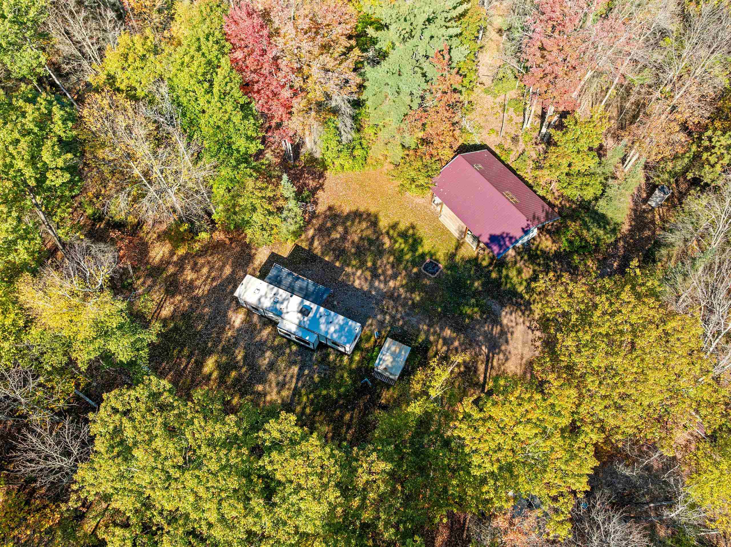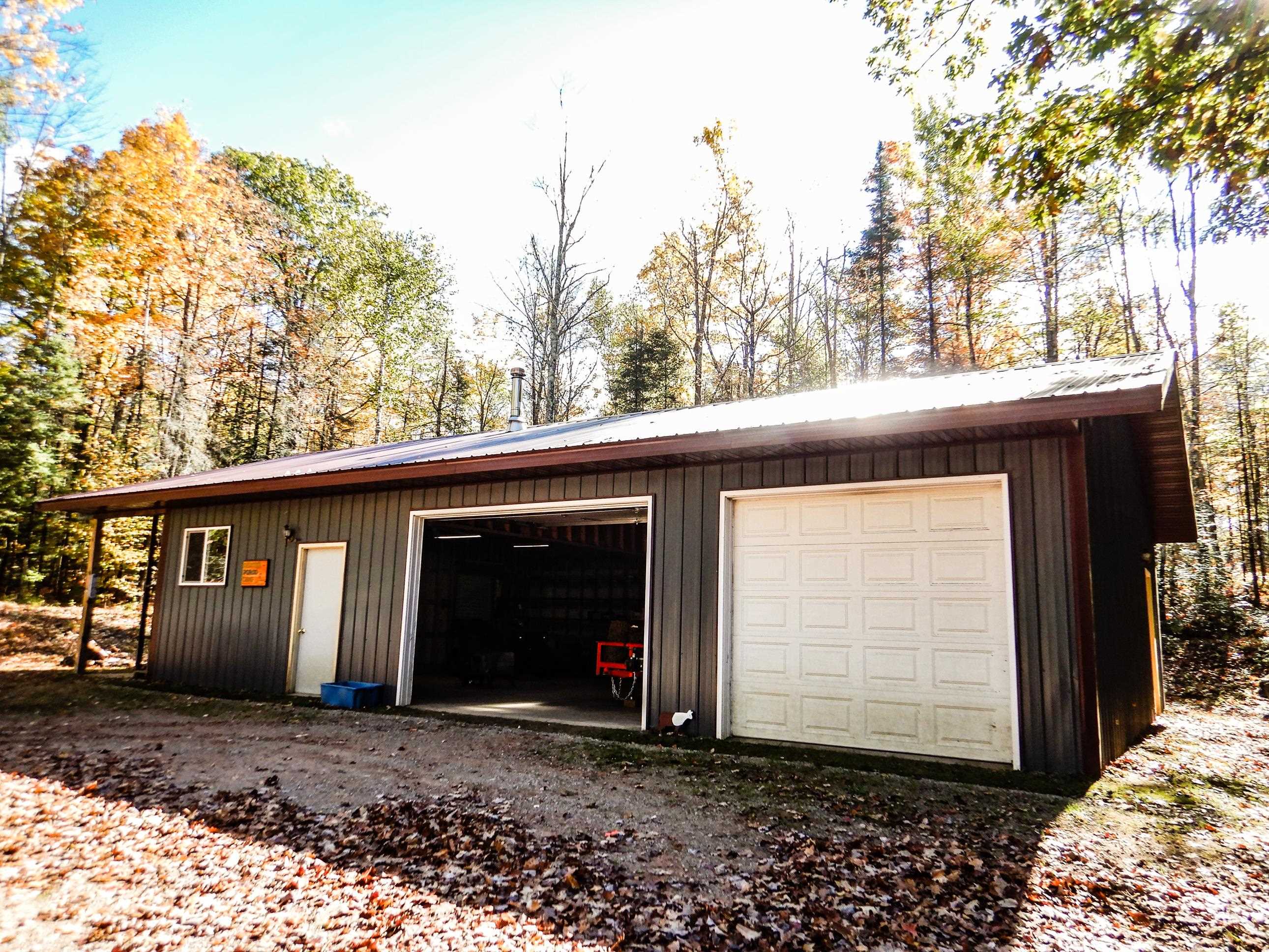 Come enjoy the north woods! Hunters Dream land!! So many possibilities with this wooded/private 9.75 acres located at the end of a private gravel dead end road (that you also have ownership in.) This property has an open cleared area for a camper or a building spot. Included a 30X54 garage steel siding and roof. Sand point well. 32X36 carport with metal roof and deck for 31 ft camper which is included. Nice privy included. Large open area for building. Camper needs yearly land use permit. Wood shed. Huge Firepit. Extra camper spots. The rest of the land is wooded with walking trails throughout. Electricity is at the site. 3 Parcels total. There is also the possibility of additional parcel with 8.73 acres. Come walk and check out this beautiful land today!