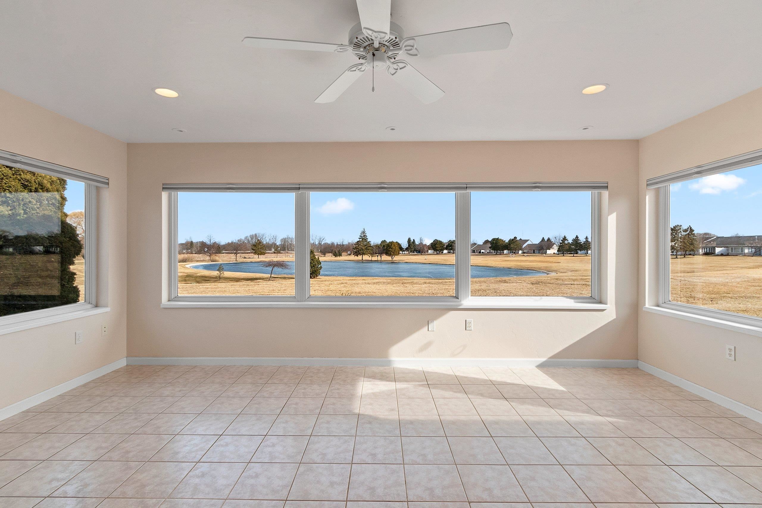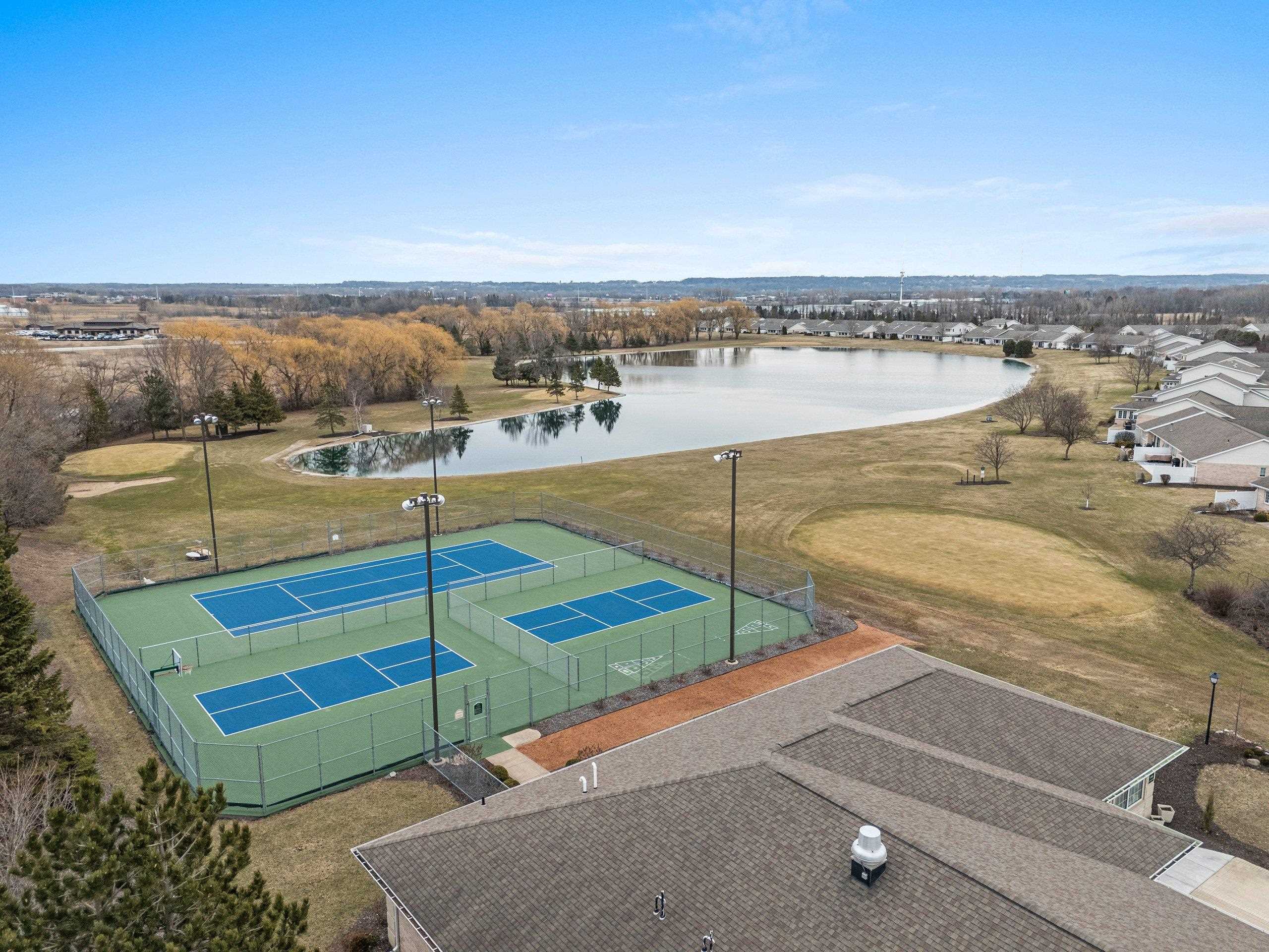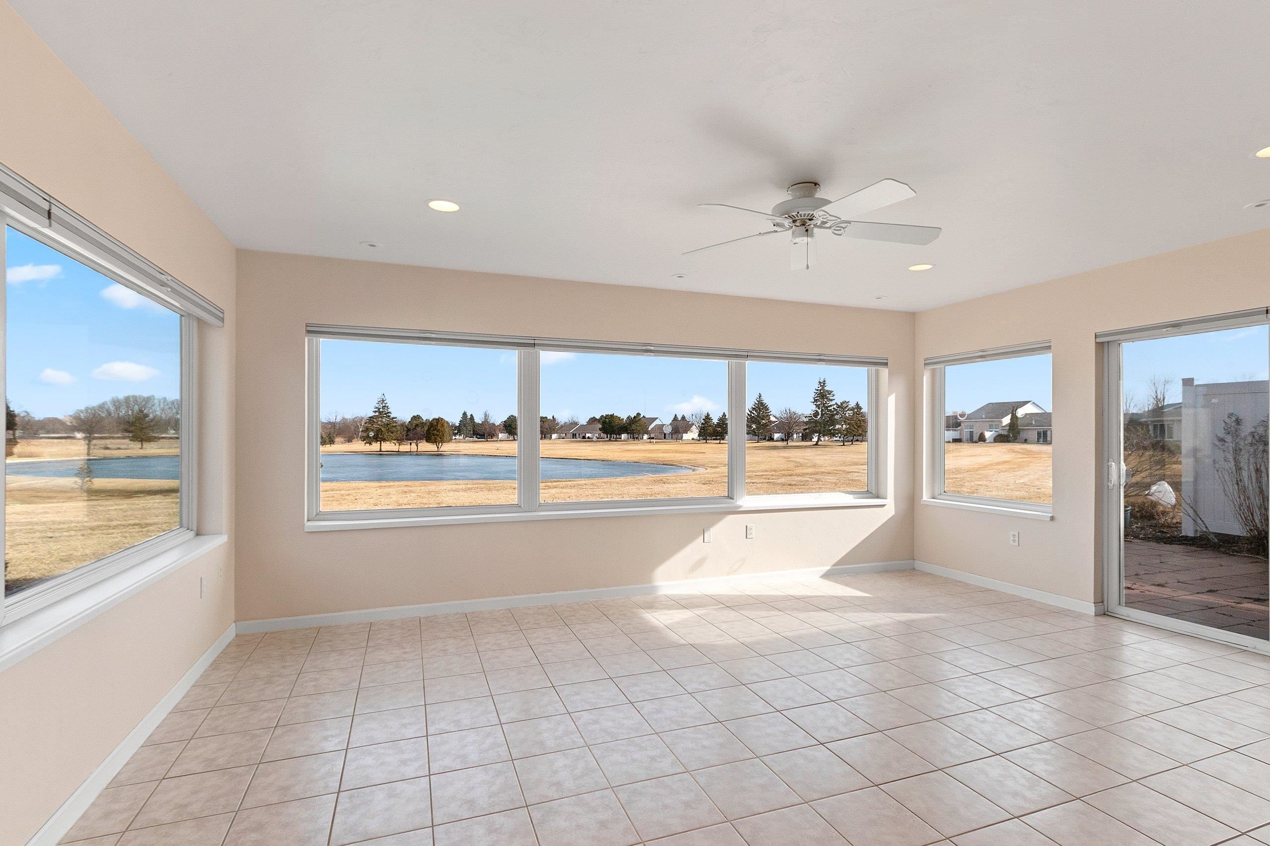 Experience River Pines condo located in a gated community to enjoy active lifestyle including a golf course, clubhouse w/indoor pool & hot tub, party rm, workout facility, tennis/pickleball/basketball courts & more. Monthly assoc fee incl snow removal & lawn care. The open-concept kitchen offers ample granite counter space & a lit buffet area, ideal for entertaining. The primary suite features water views, dual vanities, a walk-in shower, & a lg walk-in closet. First-floor laundry. A gas fireplace connects the living rm & sunrm, creating a comfortable gathering space. The sunrm features lg windows overlooking the water & golf course, heated floors, & a patio door for outdoor access. A dedicated office w/cherry cabinetry & 2nd bedrm w/adjoining full bath. Attached two-stall garage.