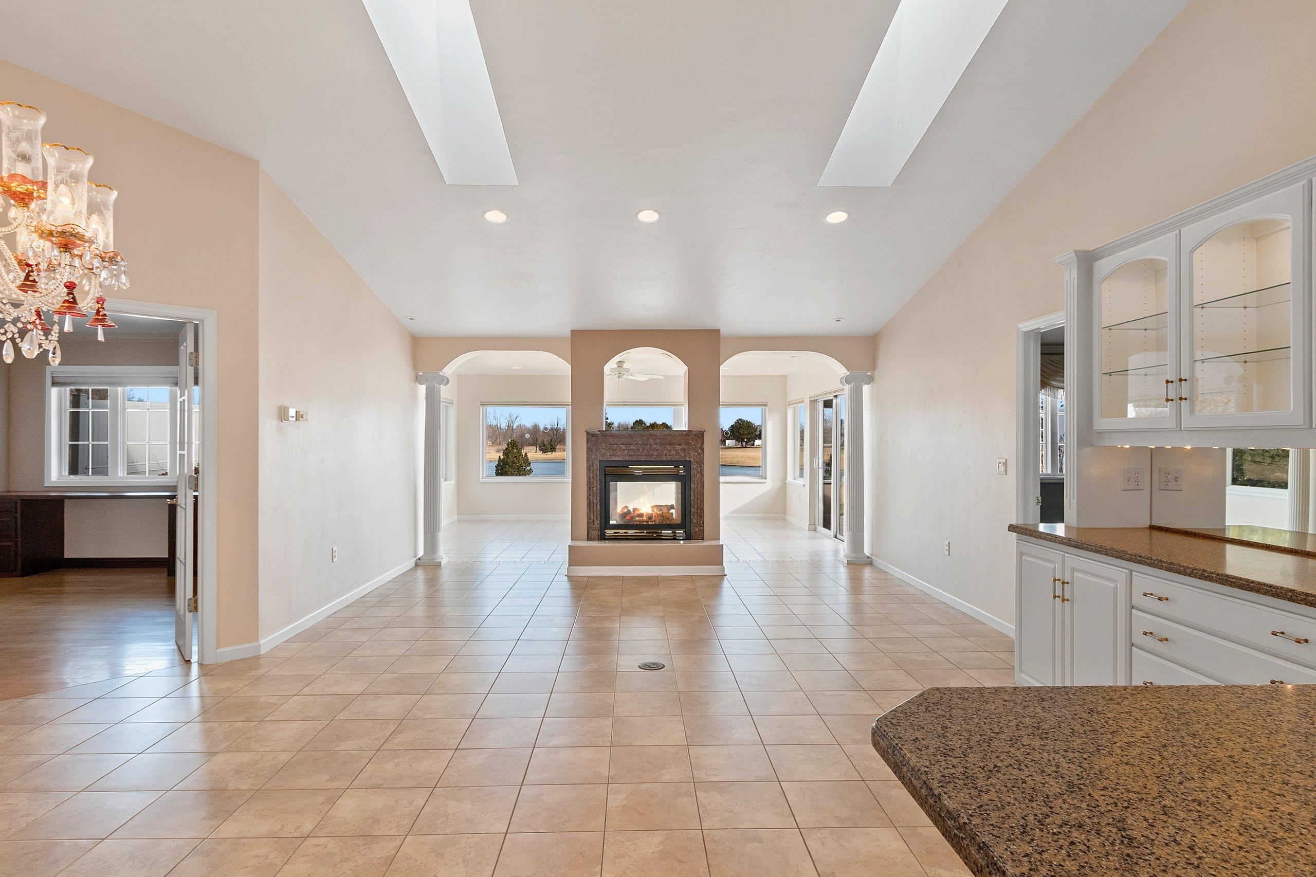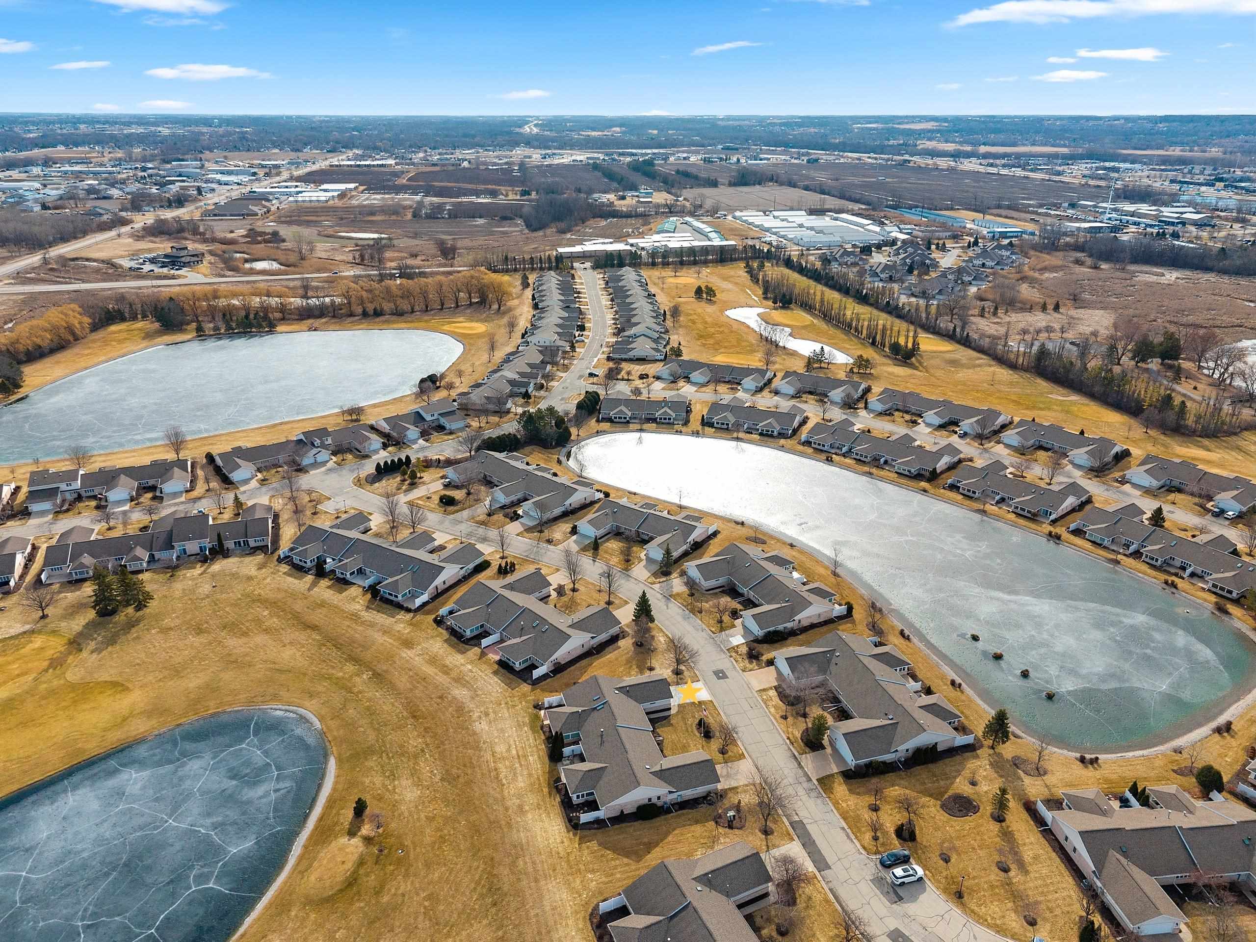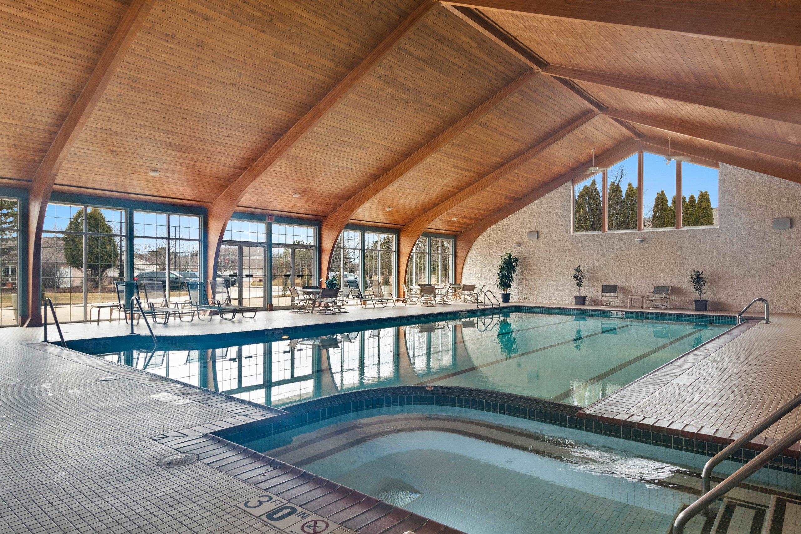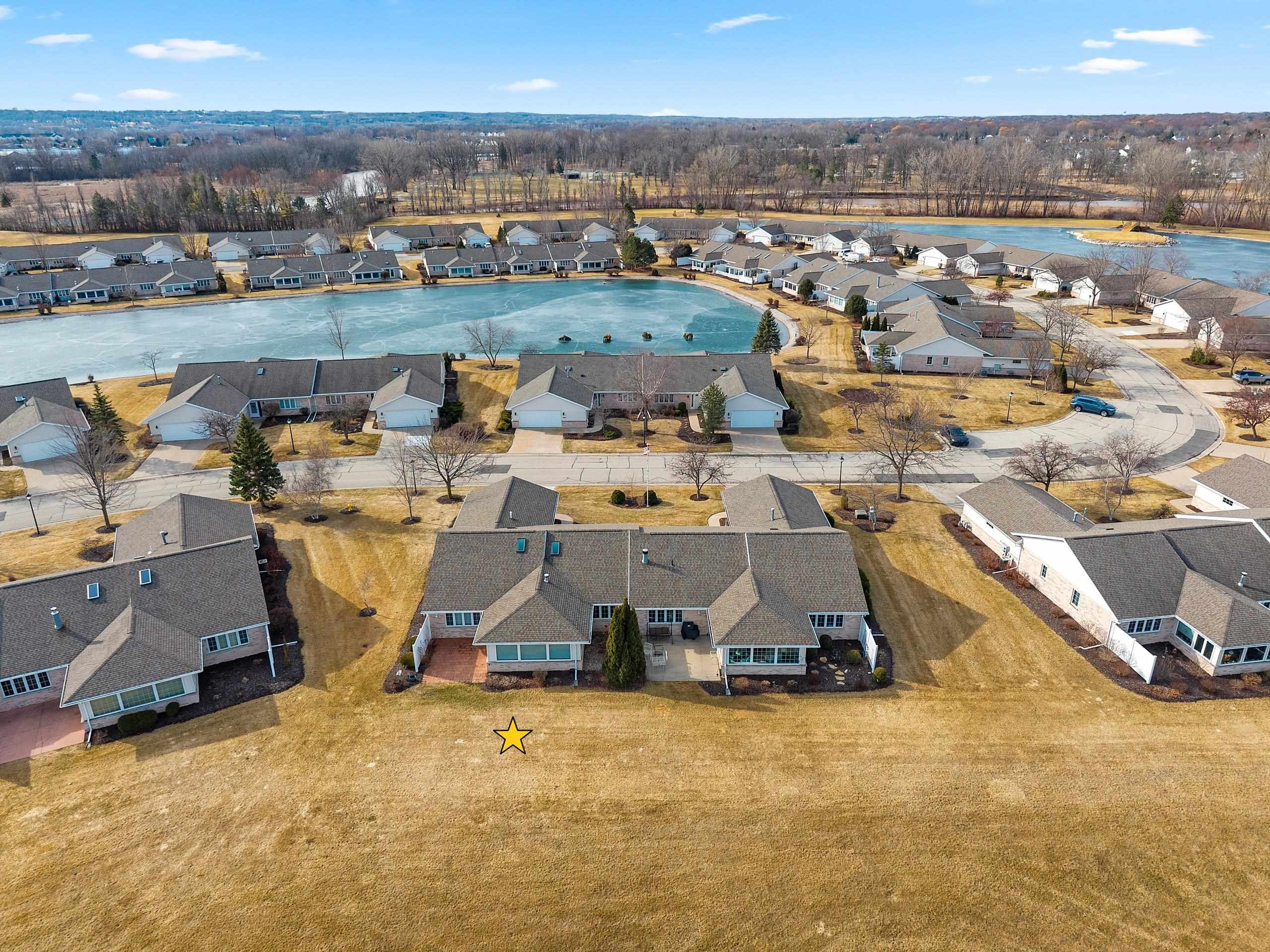 Experience River Pines condo located in a gated community to enjoy active lifestyle including a golf course, clubhouse w/indoor pool & hot tub, party rm, workout facility, tennis/pickleball/basketball courts & more. Monthly assoc fee incl snow removal & lawn care. The open-concept kitchen offers ample granite counter space & a lit buffet area, ideal for entertaining. The primary suite features water views, dual vanities, a walk-in shower, & a lg walk-in closet. First-floor laundry. A gas fireplace connects the living rm & sunrm, creating a comfortable gathering space. The sunrm features lg windows overlooking the water & golf course, heated floors, & a patio door for outdoor access. A dedicated office w/cherry cabinetry & 2nd bedrm w/adjoining full bath. Attached two-stall garage.