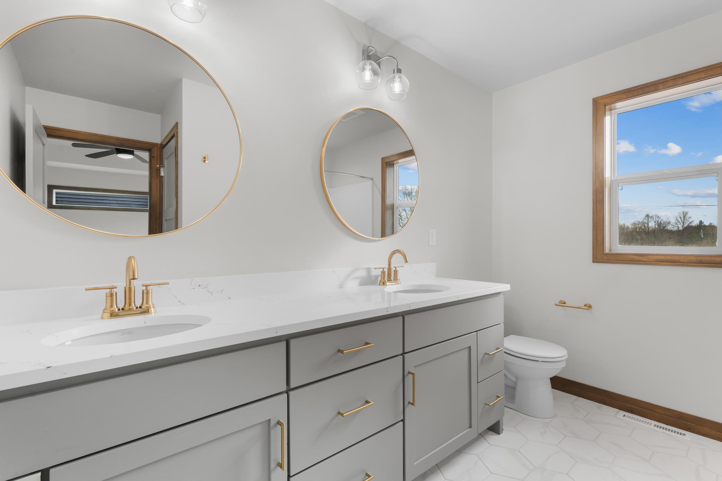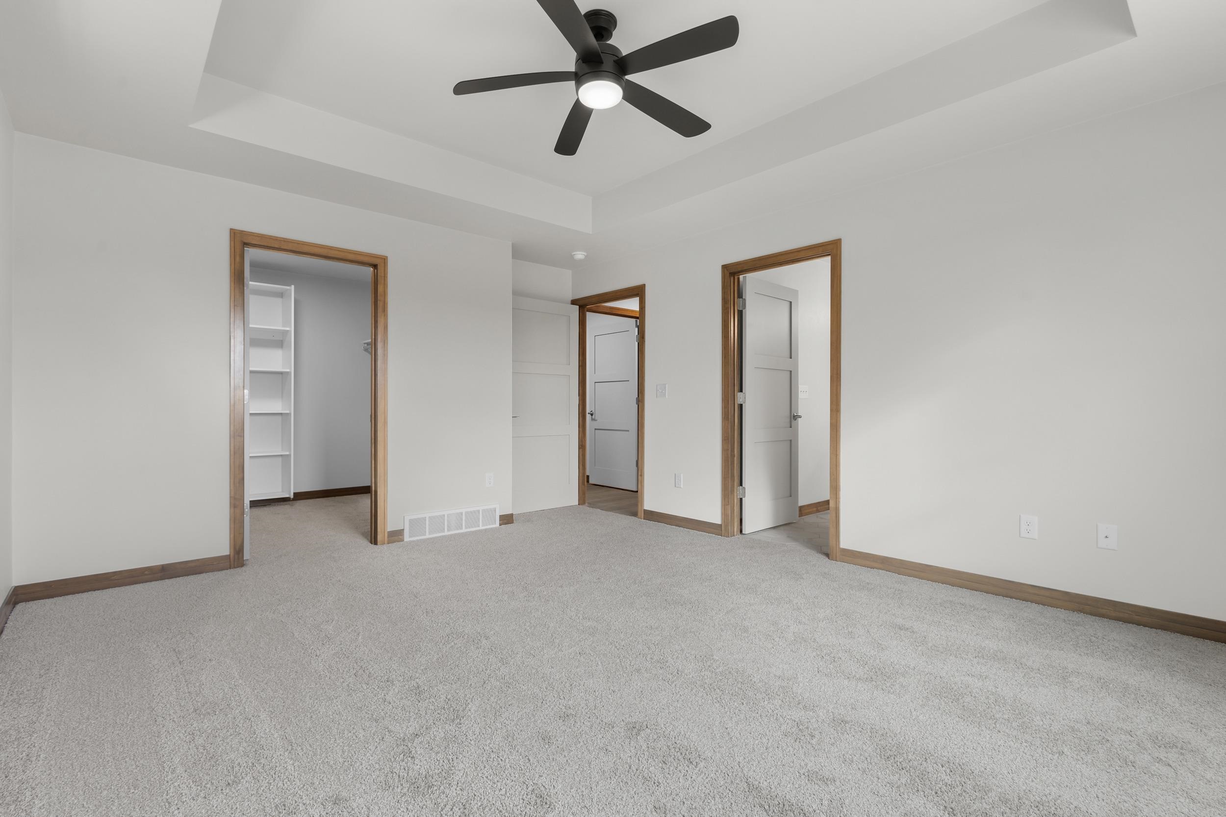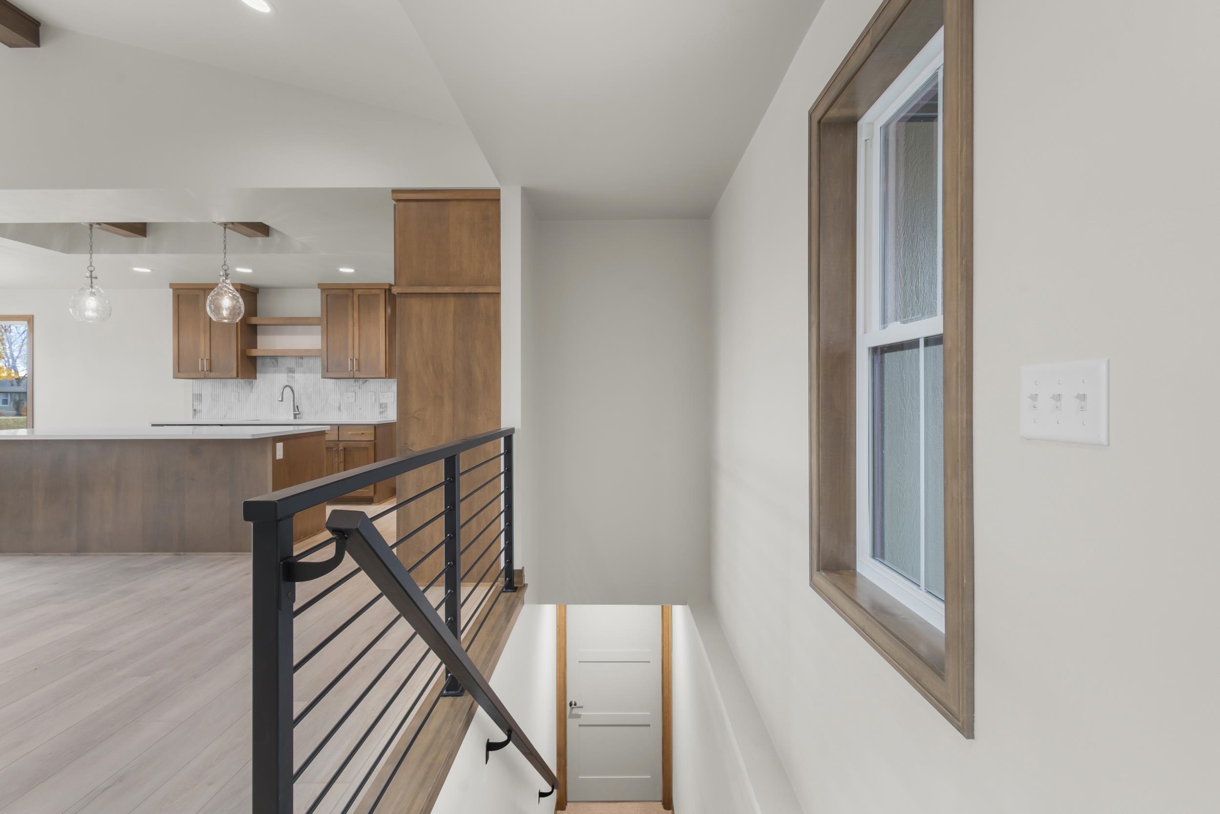 Welcome home to this spacious 3 bedroom, 2 bath ranch located in the highly desirable Bedford Heights subdivision in Bellevue! The kitchen boasts stunning custom maple, caramel stained cabinets accented by Calacutta Alto Quartz countertops & an Arabescato Venato natural stone backsplash. The kitchen opens to the main living area complete with a 50" Simplifire Allusion Platinum Linear Electric fireplace surrounded by Ardesia Kwik Stack stone and a cathedral ceiling featuring a gorgeous caramel stained beam. Terra Timber Meadow Sage LVP can be found throughout the main living areas. The primary suite features a large walk in closet & bathroom with dual sink vanity. Lower level is stubbed for full bath & has an egress window for future expansion.