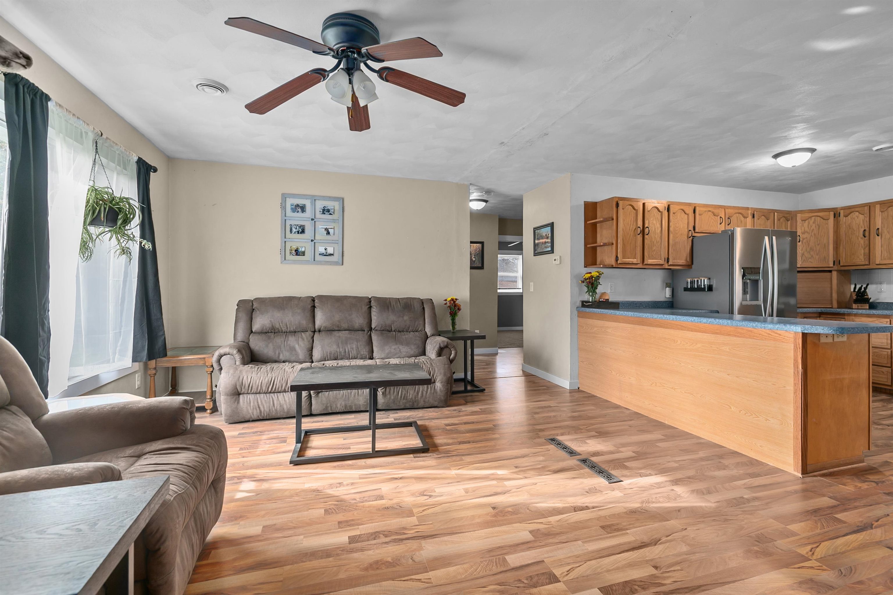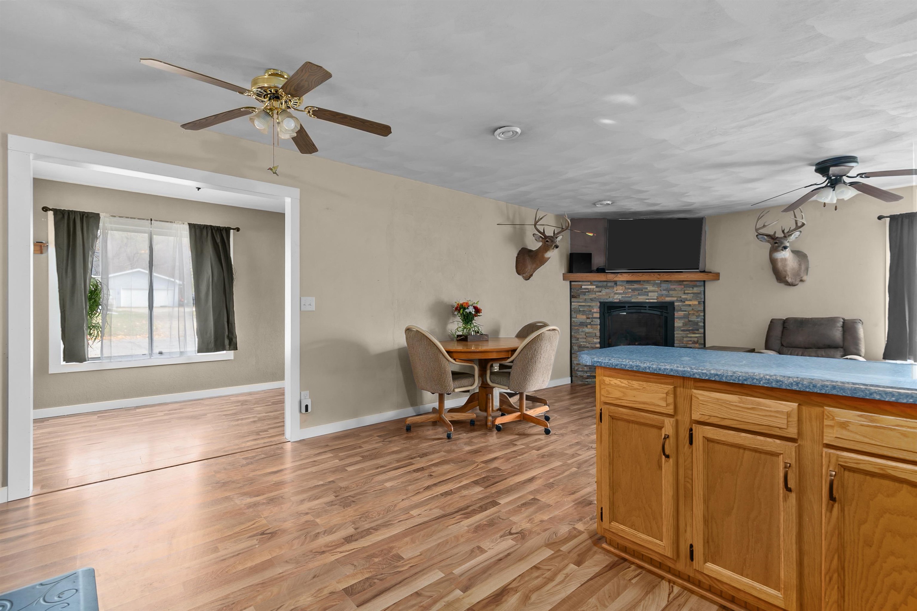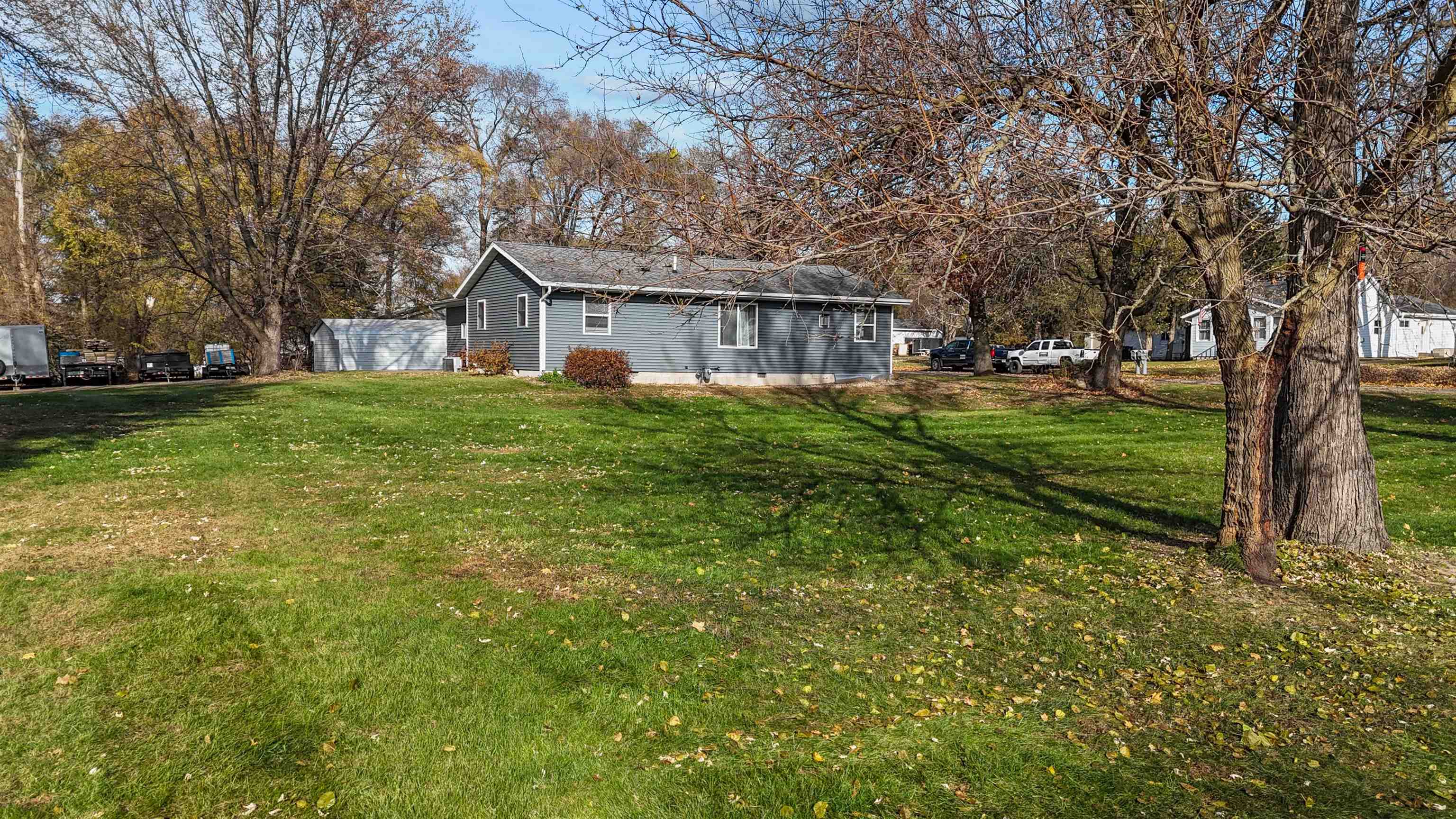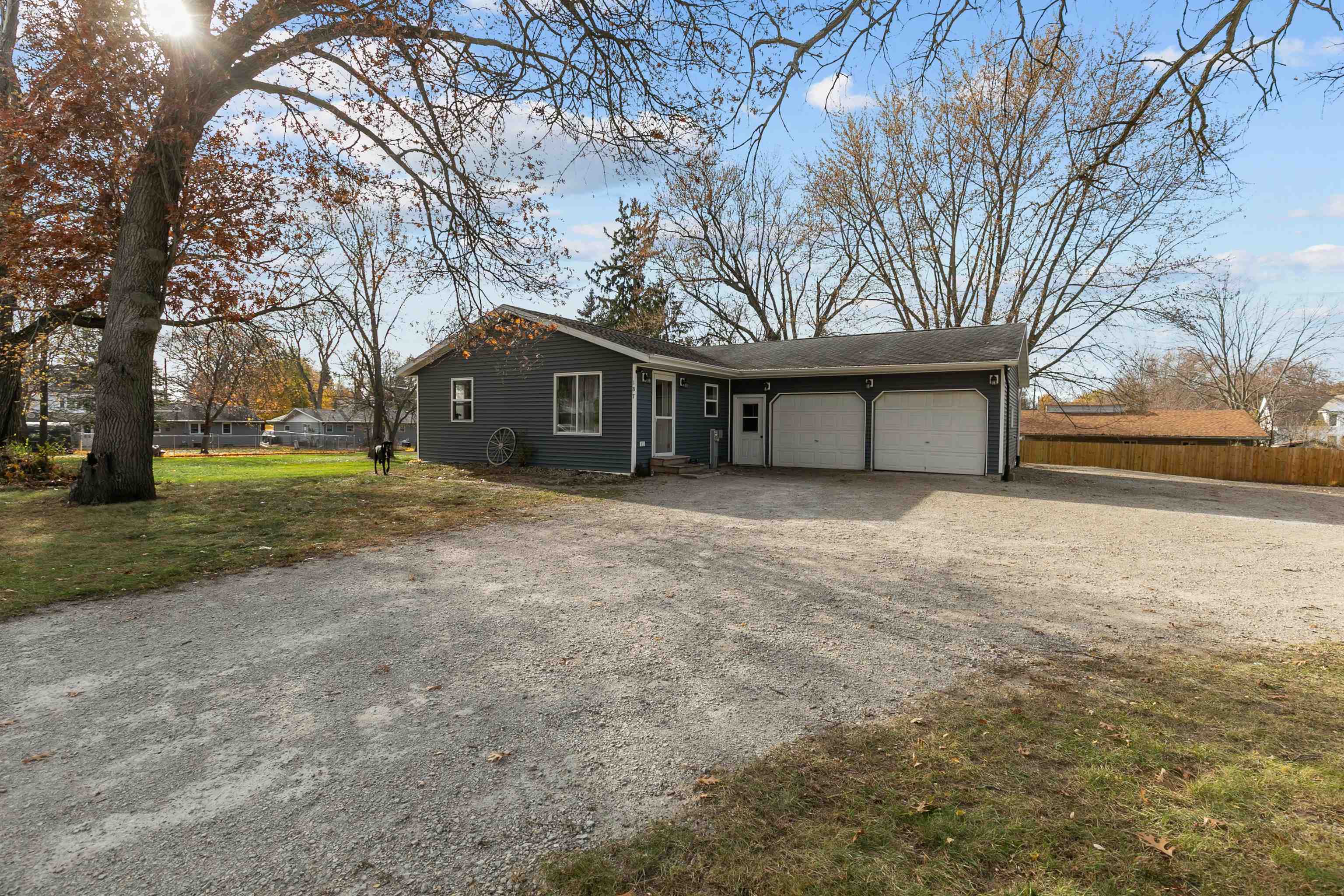 This updated 3-bedroom, 1-bath open-concept ranch is beautiful inside and out. Step into a bright and welcoming living area featuring a cozy gas fireplace with a stone accent wall. The open layout is perfect for everyday living and entertaining. Enjoy the convenience of an attached heated 2-car garage with direct entry to the home, plus a cement patio ideal for outdoor relaxation. A large detached storage shed with a garage door provides plenty of extra space for tools, equipment, or hobbies. Set on a spacious yard, this property offers both comfort and charm. Pictures do not do it justice—come see for yourself all this lovely home has to offer. Move-in ready and waiting for you!