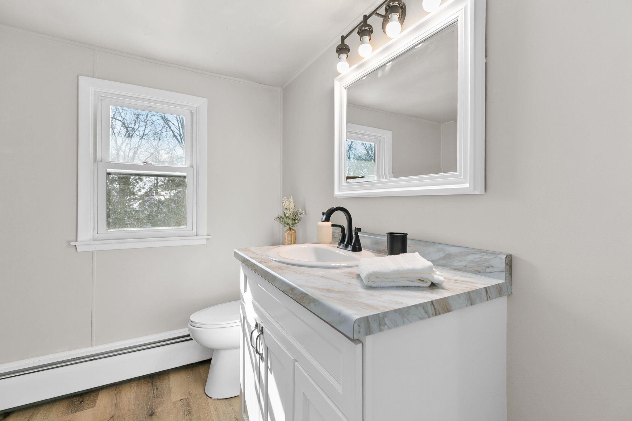 Updated 4 bedroom 1.5 bathroom (additional half bathroom stubbed in the lower level!) deatched 2 car garage. Freshly painted with new flooring and move in ready! First fl laundry and plenty of additional space to add equity to the lower level!
