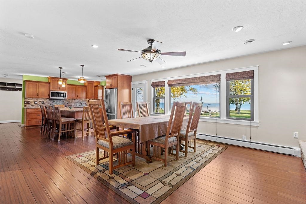 Fully updated 3-bedroom, 3-bath home with 112' of stunning Lake Winnebago waterfront! This beautifully remodeled property features a 2 stall attached garage and 1 stall detached garage. Modern finishes throughout, a spacious open-concept kitchen / dining area with stone fireplace, and breathtaking lake views. The chef’s kitchen boasts high-end appliances, ample counter space, pantry and custom cabinetry. Enjoy the luxury of three full bathrooms, including a fully finished lower level with wet bar and rec room. Outside, the expansive landscaped yard is perfect for entertaining or relaxing by the water. A rare find on the lake—don’t miss it! **Shared driveway with 4340 S US Highway 45. **Roof new in 2014.