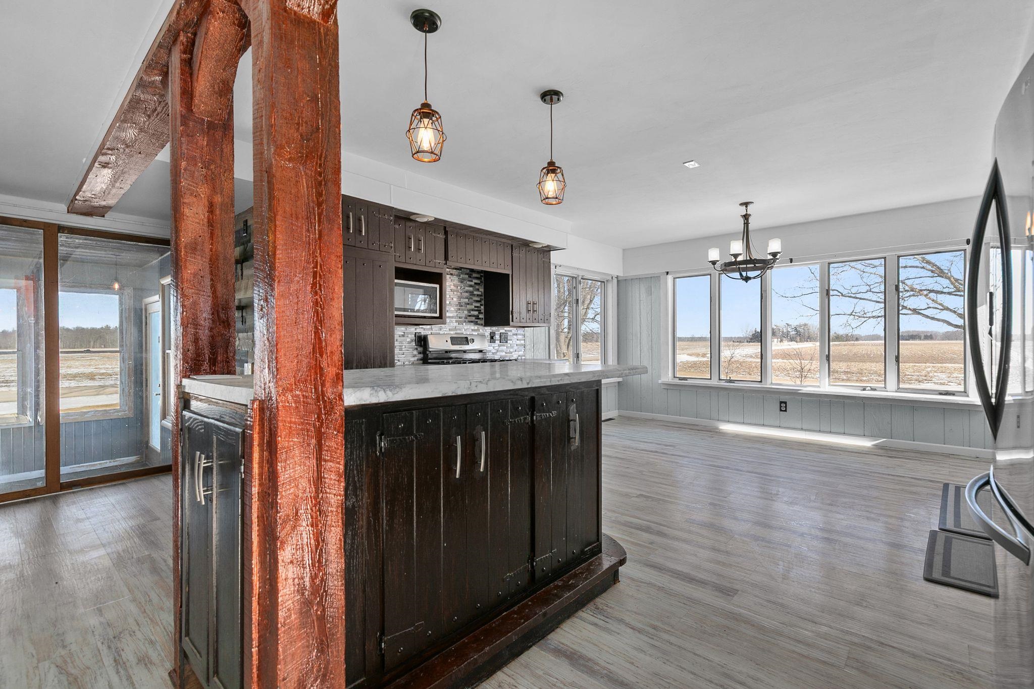 BACK ON THE MARKET DUE TO NO FAULT OF THE SELLERS!!! Spacious and beautifully updated 5-bedroom farmhouse on 1.5+ acres with two massive outbuildings! Home features over 2,300 sq. ft. of updated living space, new siding, new roof, pellet burner in basement, and new woodstove insert for efficient heating. Stunning open concept, kitchen with built-in island and dining area. Main floor primary bedroom with attached updated bathroom, first-floor laundry, plus additional half bath. Endless possibilities with oversized outbuildingsāideal for storage, workshop, or hobby space. Enjoy peaceful country living with room to grow.