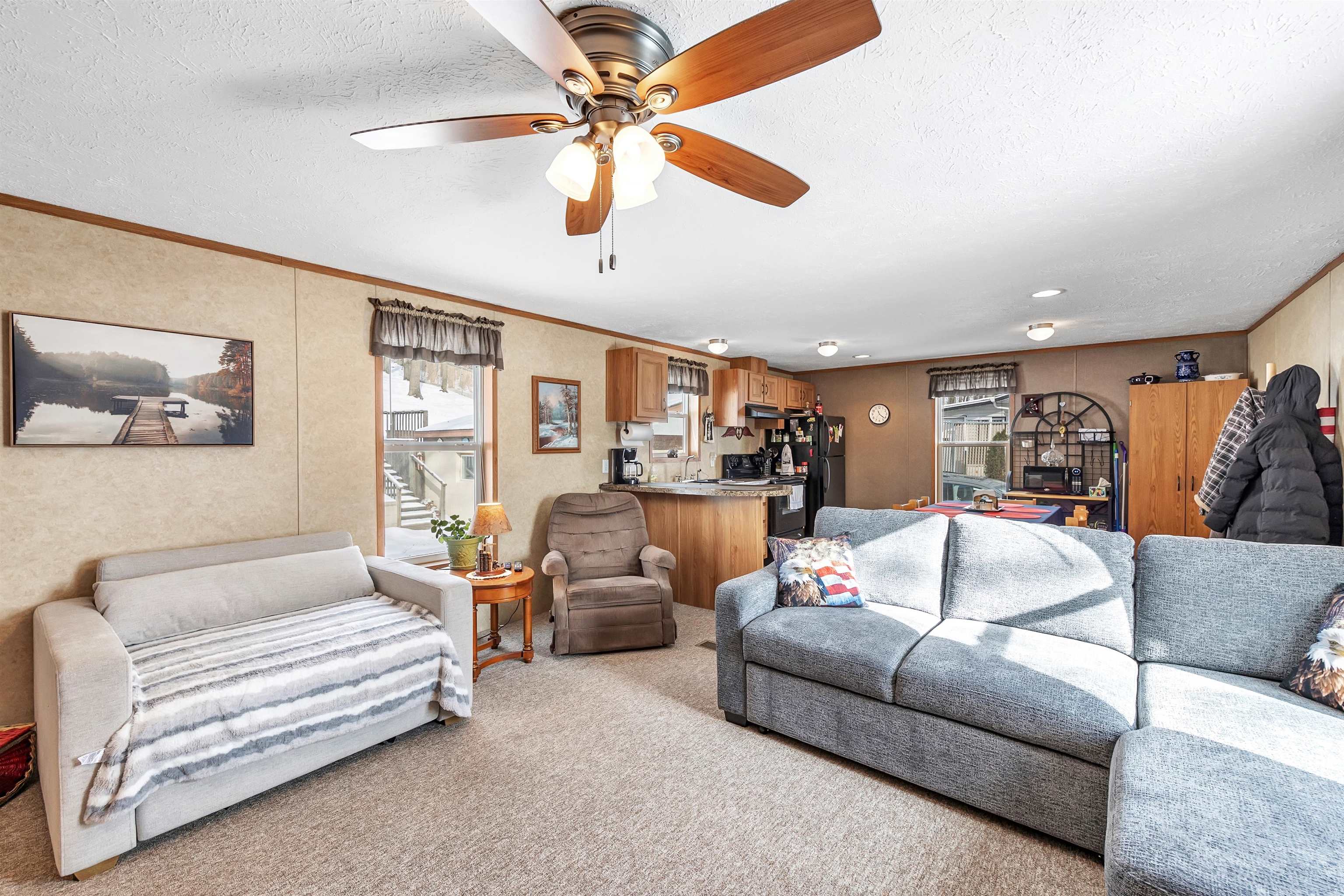 Enjoy peaceful living in this charming ranch home with beautiful water views of Rost Lake. Located just steps away from a full rec lake, this home offers year-round enjoyment with boating, fishing, and ice fishing right at your fingertips. The open-concept layout features a generously sized living room flowing seamlessly into the kitchen—perfect for entertaining or relaxing after a day on the water. Step outside to a backyard with a park-like setting, where abundant wildlife and serene natural views create a true retreat. Conveniently located near the boat landing, with a one-stall detached garage for storage and ease, this home blends comfort, nature, and recreation in one inviting package.