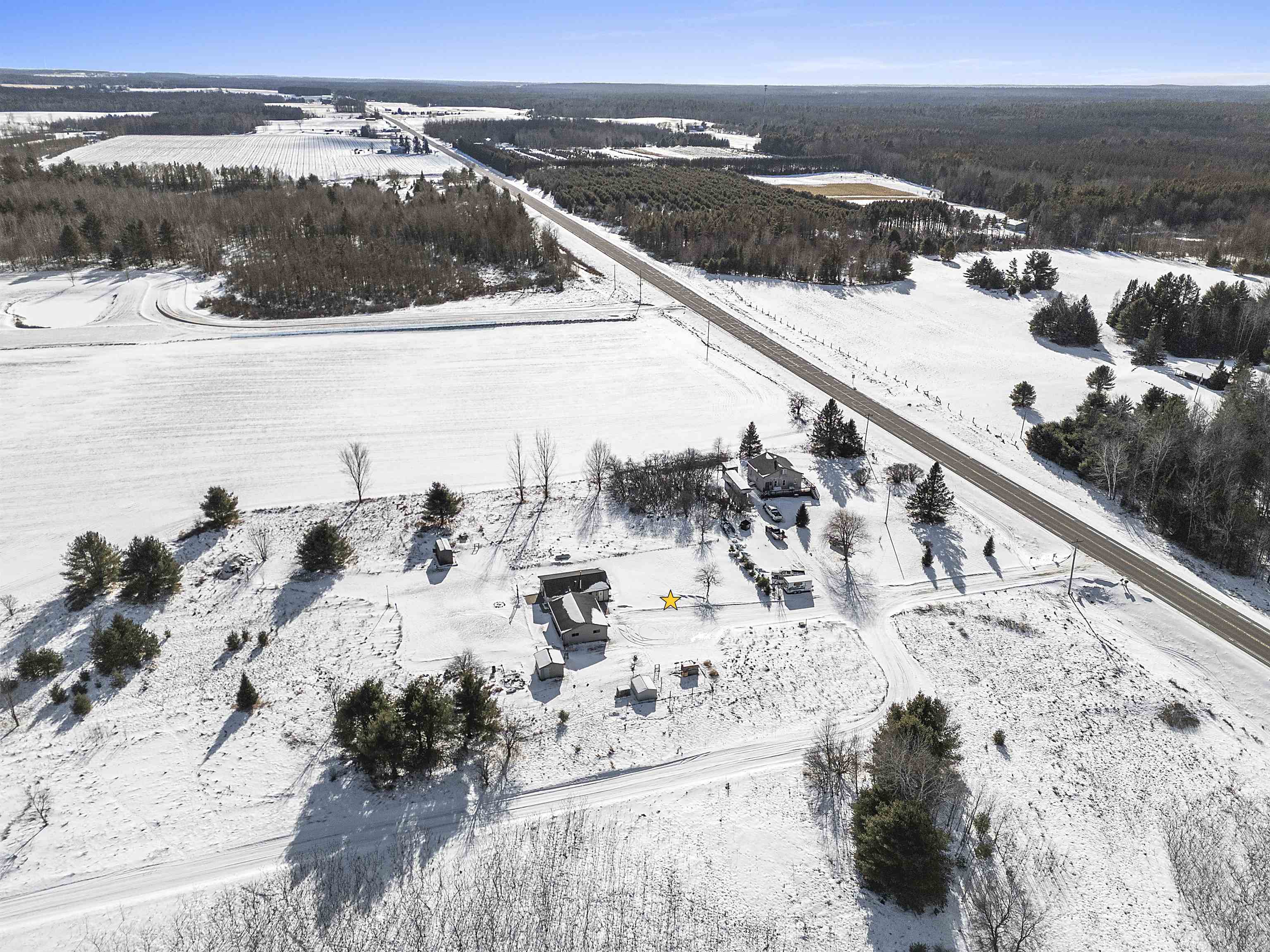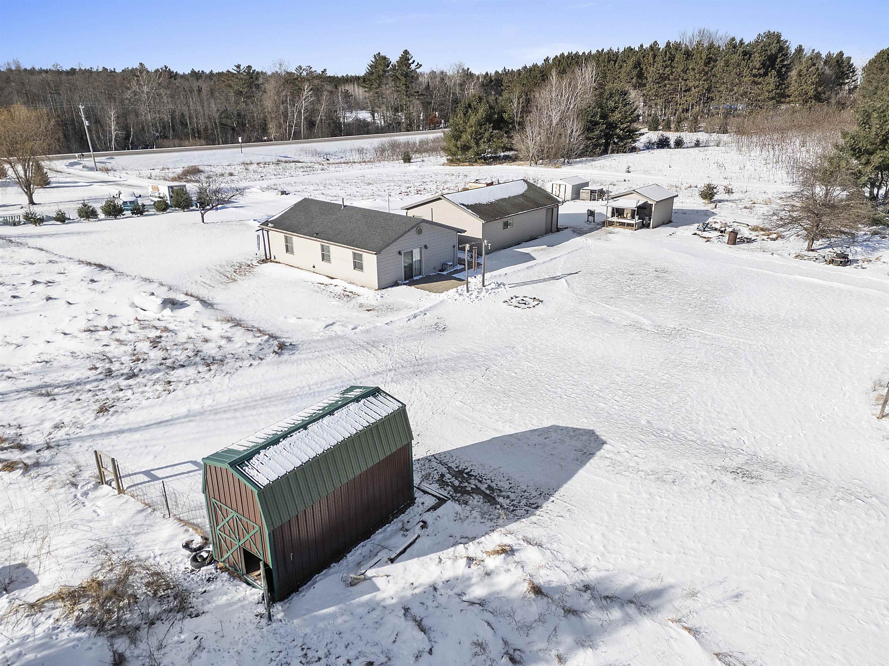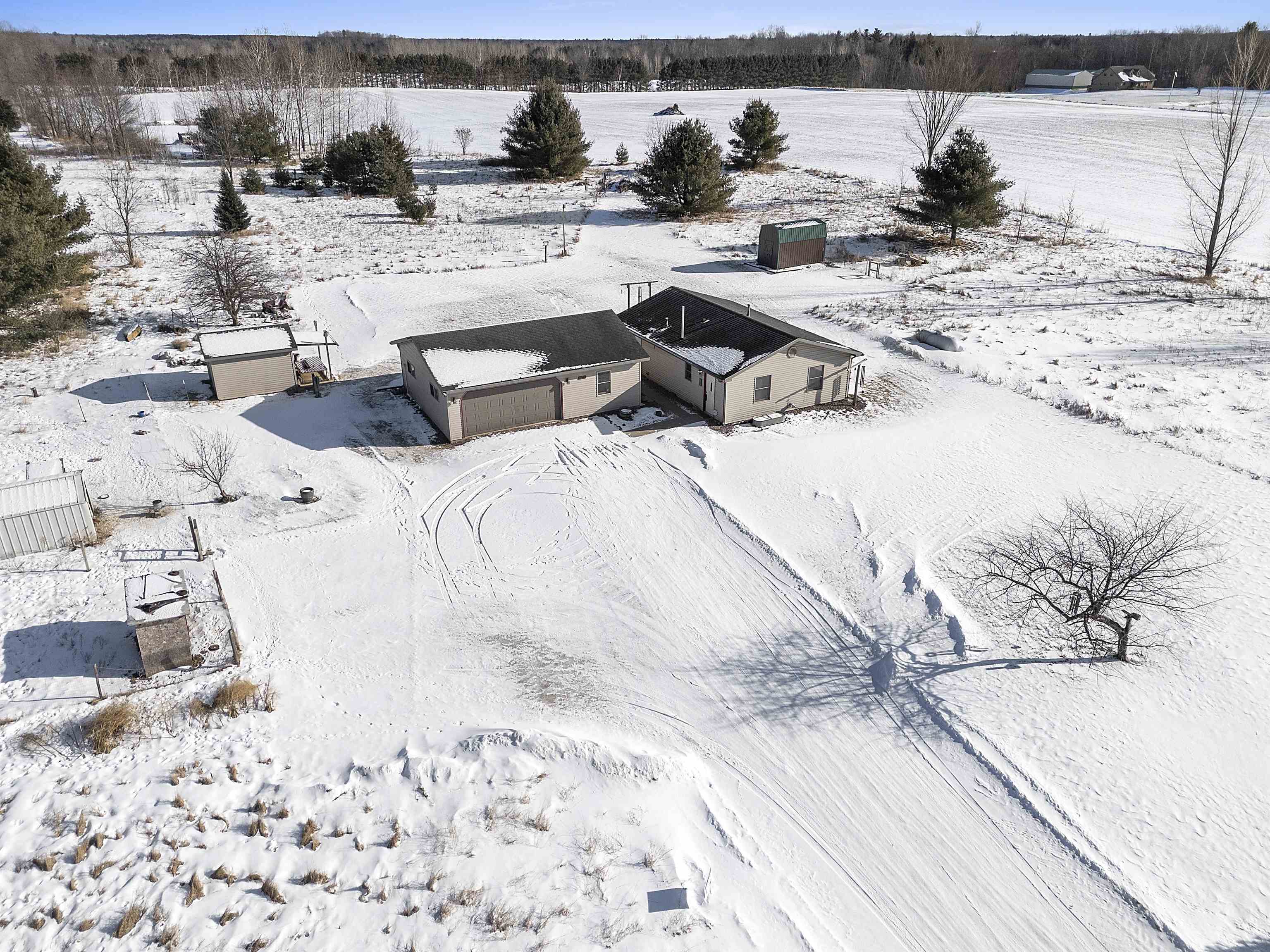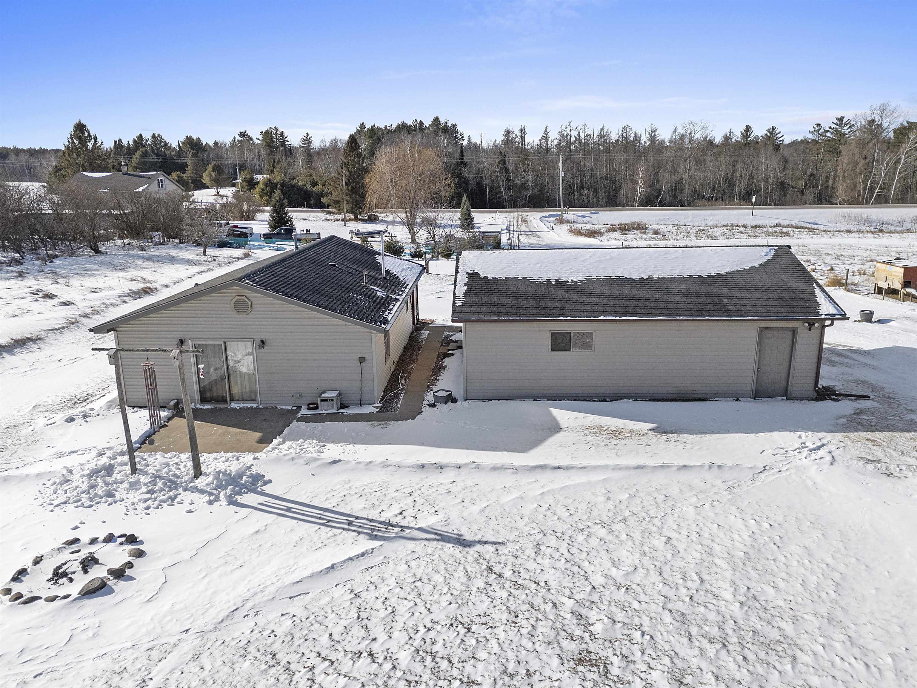 Close to trails and lakes is where you'll find this gem. Two-bedroom home on 2.53 acres with a 2.5 stall (32X24) garage. Rural residential zoning allows for some farm animals such as goats and chickens. Set back off the road for a more private setting. Anderson Lake and the Oconto County Trail System is just up the road. Plenty of space to park the snowmobile trailers or to build a pole shed for storing them. Open concept, forced air heating and a pellet stove. The back bedroom has patio doors leading out to the back patio.