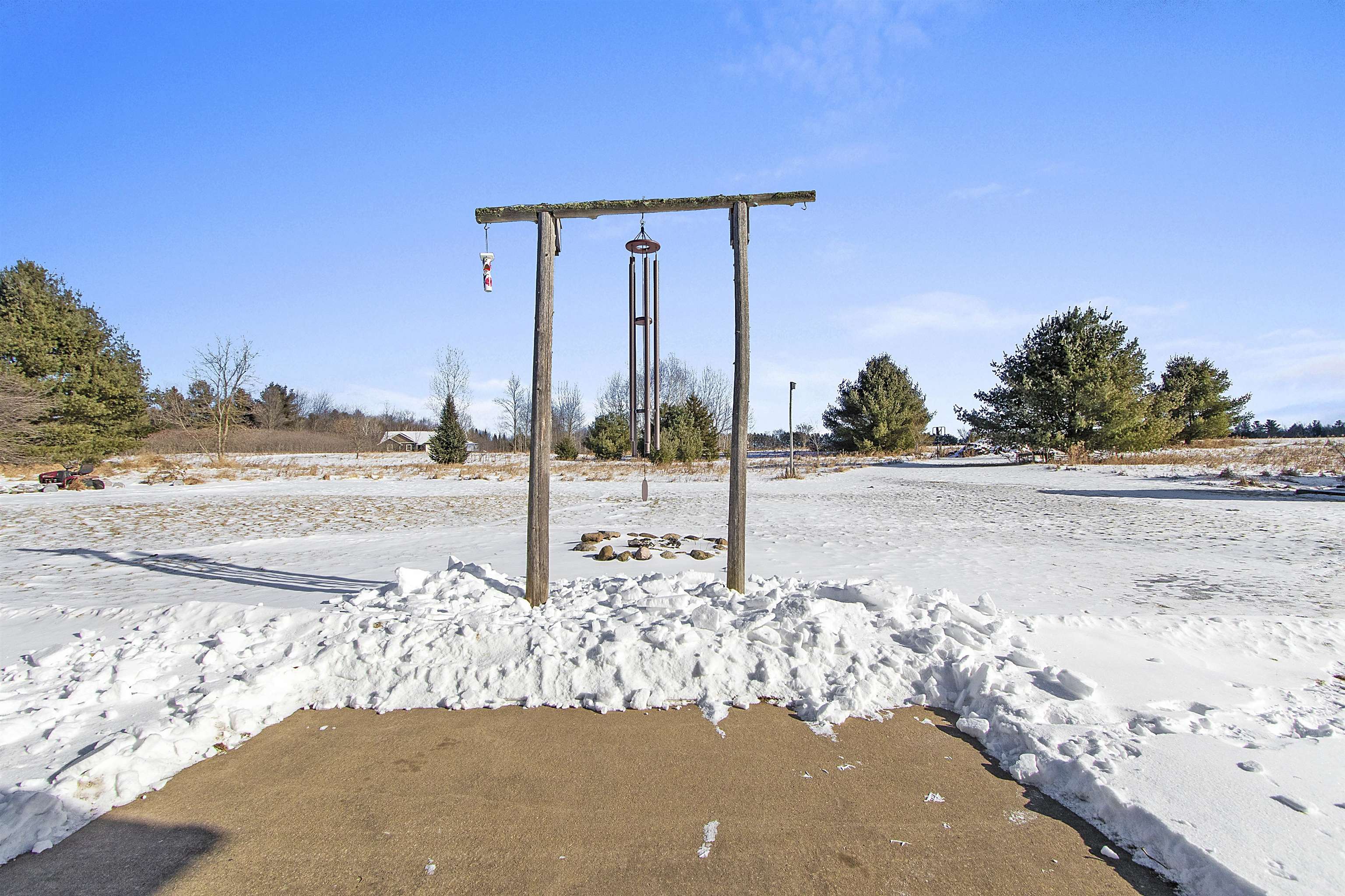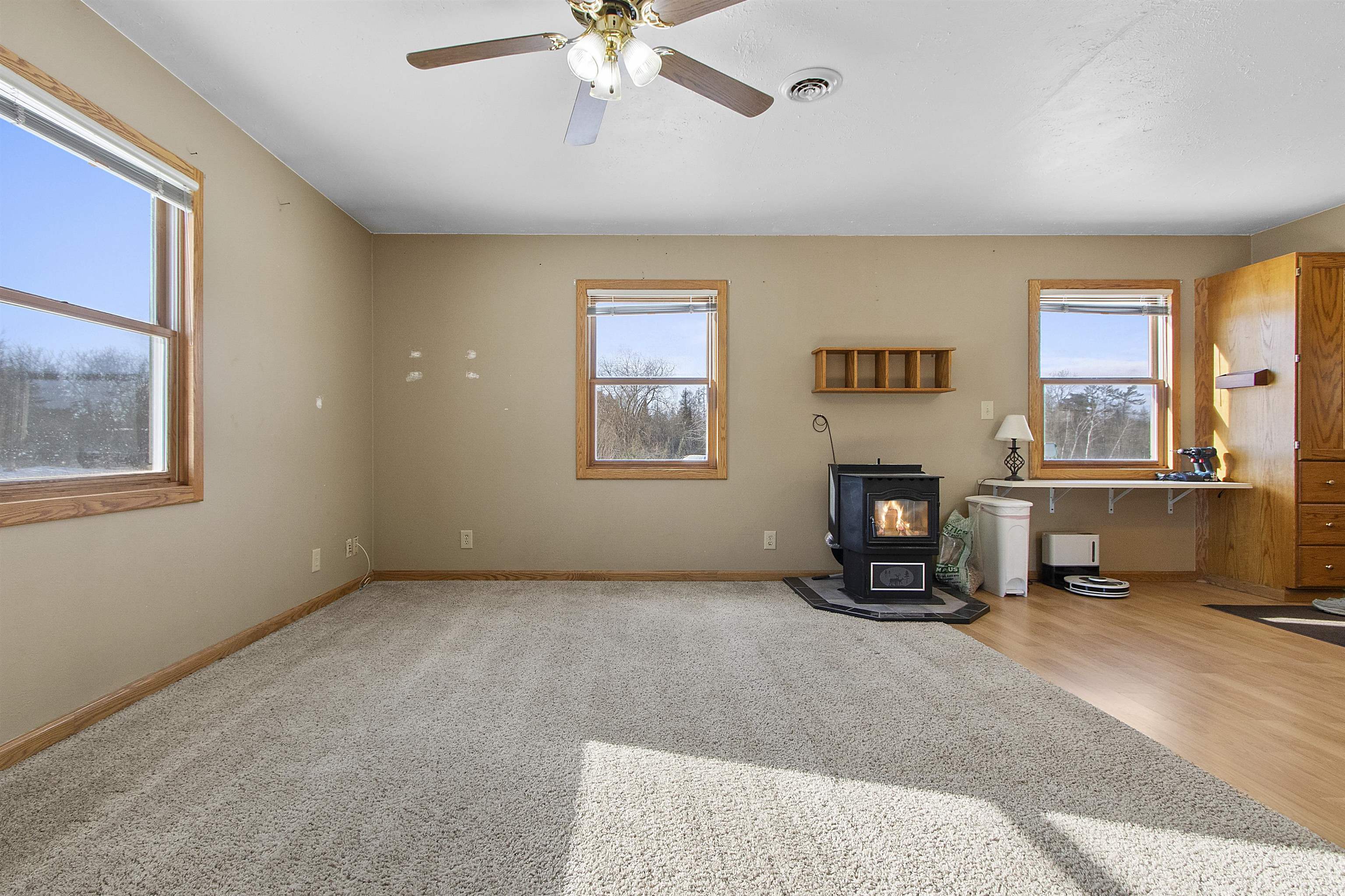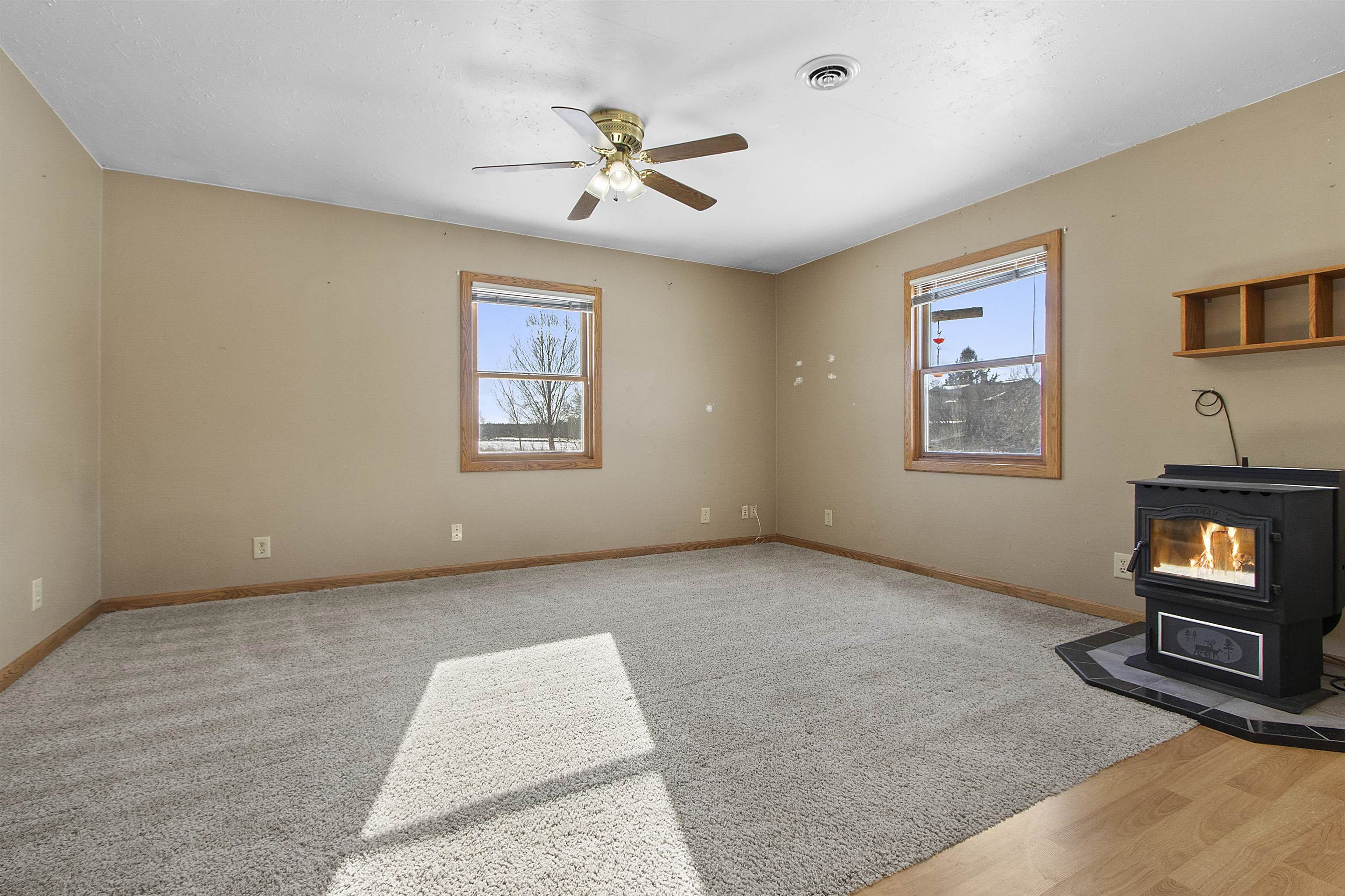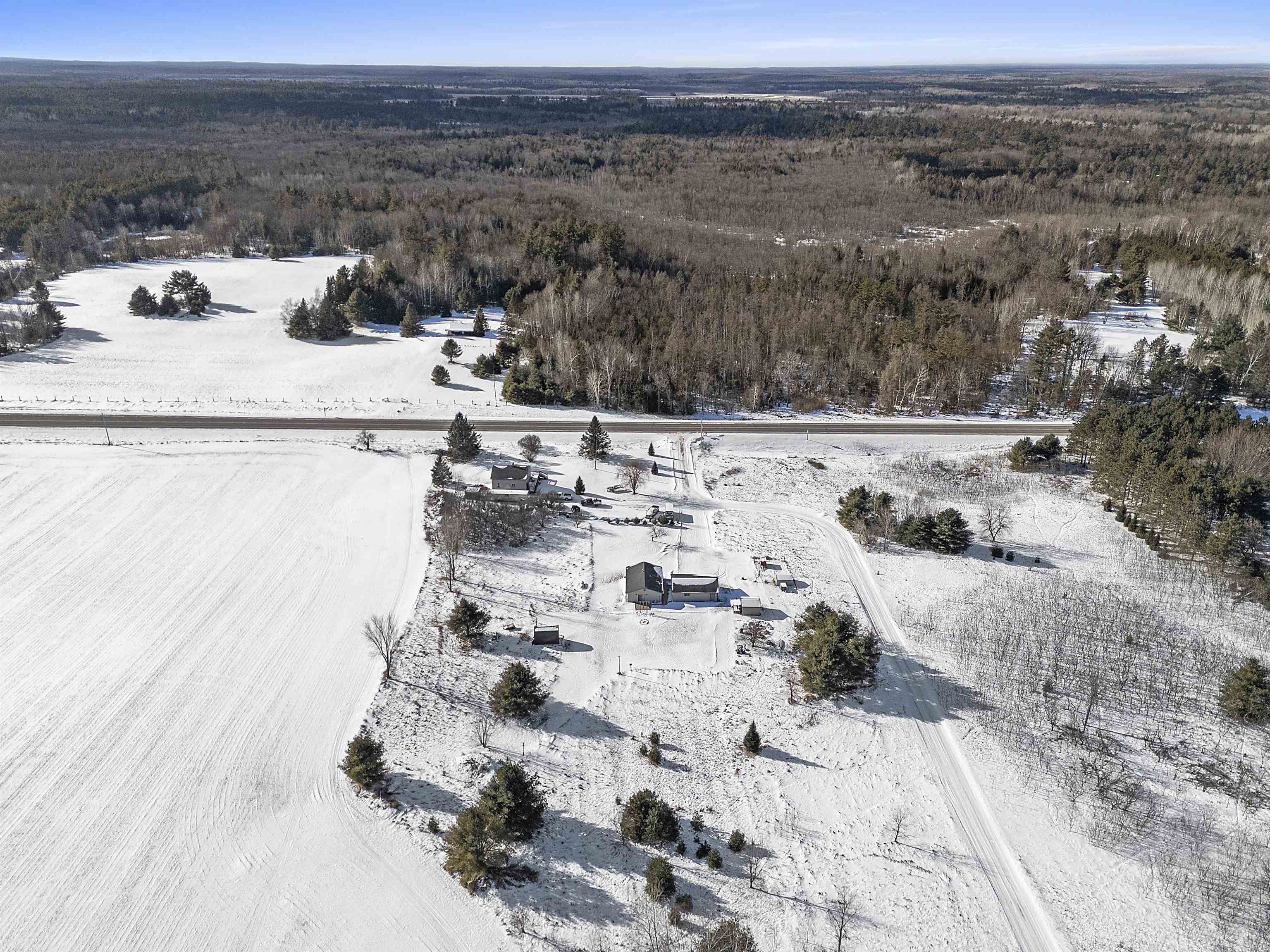 Close to trails and lakes is where you'll find this gem. Two-bedroom home on 2.53 acres with a 2.5 stall (32X24) garage. Rural residential zoning allows for some farm animals such as goats and chickens. Set back off the road for a more private setting. Anderson Lake and the Oconto County Trail System is just up the road. Plenty of space to park the snowmobile trailers or to build a pole shed for storing them. Open concept, forced air heating and a pellet stove. The back bedroom has patio doors leading out to the back patio.