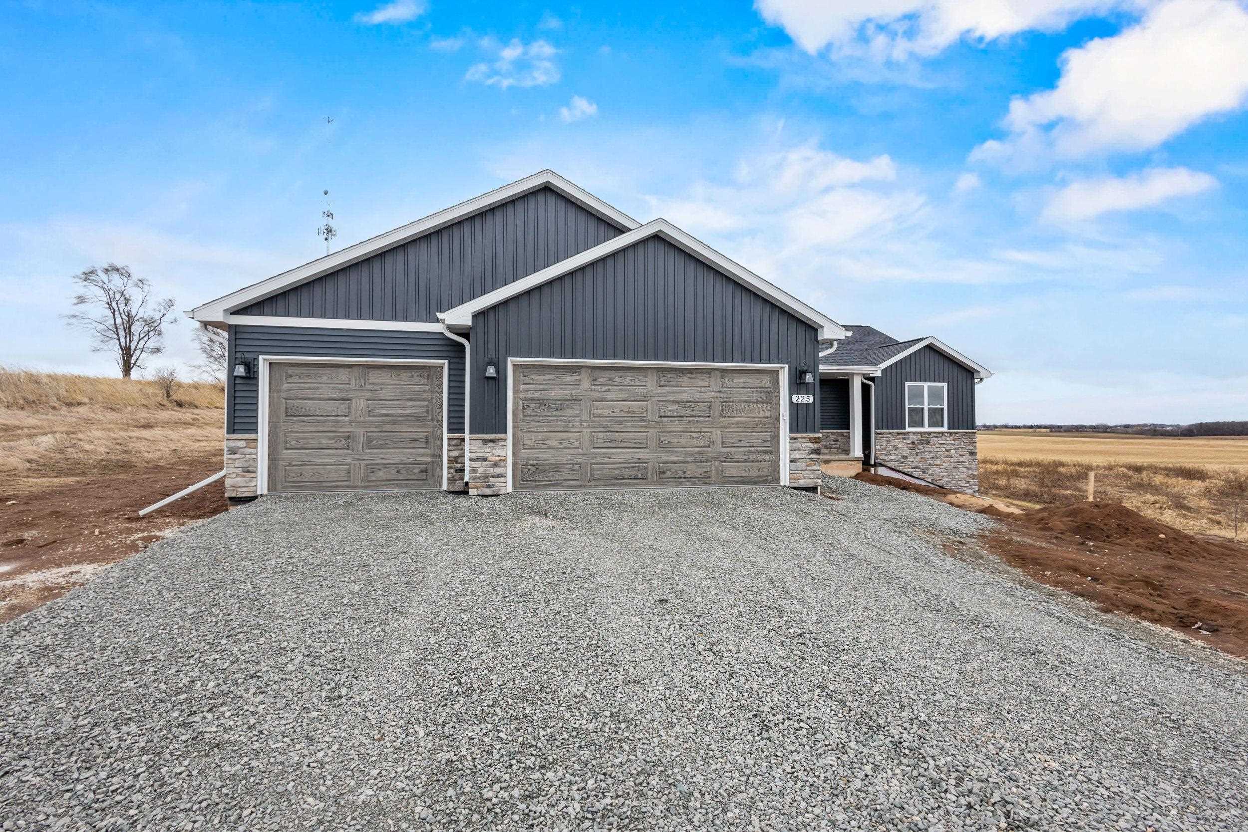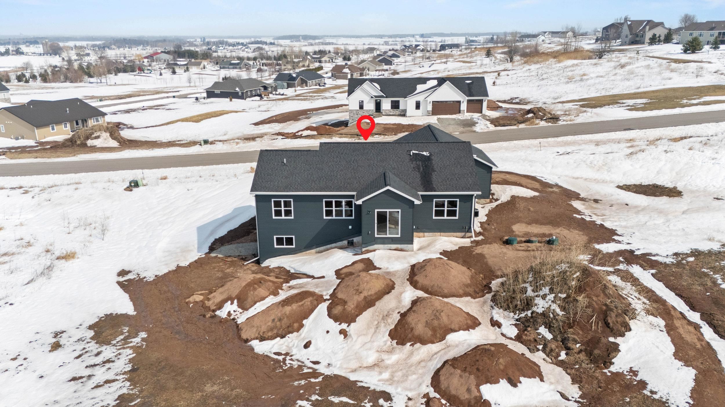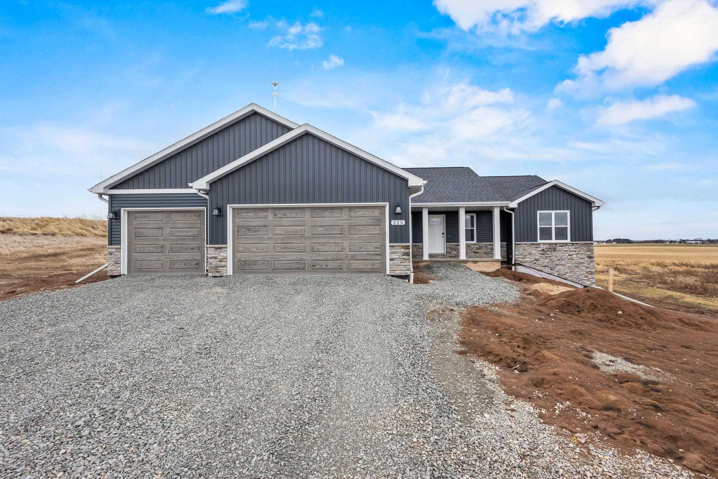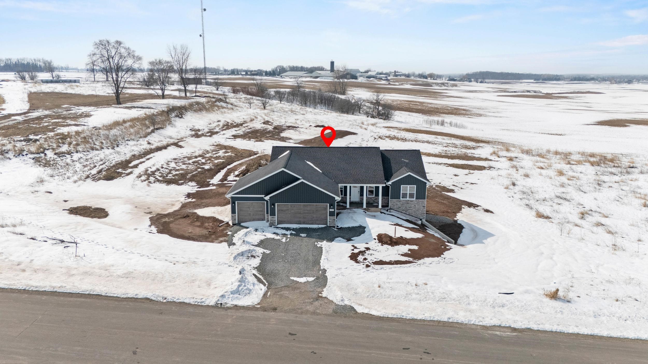 BUILT BY MEACHAM DEVELOPMENT, INC.-A FOCUS ON ENERGY CERTIFIED HOME. Step into this stunning property situated on a 1+ acre lot with unbelievable views of rolling hills. The kitchen features custom maple cabinets in Fawn stain, quartz countertops, & stunning tile backsplash. Relax next to your HH 55” Scion Trinity 3 Sided Linear Electric Fireplace surrounded from floor to ceiling with Niveo Volterra stone. A custom bench & shelving make this space complete! The primary suite is a private retreat. Unfinished LL HAS 9' CEILINGS is stubbed for a bathroom & FULL WALK-OUT for future expansion. Driveway apron is gravel. Water is a community well & there is a homeowner's association for the well. Stubbed for water softener. Water softener is recommended for this subdivision.