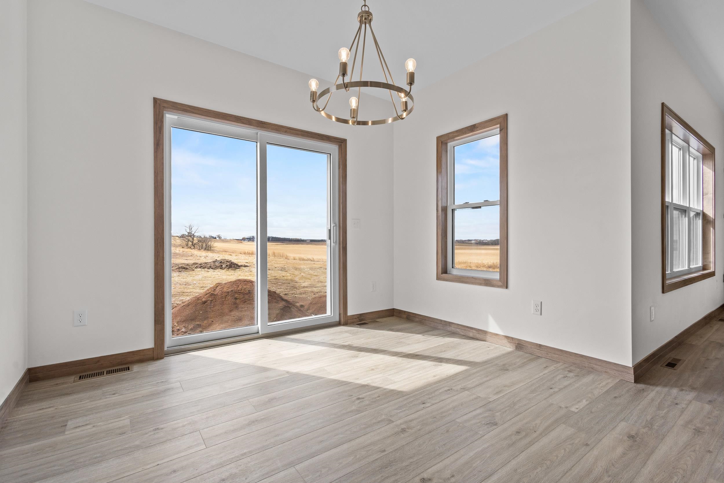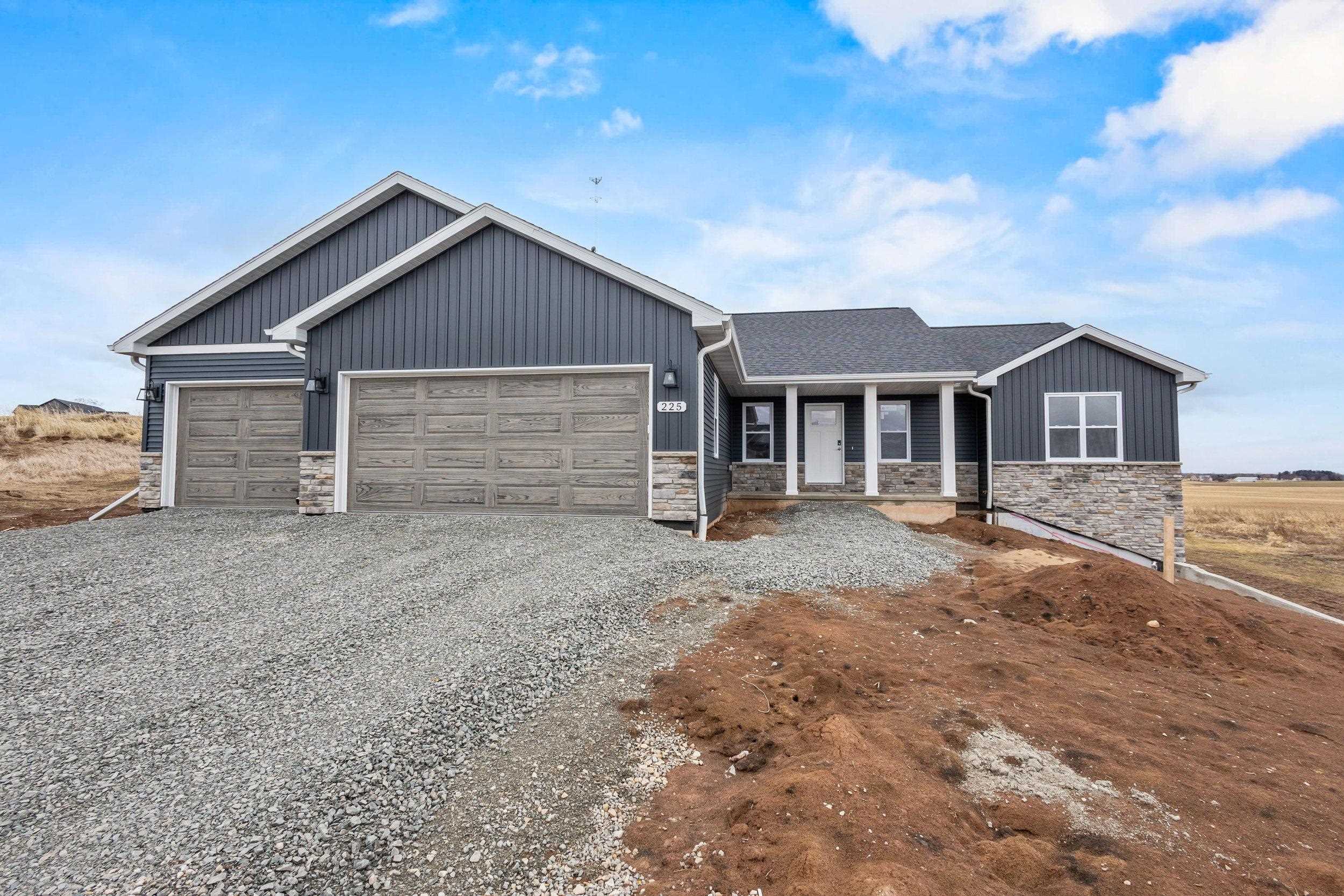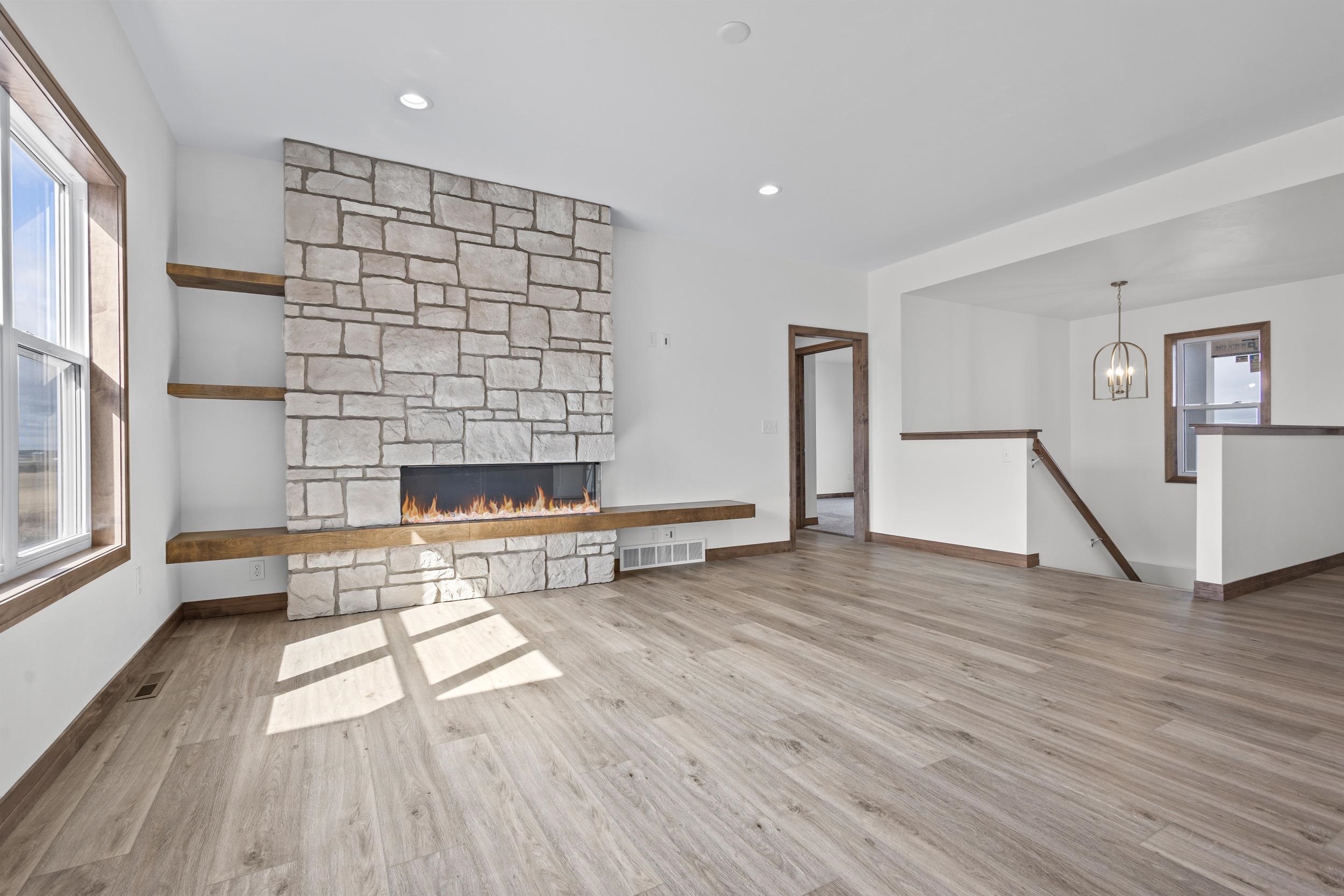 BUILT BY MEACHAM DEVELOPMENT, INC.-A FOCUS ON ENERGY CERTIFIED HOME. Step into this stunning property situated on a 1+ acre lot with unbelievable views of rolling hills. The kitchen features custom maple cabinets in Fawn stain, quartz countertops, & stunning tile backsplash. Relax next to your HH 55” Scion Trinity 3 Sided Linear Electric Fireplace surrounded from floor to ceiling with Niveo Volterra stone. A custom bench & shelving make this space complete! The primary suite is a private retreat. Unfinished LL HAS 9' CEILINGS is stubbed for a bathroom & FULL WALK-OUT for future expansion. Driveway apron is gravel. Water is a community well & there is a homeowner's association for the well. Stubbed for water softener. Water softener is recommended for this subdivision.
