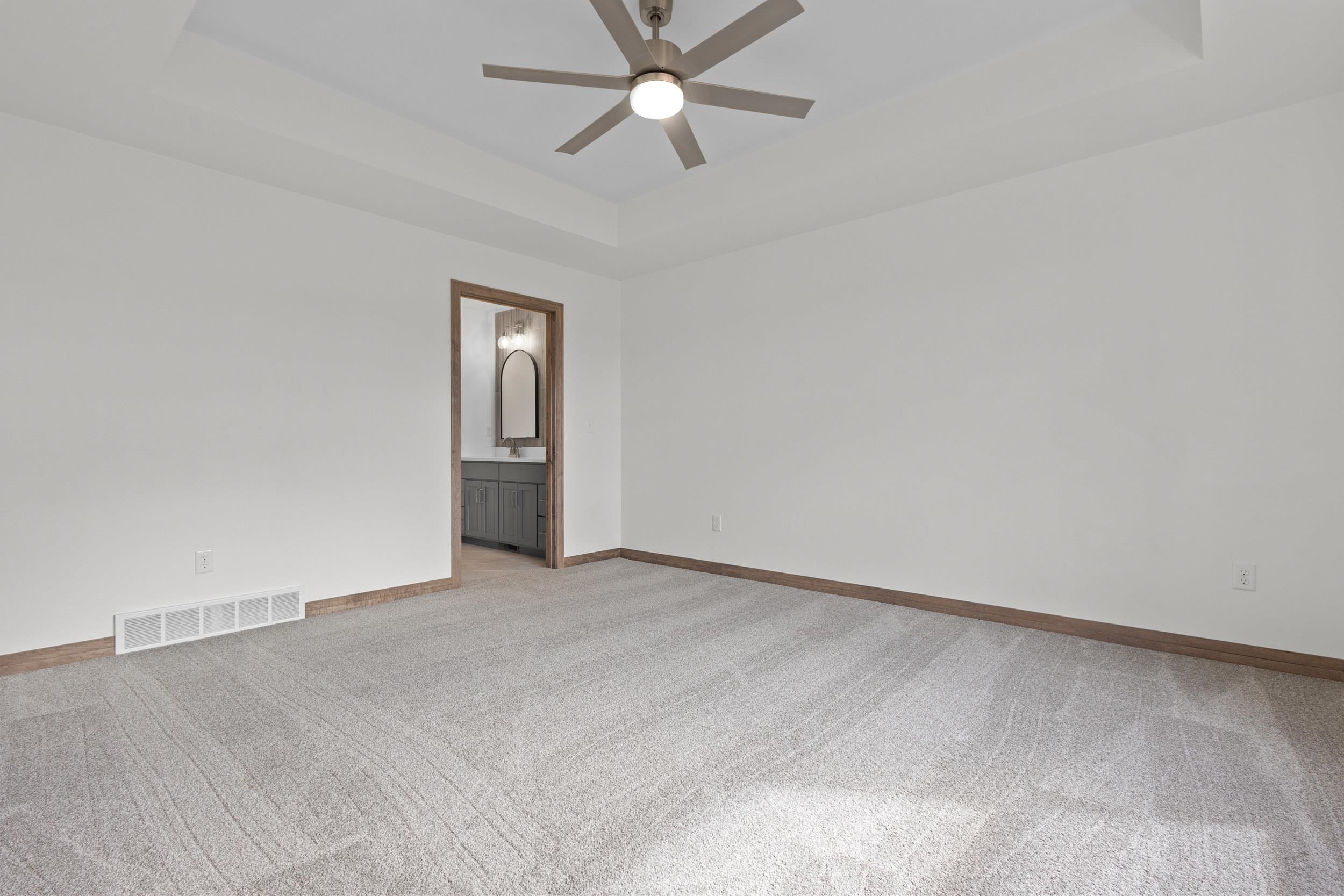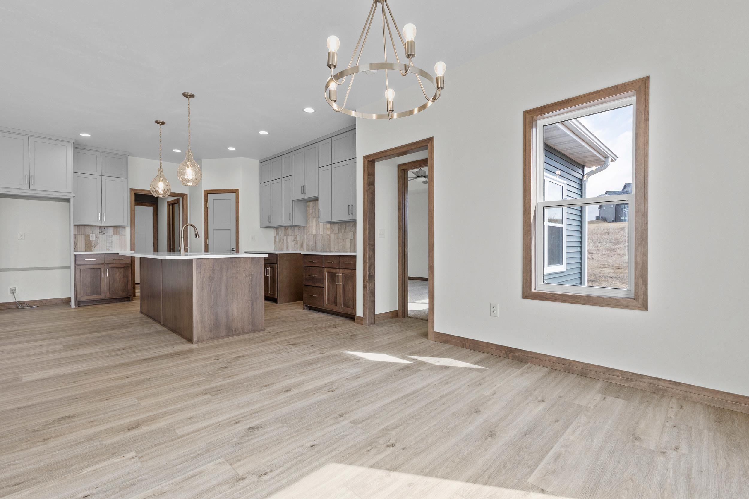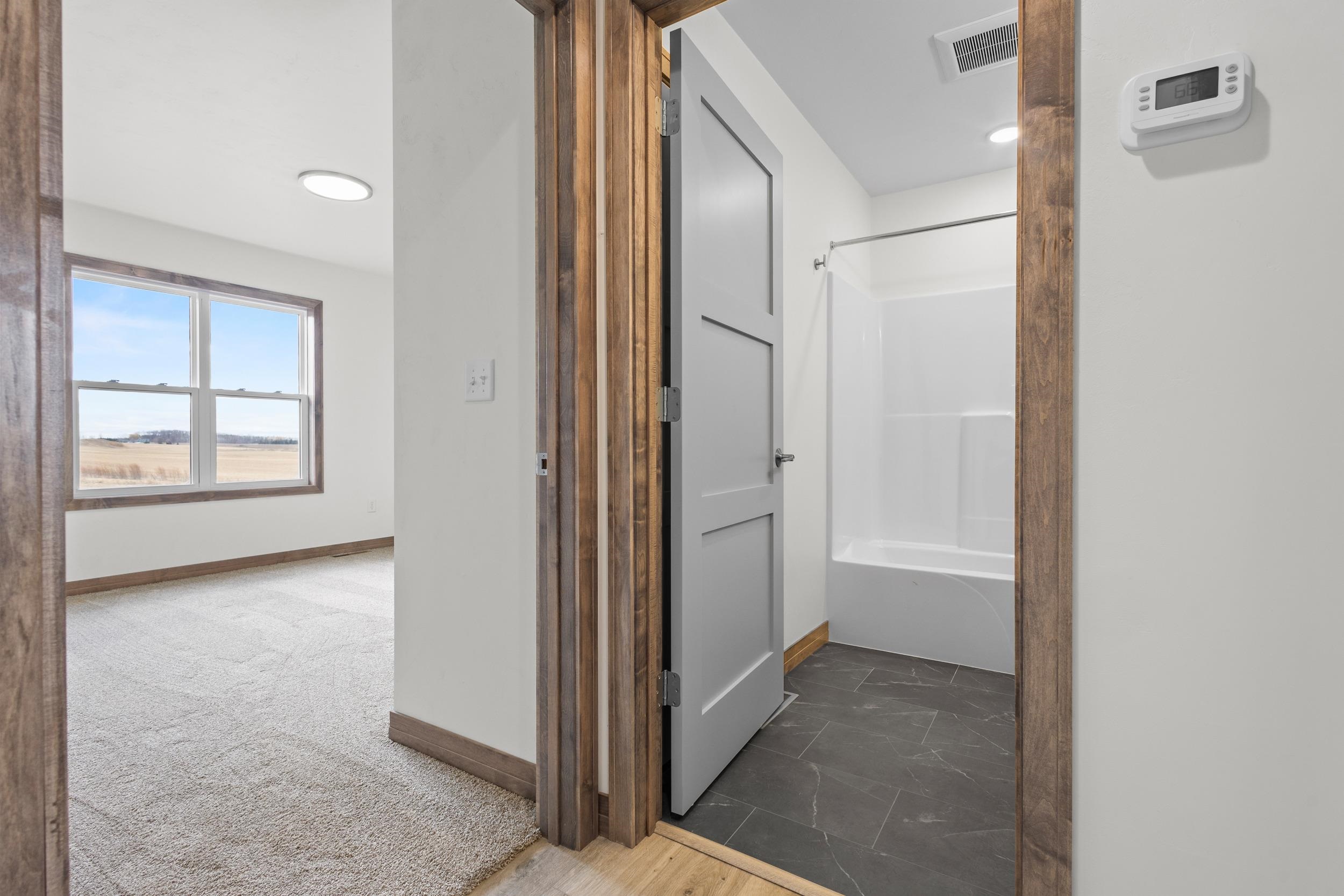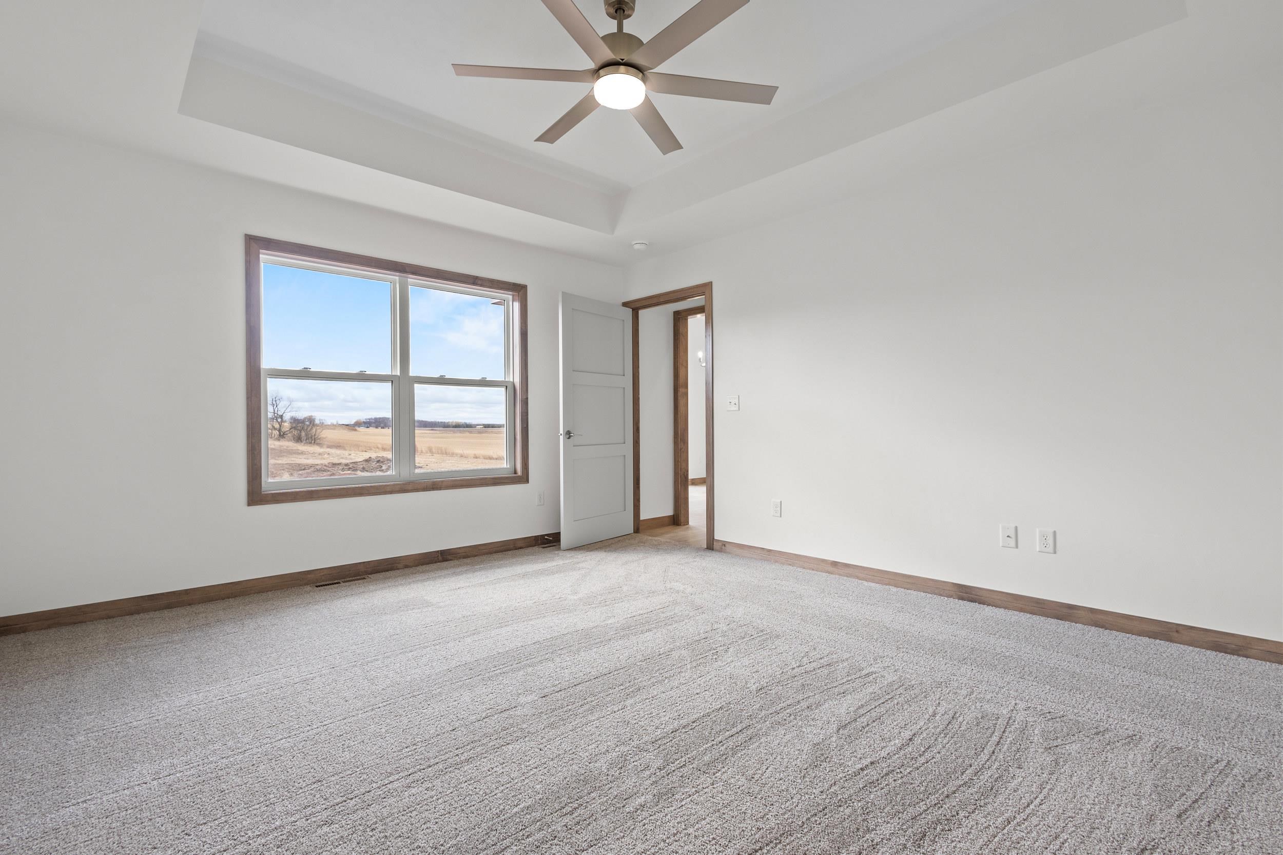 BUILT BY MEACHAM DEVELOPMENT, INC.-A FOCUS ON ENERGY CERTIFIED HOME. Step into this stunning property situated on a 1+ acre lot with unbelievable views of rolling hills. The kitchen features custom maple cabinets in Fawn stain, quartz countertops, & stunning tile backsplash. Relax next to your HH 55” Scion Trinity 3 Sided Linear Electric Fireplace surrounded from floor to ceiling with Niveo Volterra stone. A custom bench & shelving make this space complete! The primary suite is a private retreat. Unfinished LL HAS 9' CEILINGS is stubbed for a bathroom & FULL WALK-OUT for future expansion. Driveway apron is gravel. Water is a community well & there is a homeowner's association for the well. Stubbed for water softener. Water softener is recommended for this subdivision.
