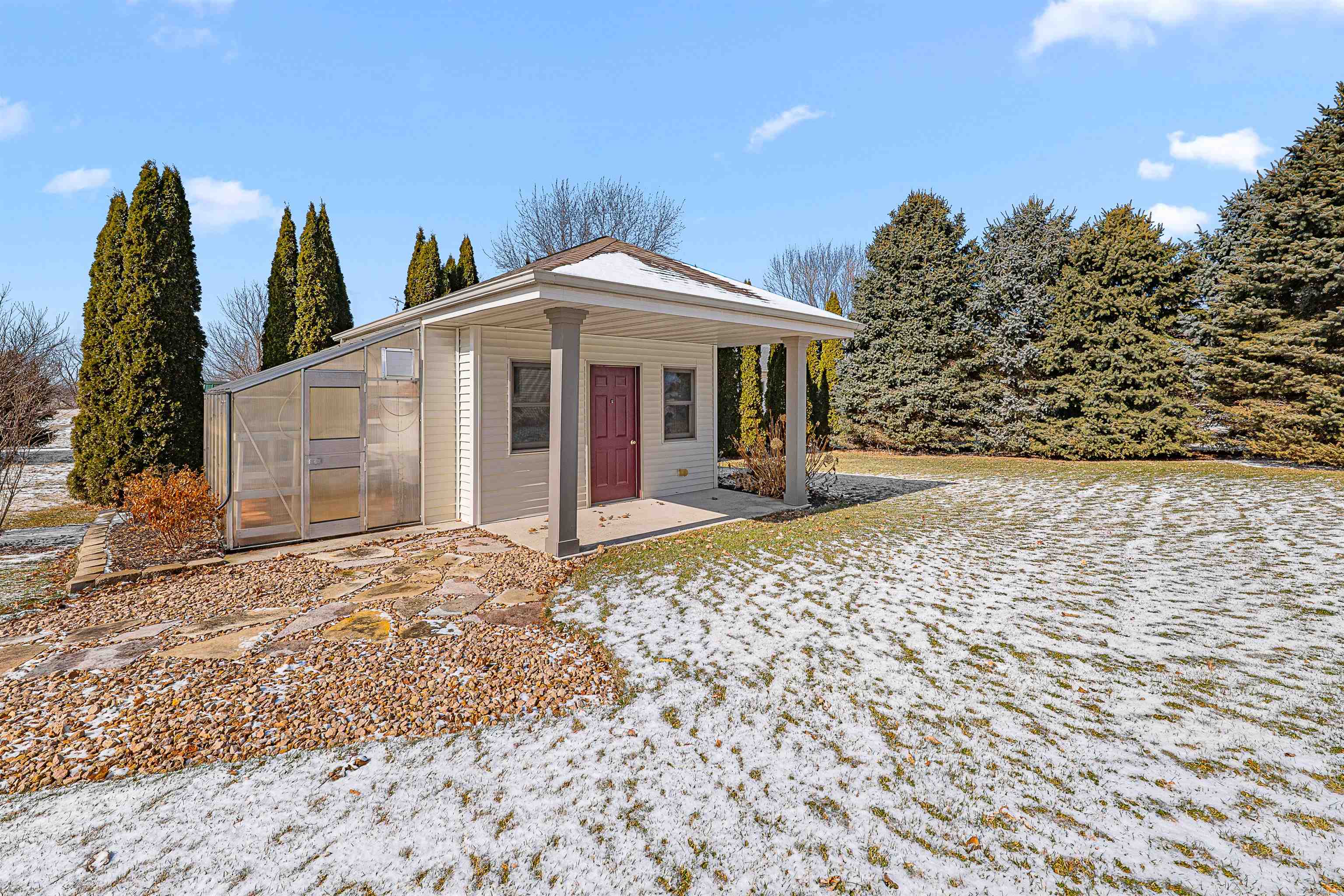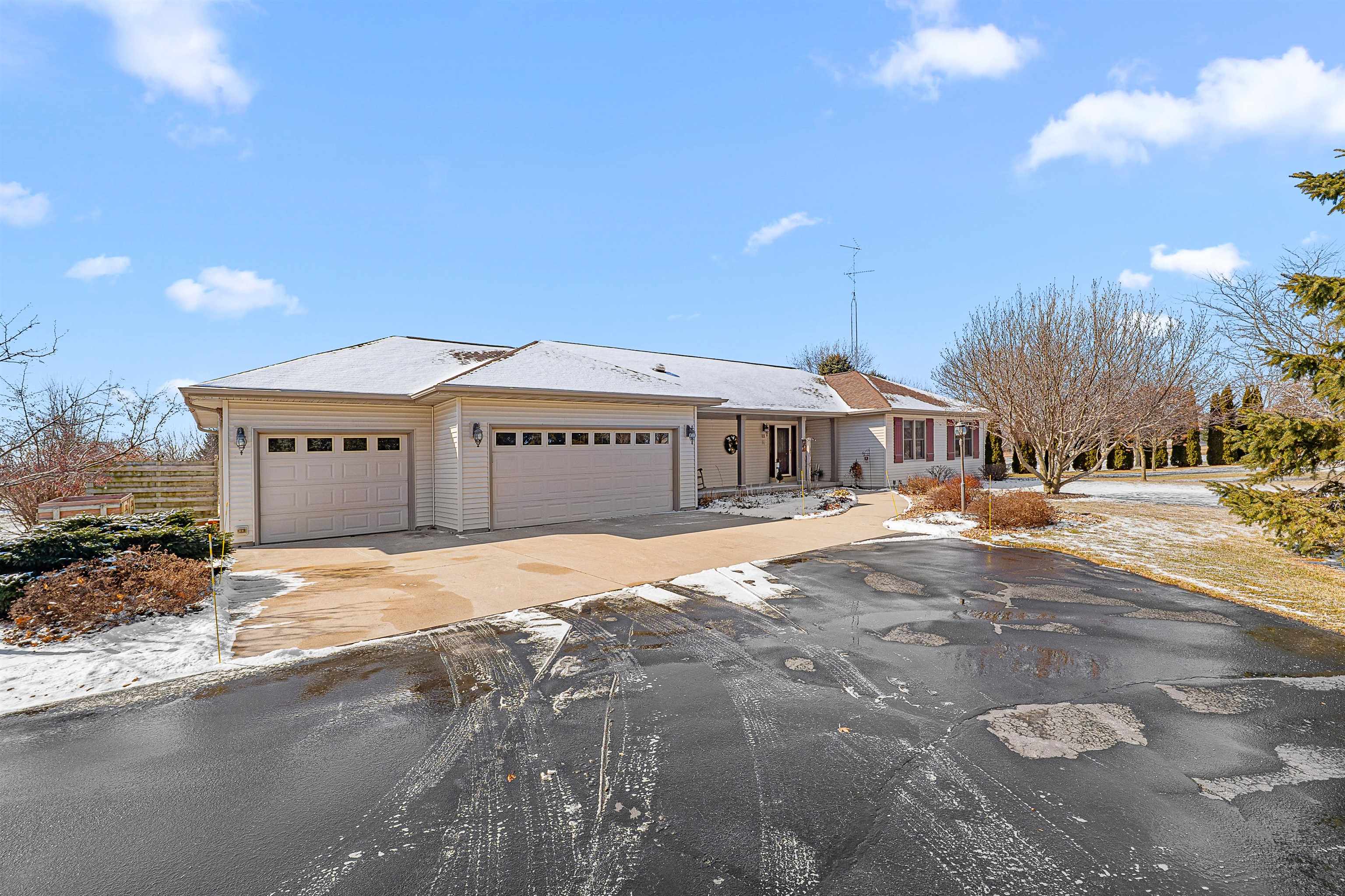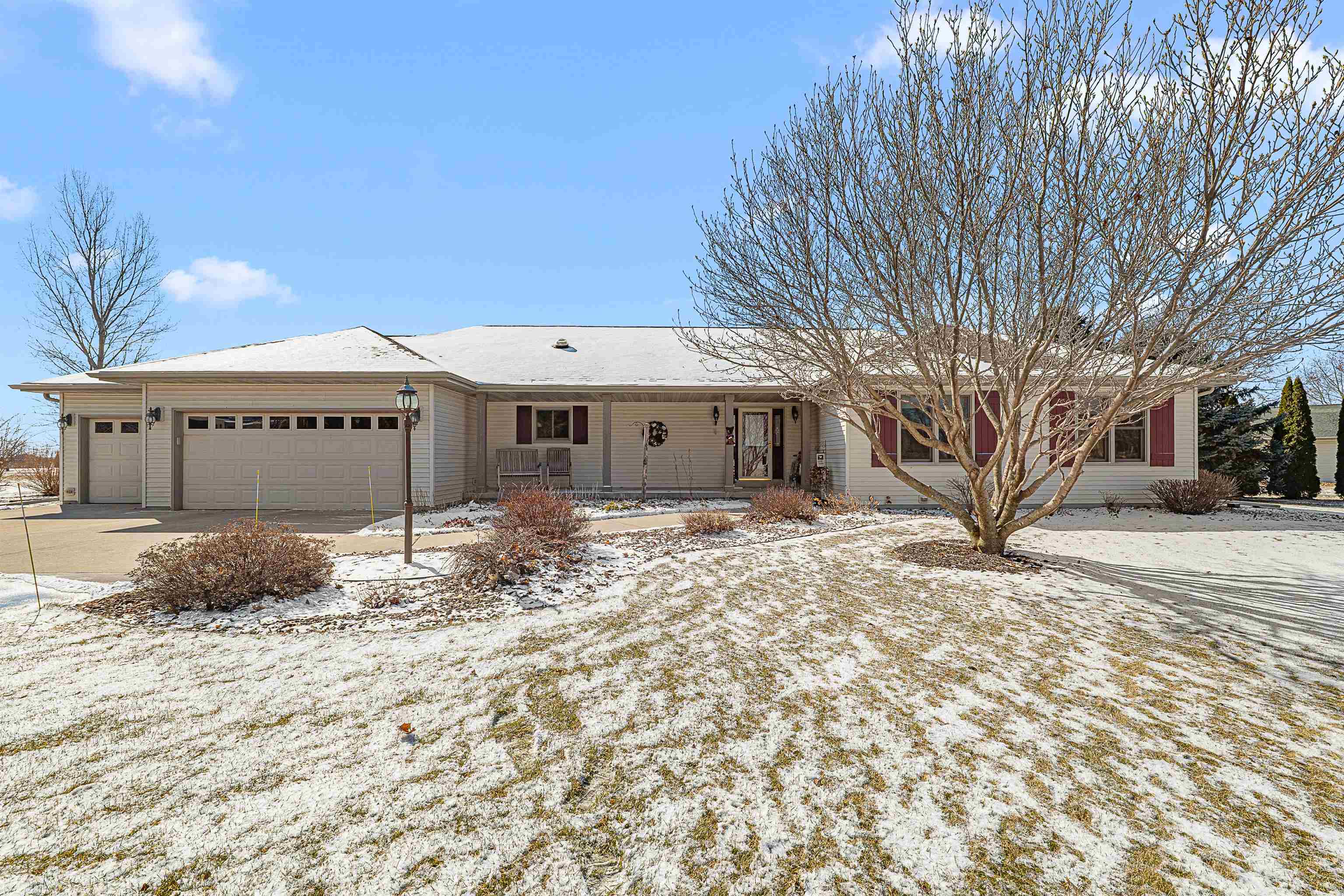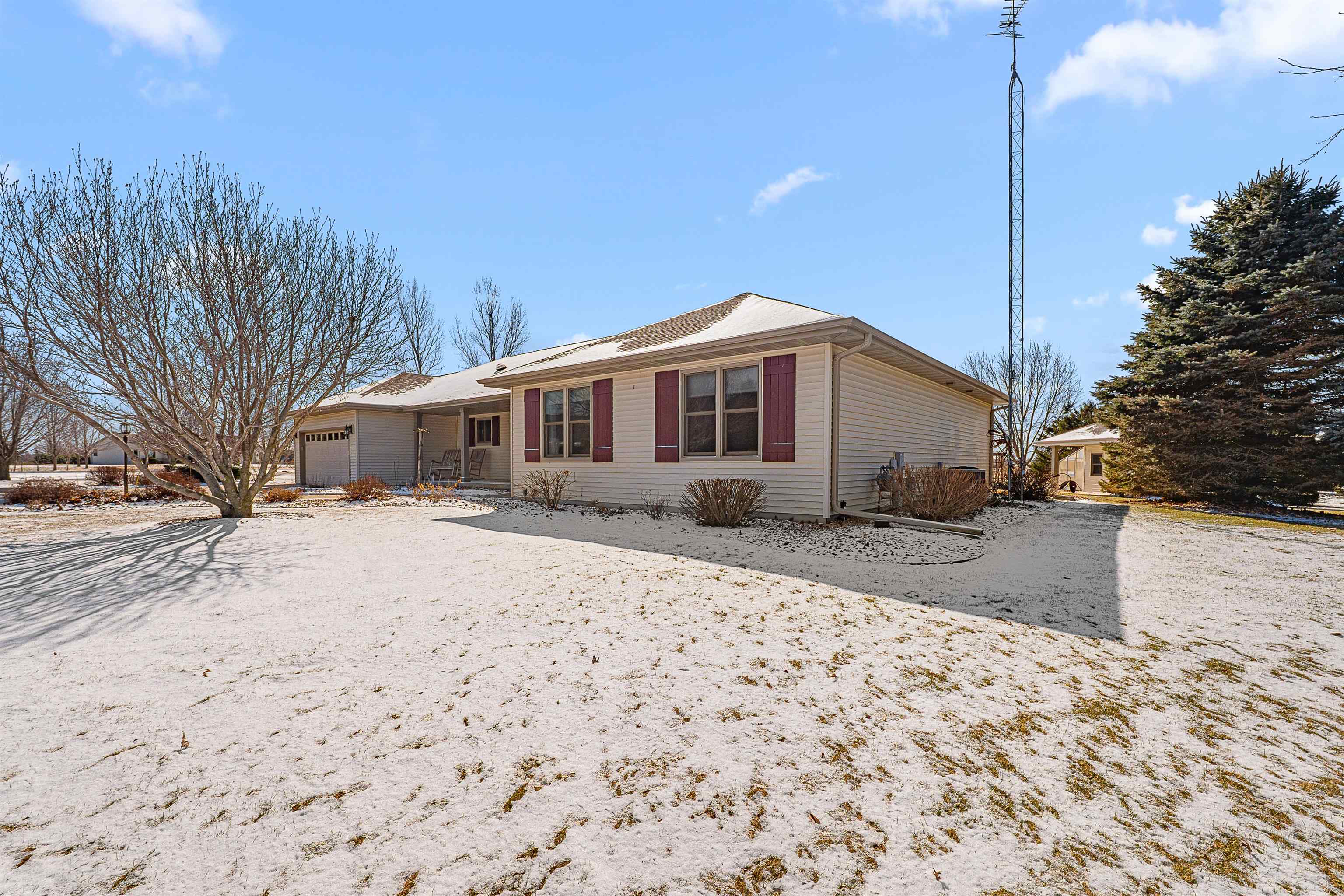 Step into this beautiful 3-bedroom, 2.5-bath ranch located less than 10 minutes from Fond du Lac. Enjoy a spacious kitchen with ample storage, a stunning four-seasons room filled with natural light, and a large living room featuring a cozy gas fireplace. The primary suite offers a private en suite bathroom for your comfort and convenience. The finished lower level provides additional living space, including a versatile office or potential fourth bedroom.Outside, you’ll find an impressive 1.58 acre lot full of mature trees-offering beauty and privacy, plus torage shed with attached greenhouse. All windows, and major items have been updated. Please give until Monday, March 2nd for binding acceptance.