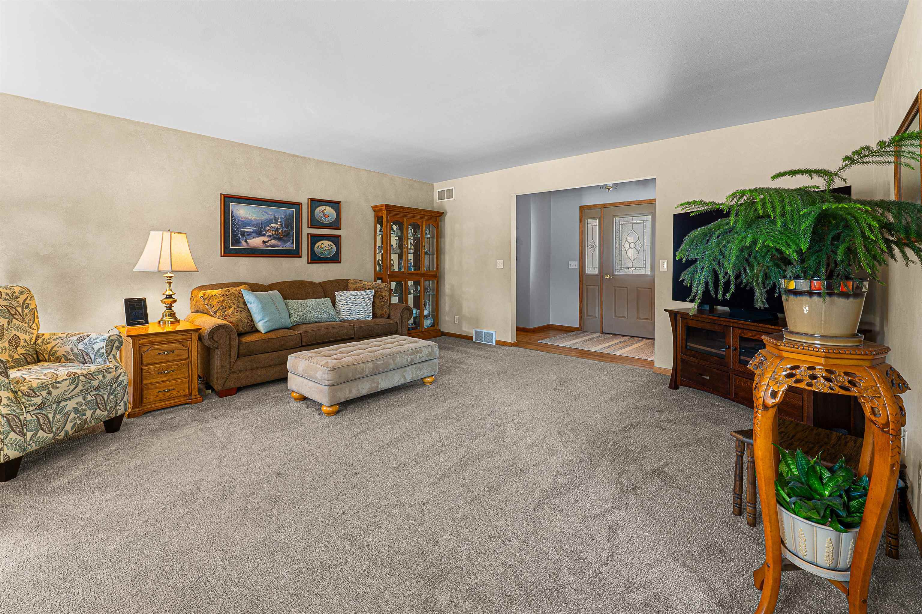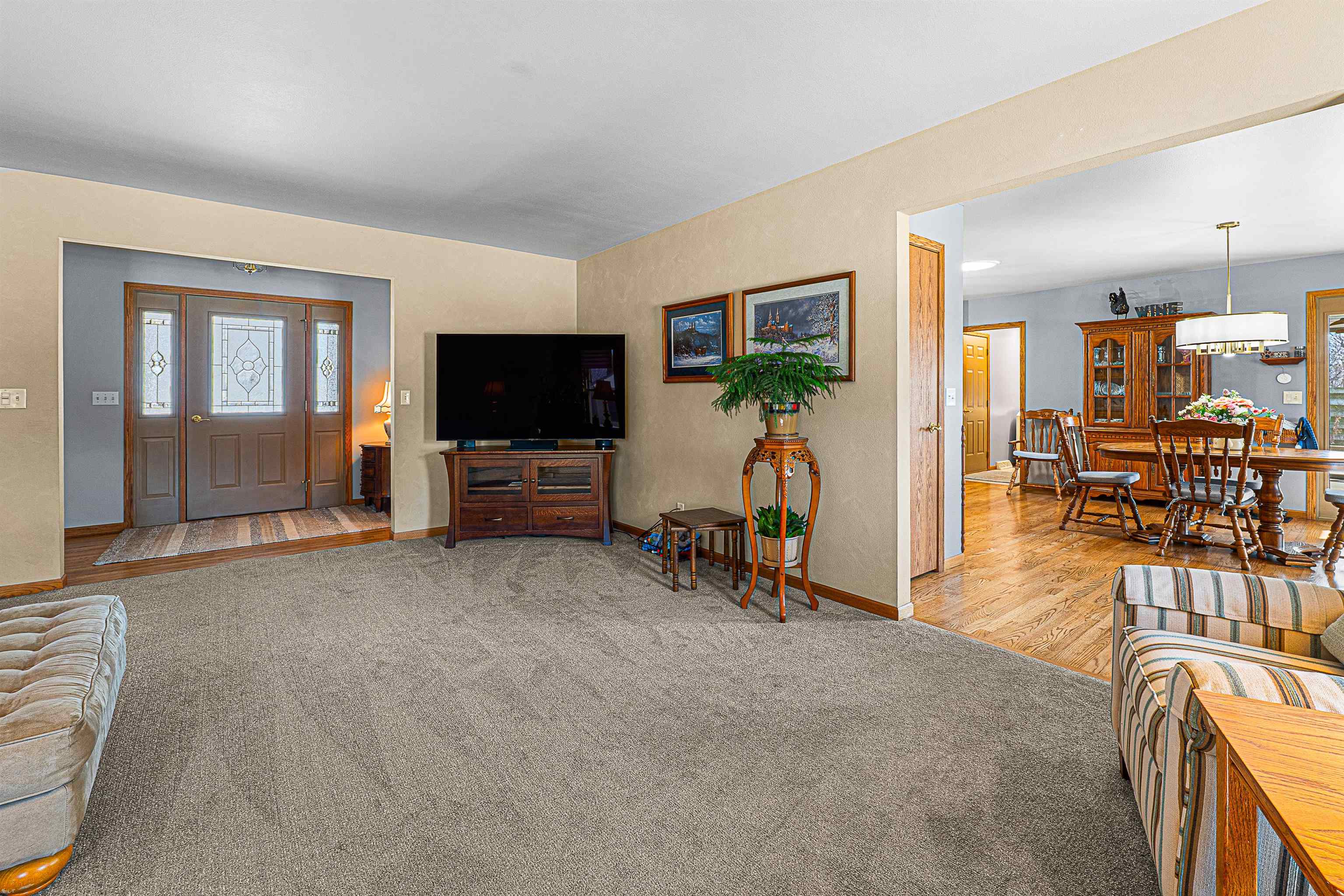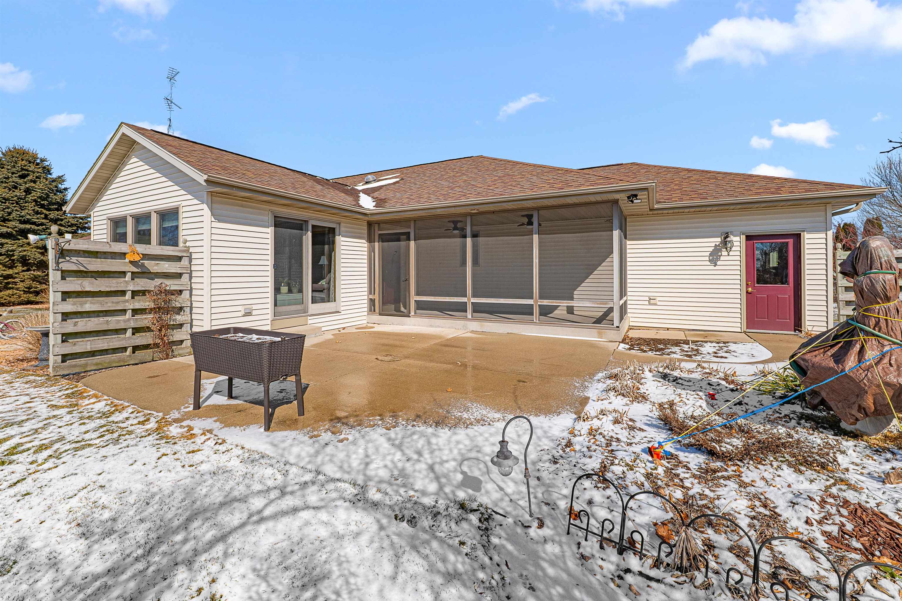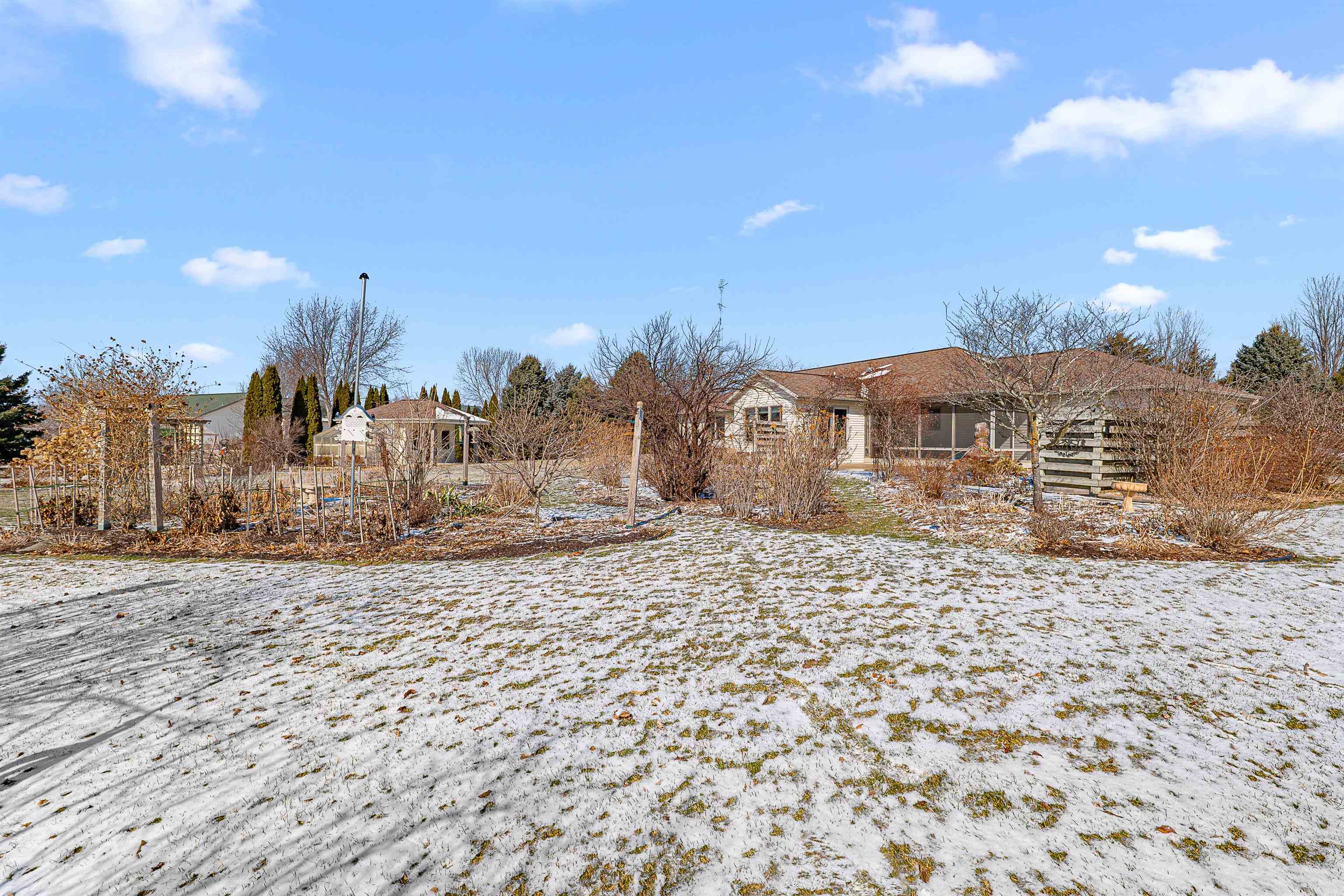 Step into this beautiful 3-bedroom, 2.5-bath ranch located less than 10 minutes from Fond du Lac. Enjoy a spacious kitchen with ample storage, a stunning four-seasons room filled with natural light, and a large living room featuring a cozy gas fireplace. The primary suite offers a private en suite bathroom for your comfort and convenience. The finished lower level provides additional living space, including a versatile office or potential fourth bedroom.Outside, you’ll find an impressive 1.58 acre lot full of mature trees-offering beauty and privacy, plus torage shed with attached greenhouse. All windows, and major items have been updated. Please give until Monday, March 2nd for binding acceptance.