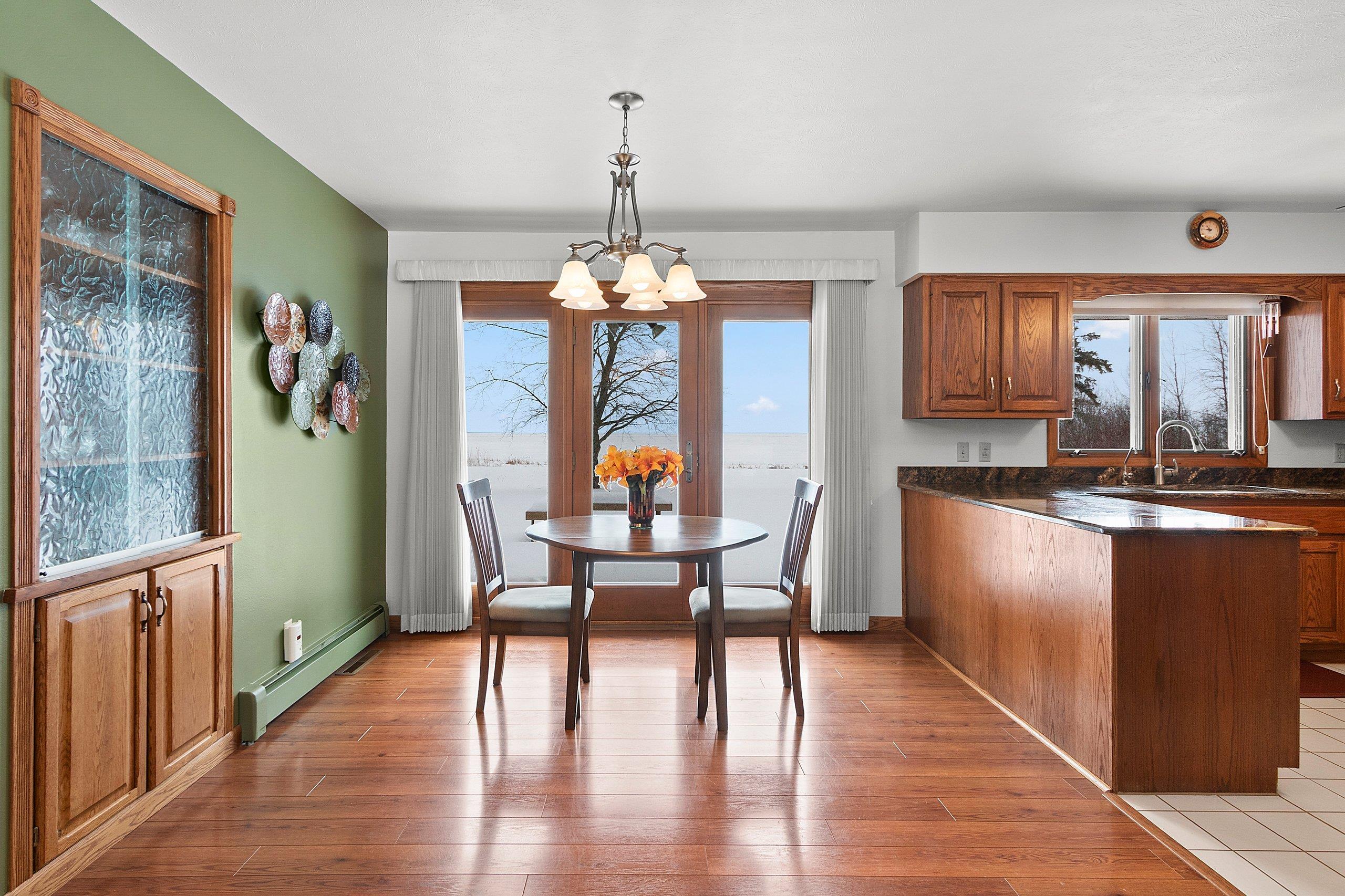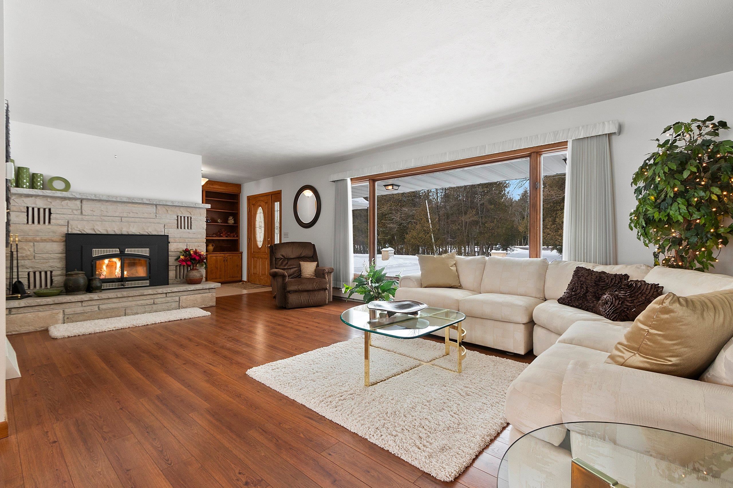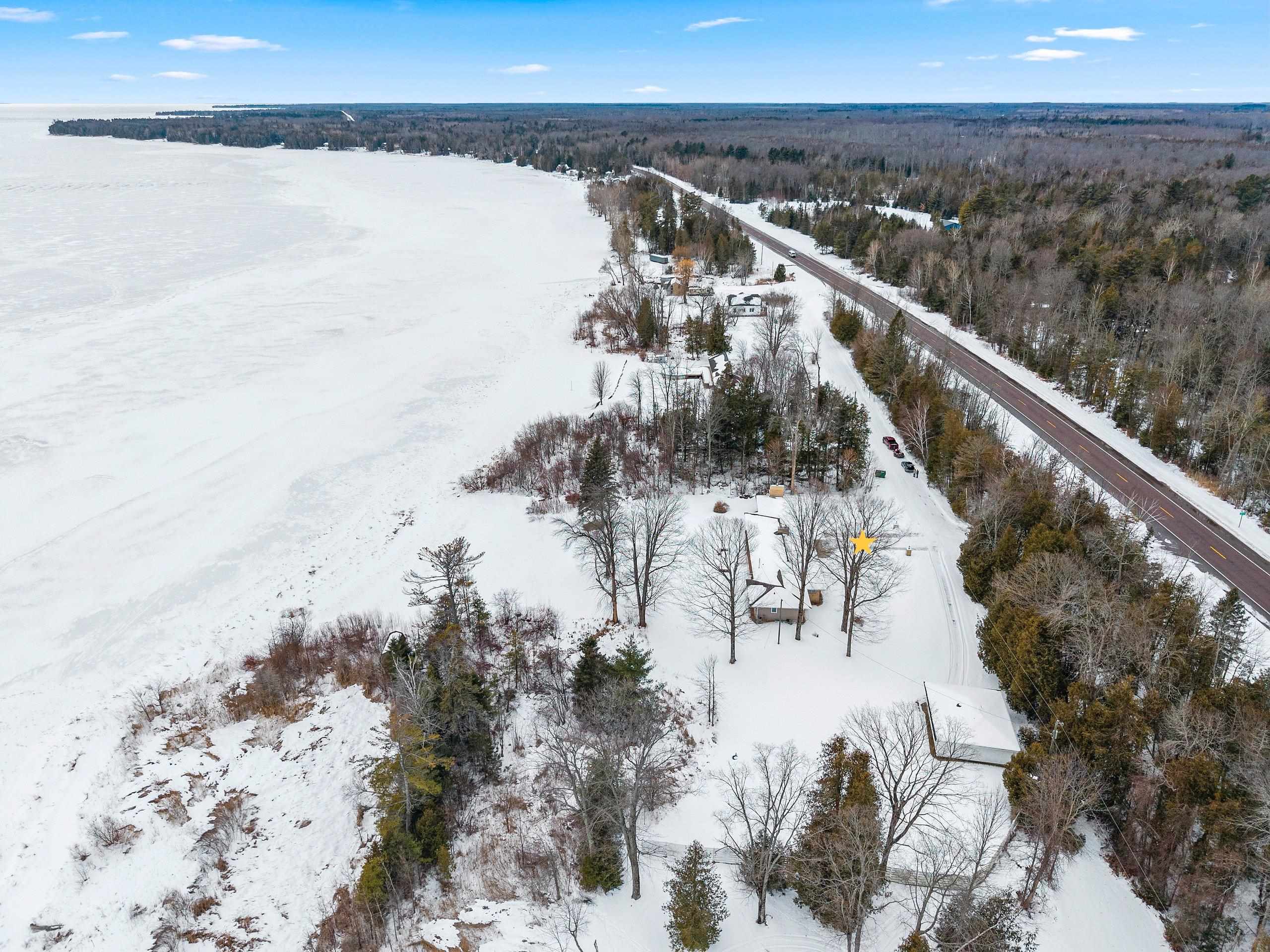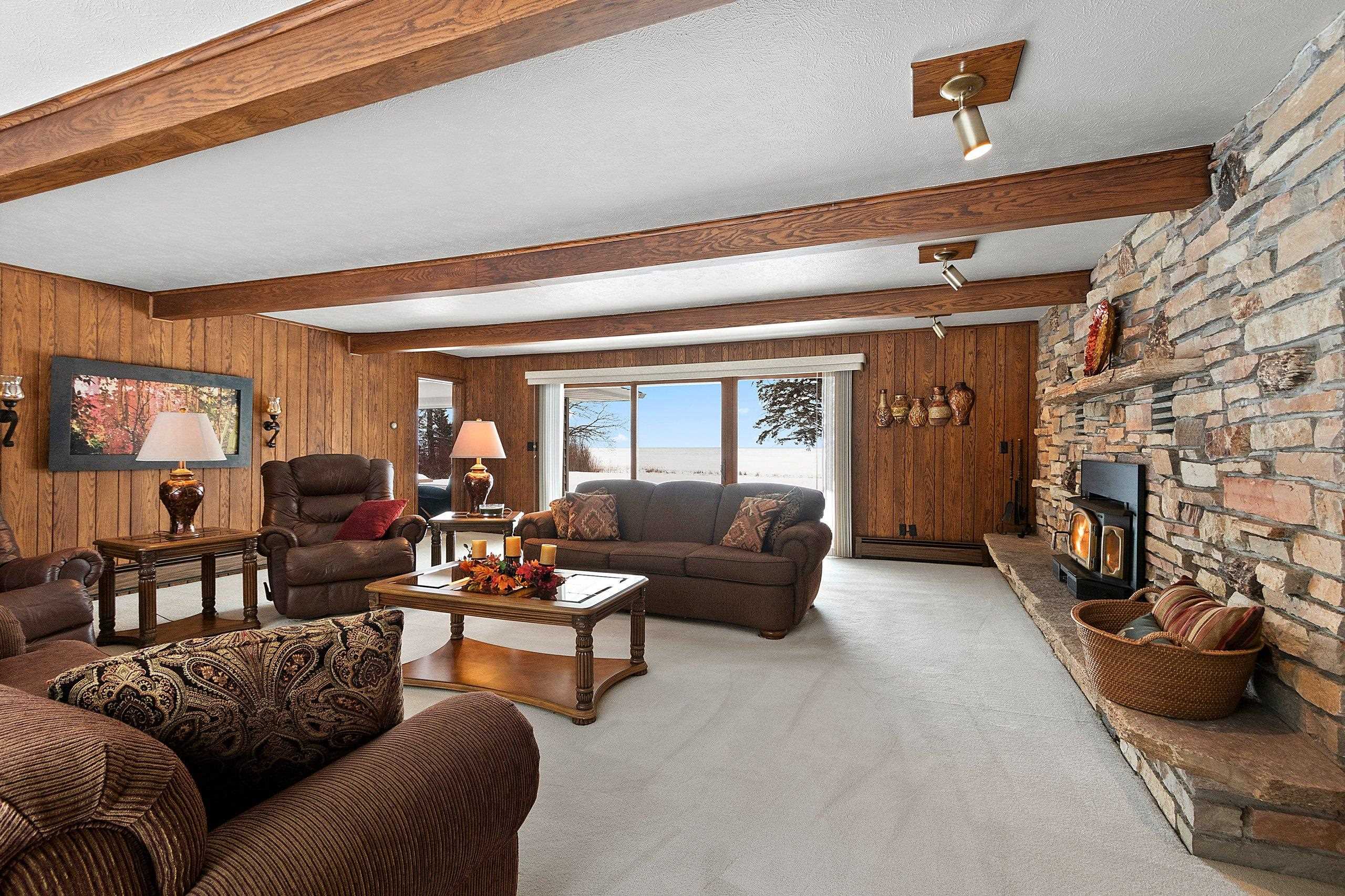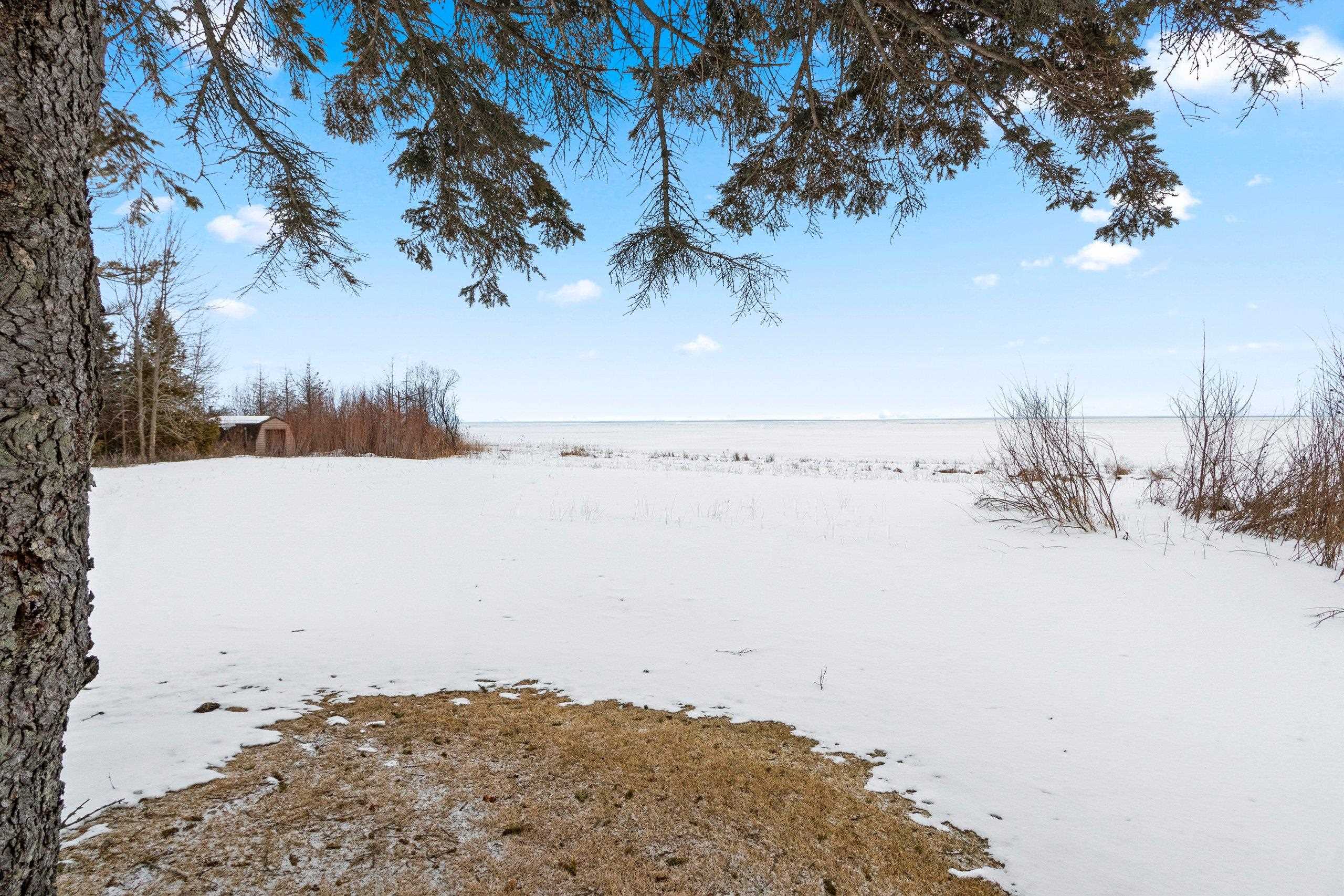 Spacious 2+ bed, 2.5 bath ranch offering approx. 2,600 sq ft on 3 acres with 290 feet of Green Bay frontage. Tucked back from the road for added privacy, this professionally maintained property features stunning water views, a large primary suite with soaking tub, dual vanities, and walk-in closet, plus both living and family rooms with fireplaces and a dedicated library/office. The family room offers flexibility to add additional bedrooms if needed. Beautiful kitchen cabinetry w/granite countertops and a back deck with beautiful views of the bay. Partial basement with dyke system, new mound septic (2023), roof replaced (2019), Generac backup generator, attached 2-car garage and additional detached 2-car garage. Conveniently located near Cedar River Marina, campgrounds, and recreation.