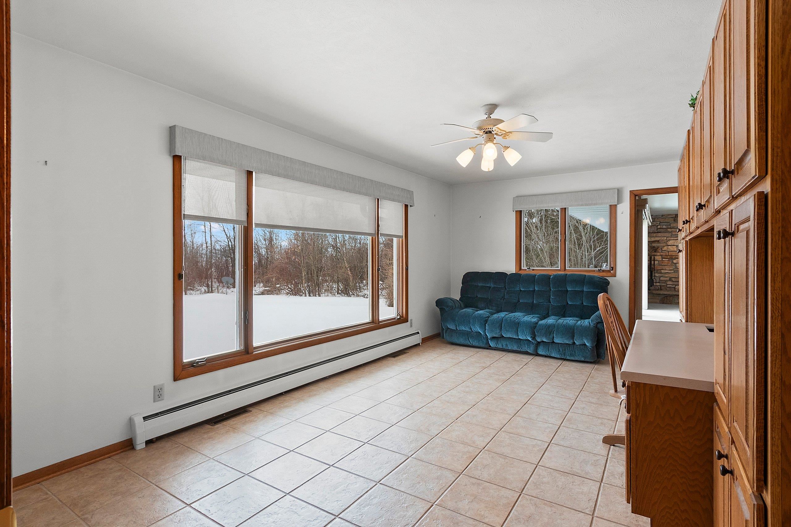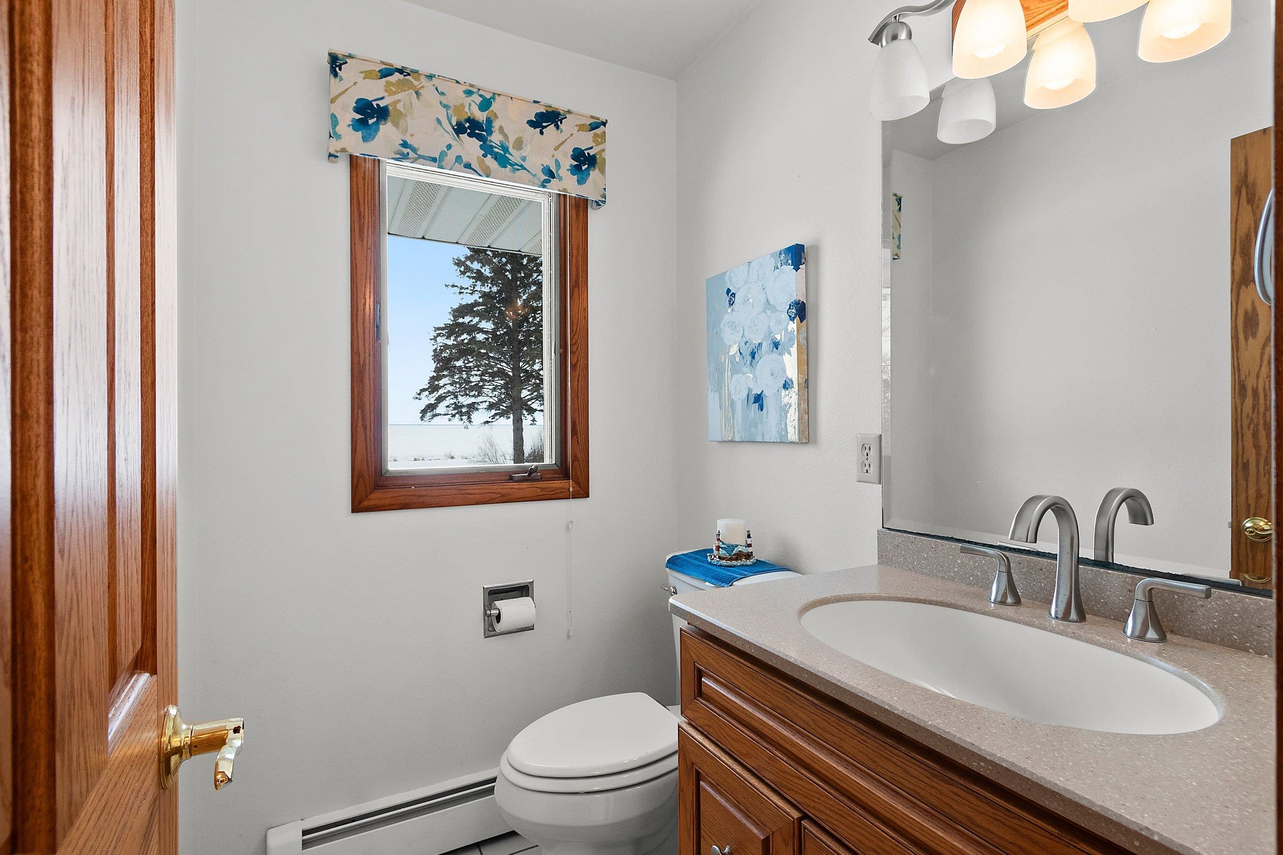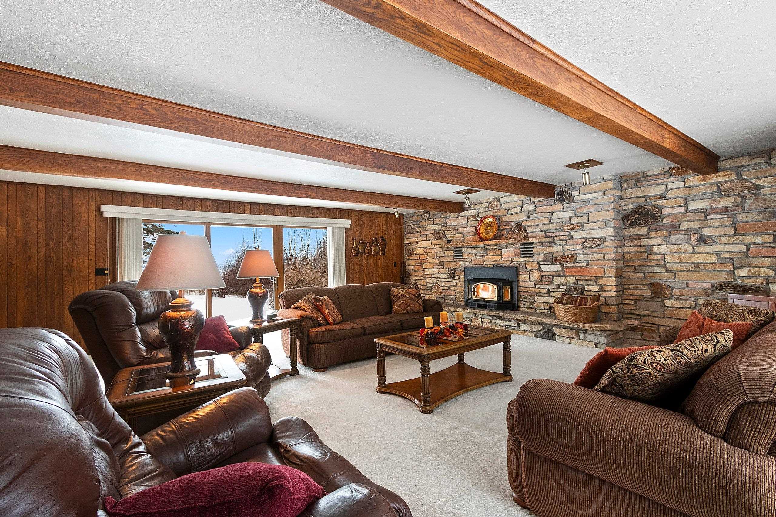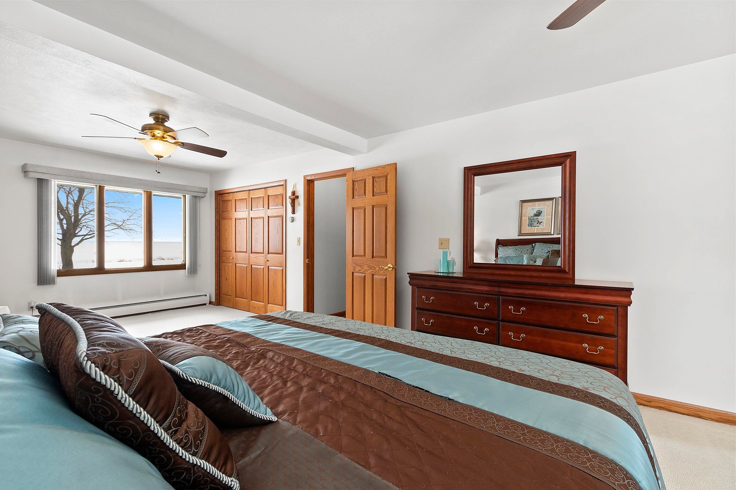 Spacious 2+ bed, 2.5 bath ranch offering approx. 2,600 sq ft on 3 acres with 290 feet of Green Bay frontage. Tucked back from the road for added privacy, this professionally maintained property features stunning water views, a large primary suite with soaking tub, dual vanities, and walk-in closet, plus both living and family rooms with fireplaces and a dedicated library/office. The family room offers flexibility to add additional bedrooms if needed. Beautiful kitchen cabinetry w/granite countertops and a back deck with beautiful views of the bay. Partial basement with dyke system, new mound septic (2023), roof replaced (2019), Generac backup generator, attached 2-car garage and additional detached 2-car garage. Conveniently located near Cedar River Marina, campgrounds, and recreation.