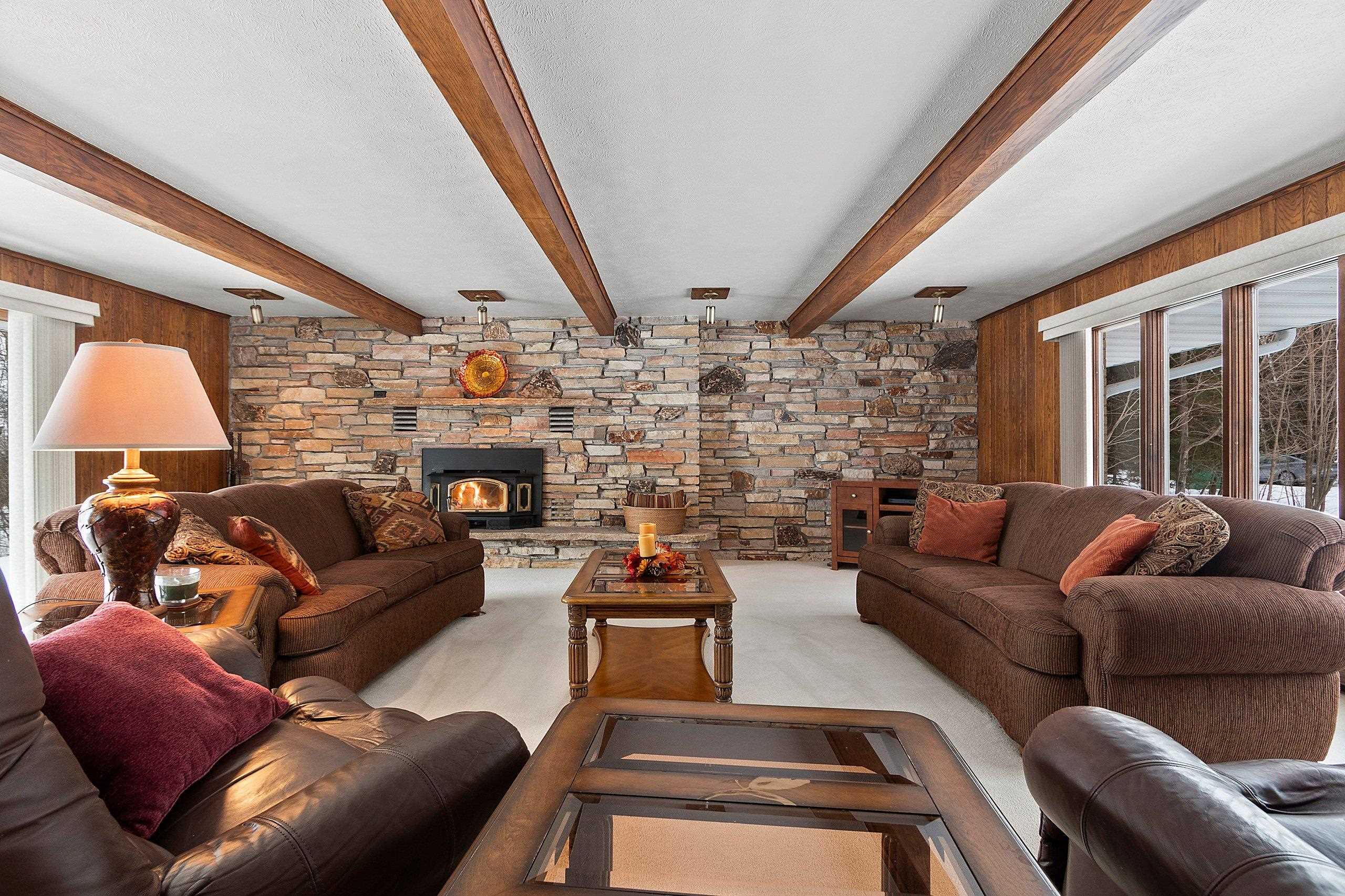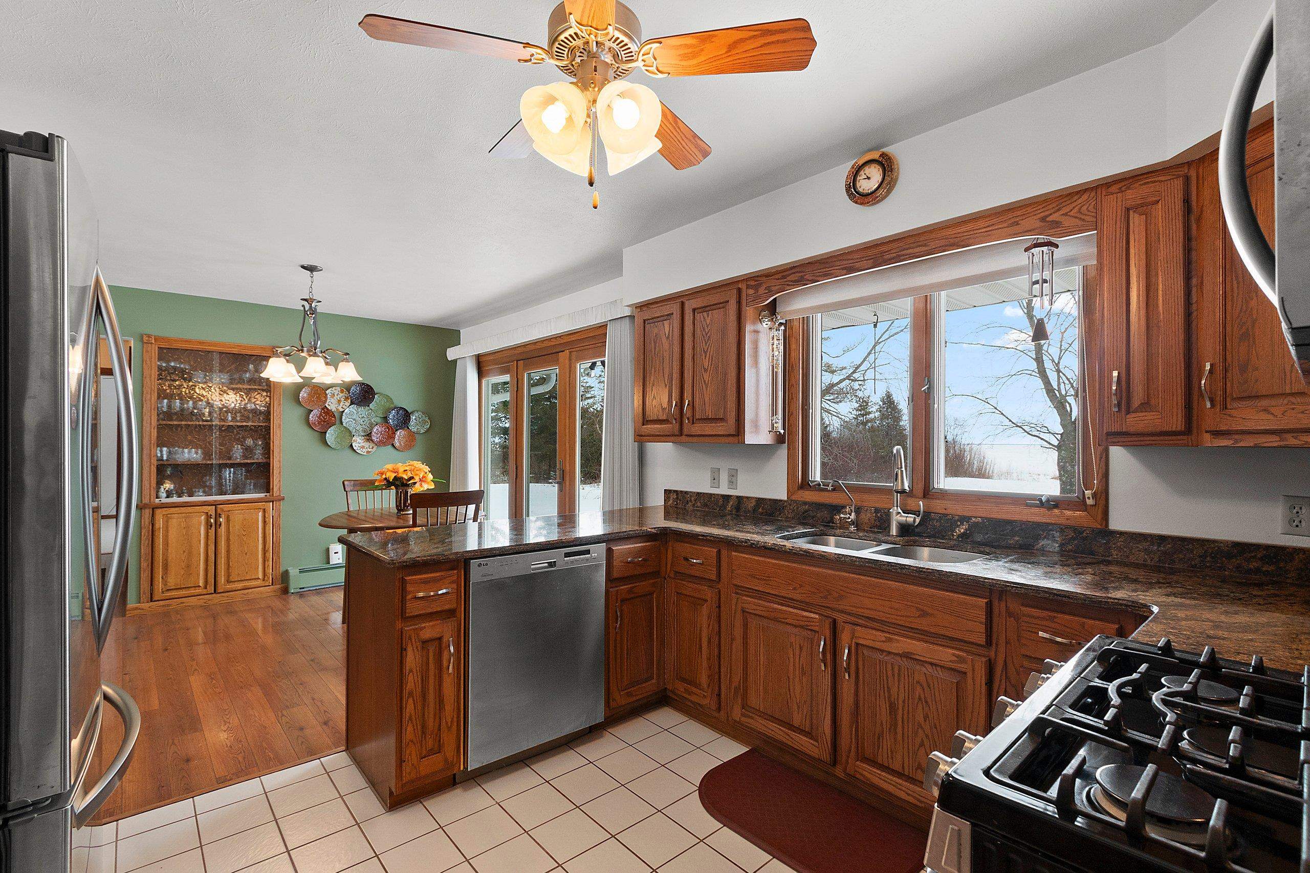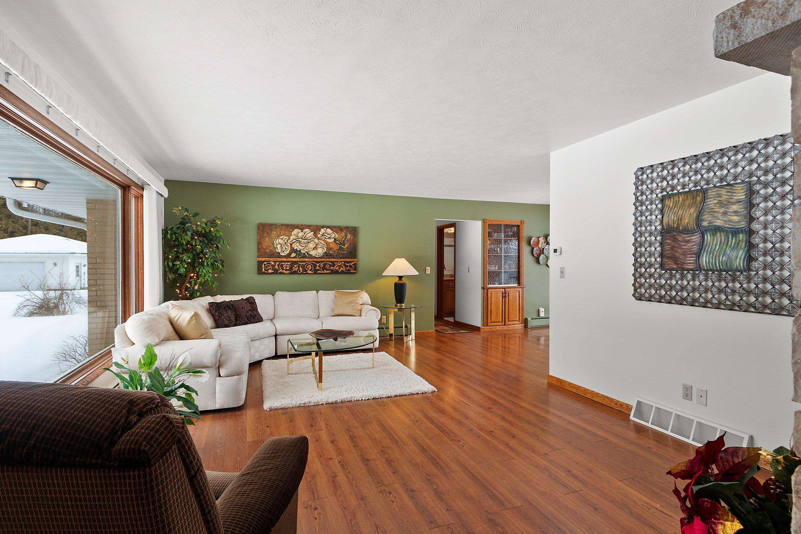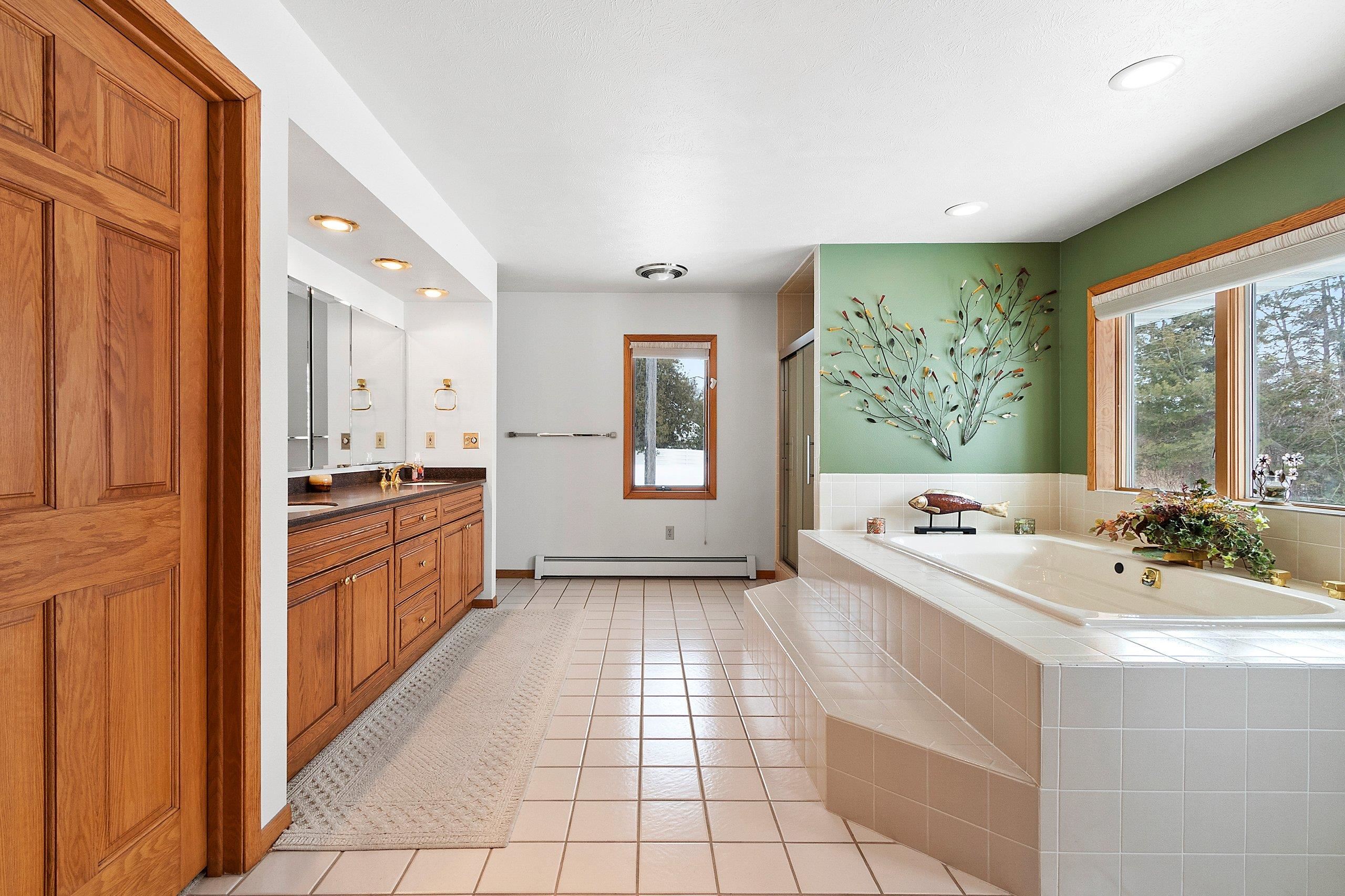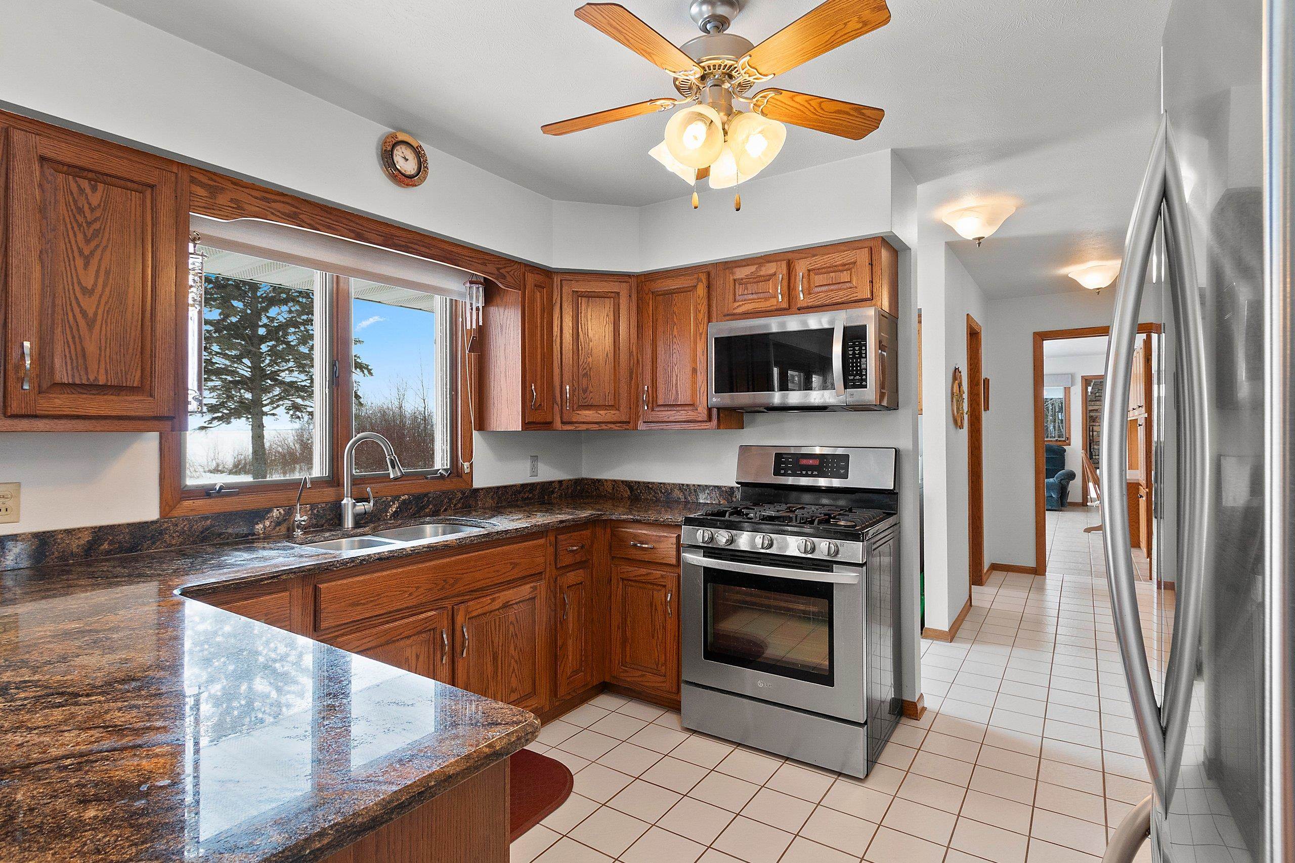 Spacious 2+ bed, 2.5 bath ranch offering approx. 2,600 sq ft on 3 acres with 290 feet of Green Bay frontage. Tucked back from the road for added privacy, this professionally maintained property features stunning water views, a large primary suite with soaking tub, dual vanities, and walk-in closet, plus both living and family rooms with fireplaces and a dedicated library/office. The family room offers flexibility to add additional bedrooms if needed. Beautiful kitchen cabinetry w/granite countertops and a back deck with beautiful views of the bay. Partial basement with dyke system, new mound septic (2023), roof replaced (2019), Generac backup generator, attached 2-car garage and additional detached 2-car garage. Conveniently located near Cedar River Marina, campgrounds, and recreation.